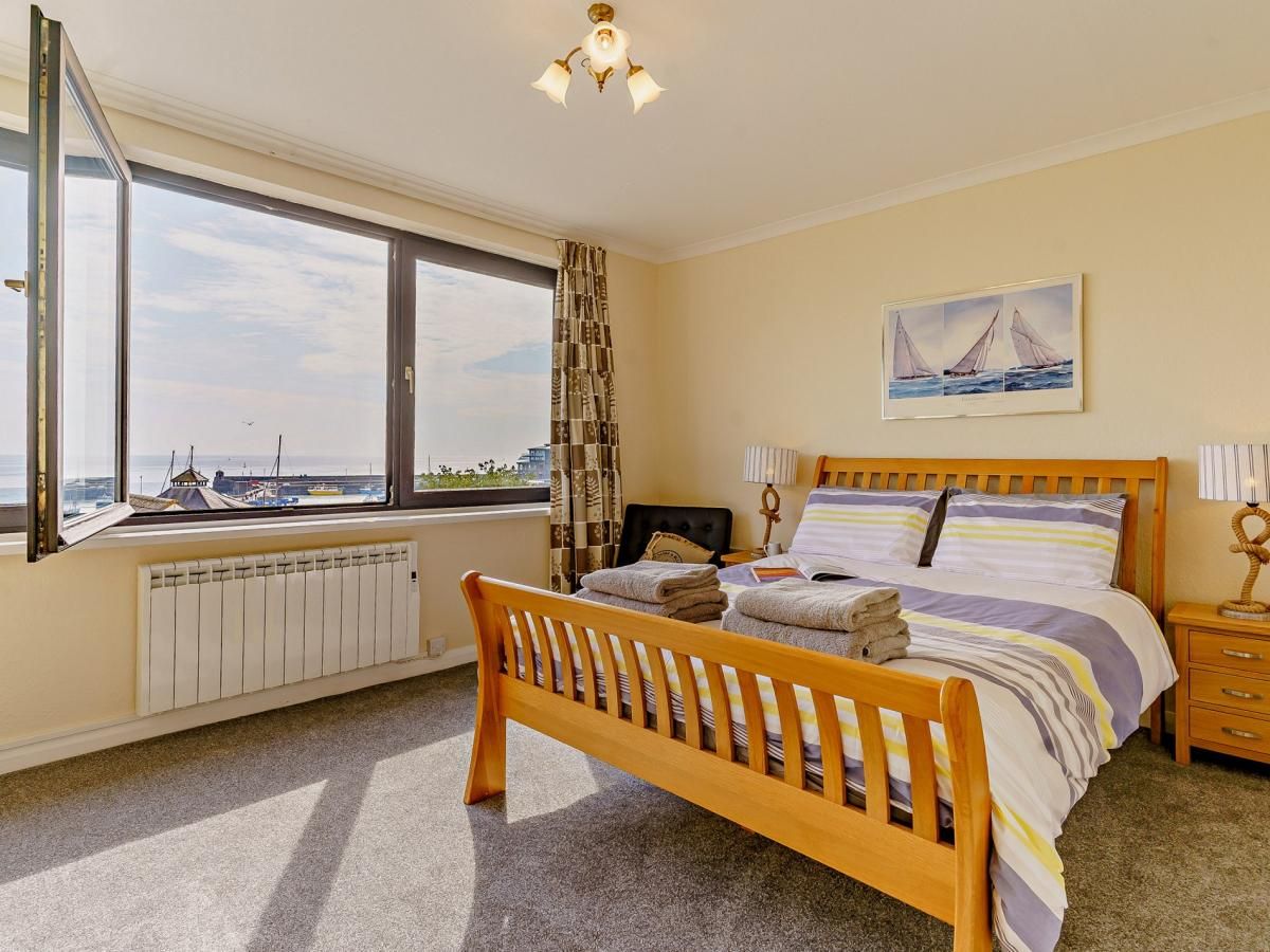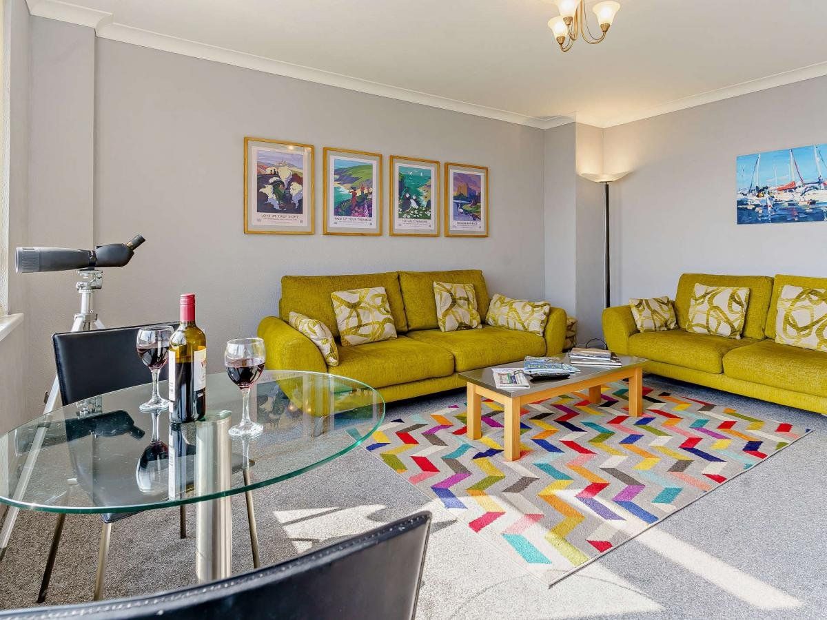It’s a great escape for couples or small families looking for a seaside getaway that’s close to all amenities. You’ll reach this lovely apartment on the third floor of a modern building via an internal staircase (do note that there is no lift), and when you enter the bright and airy lounge you’ll immediately be drawn to the picture windows with their panoramic views over the harbour.