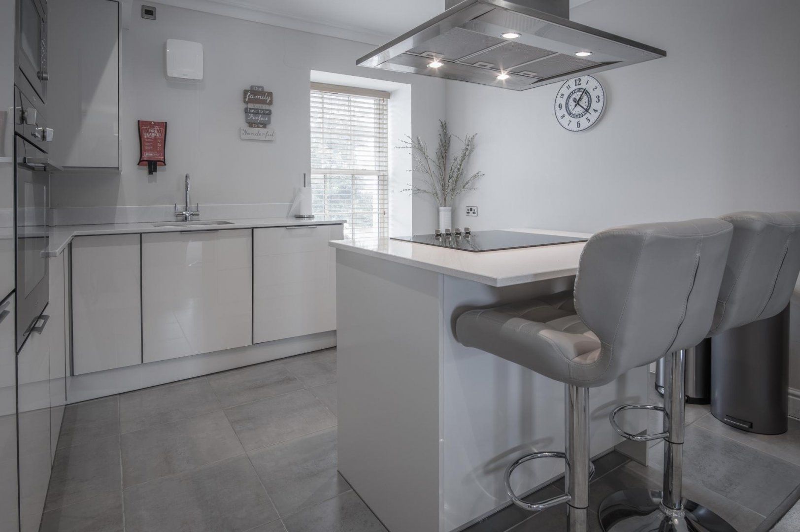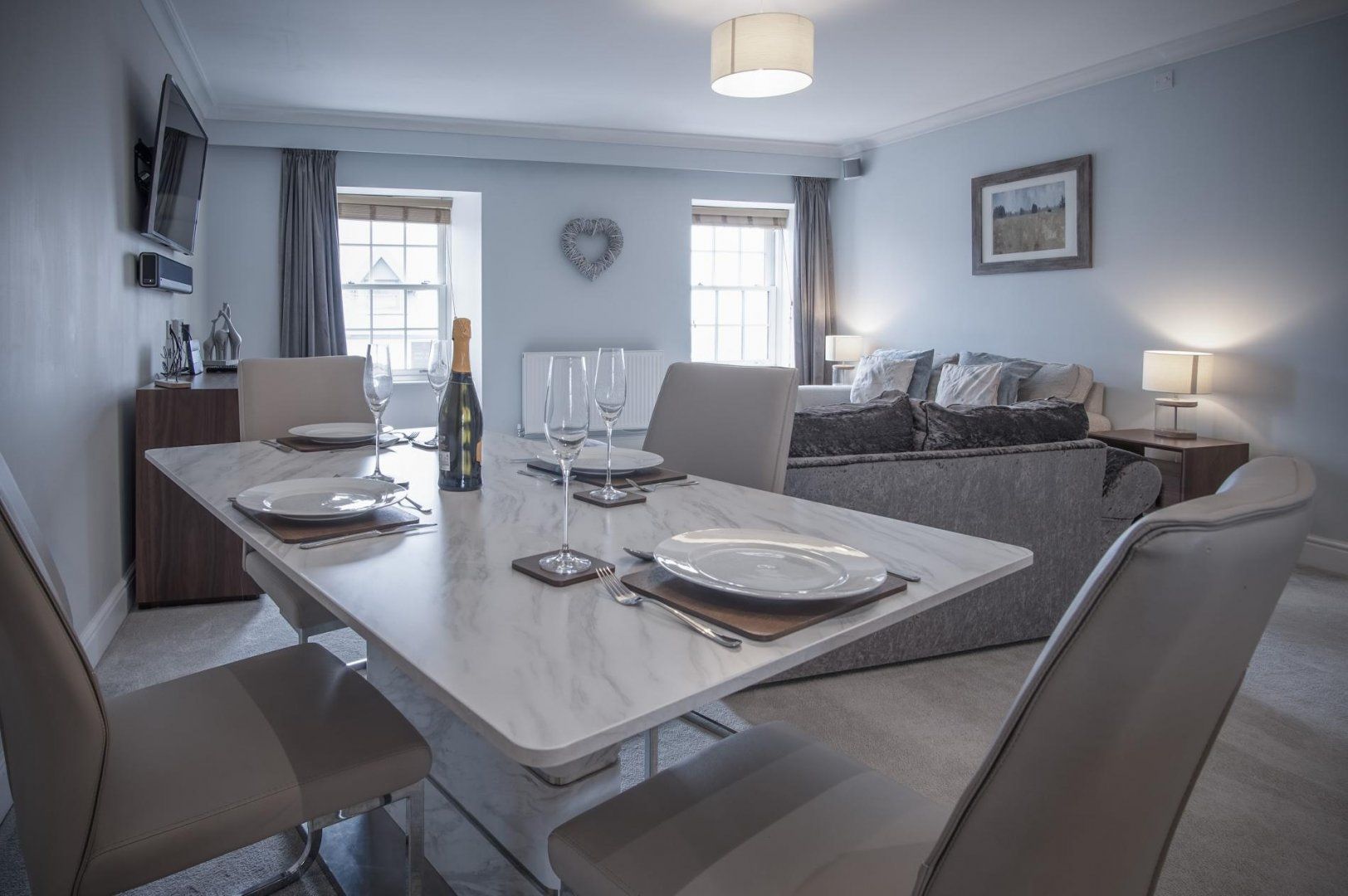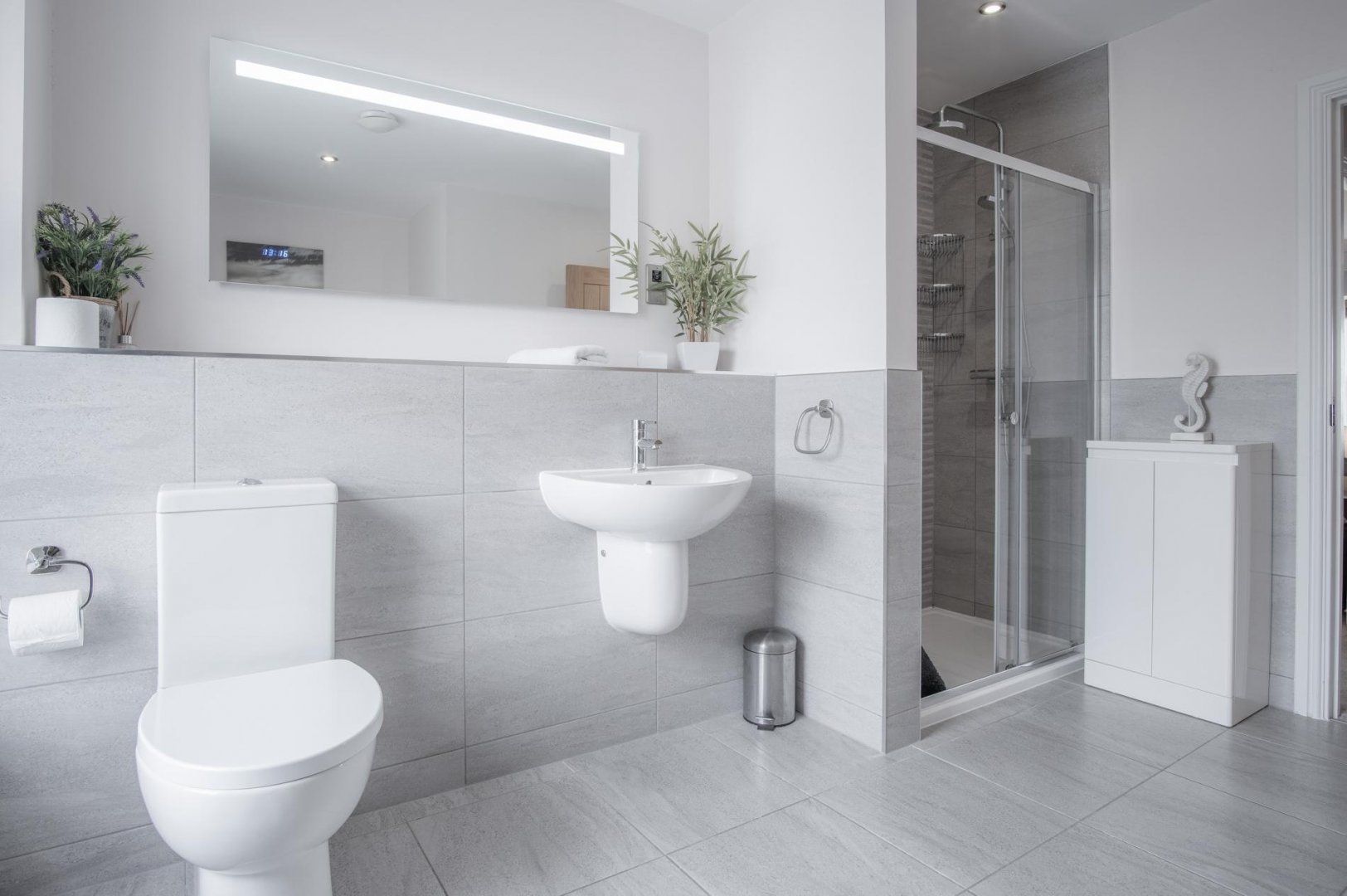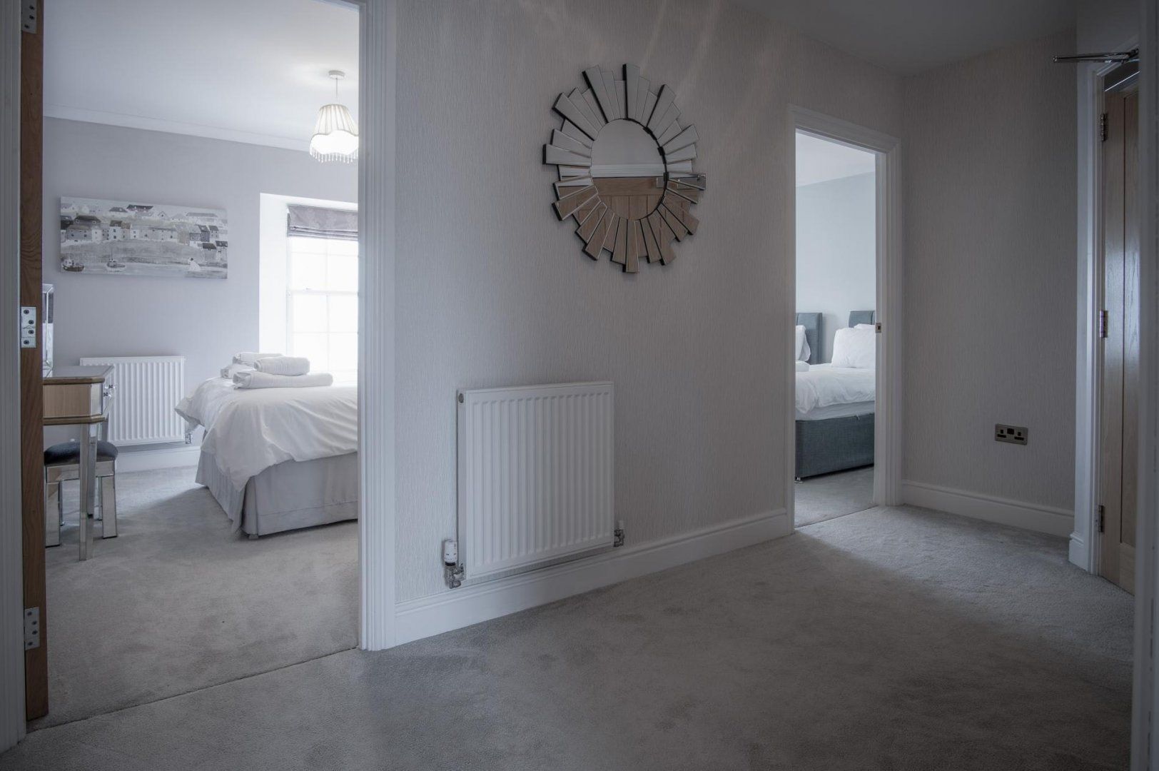 Arrive to find a generous open-plan living room and kitchen area, with plenty of space to enjoy leisurely evenings of movies and delicious feasts with your loved ones. The sleek and well-equipped kitchen will make rustling up those scrumptious meals a breeze and you can share them at the elegant dining table – and should you have some laptop duties to attend to, this is also a great spot for it. All the while, you’ll be able to glance at the stunning sea vistas outside your windows.