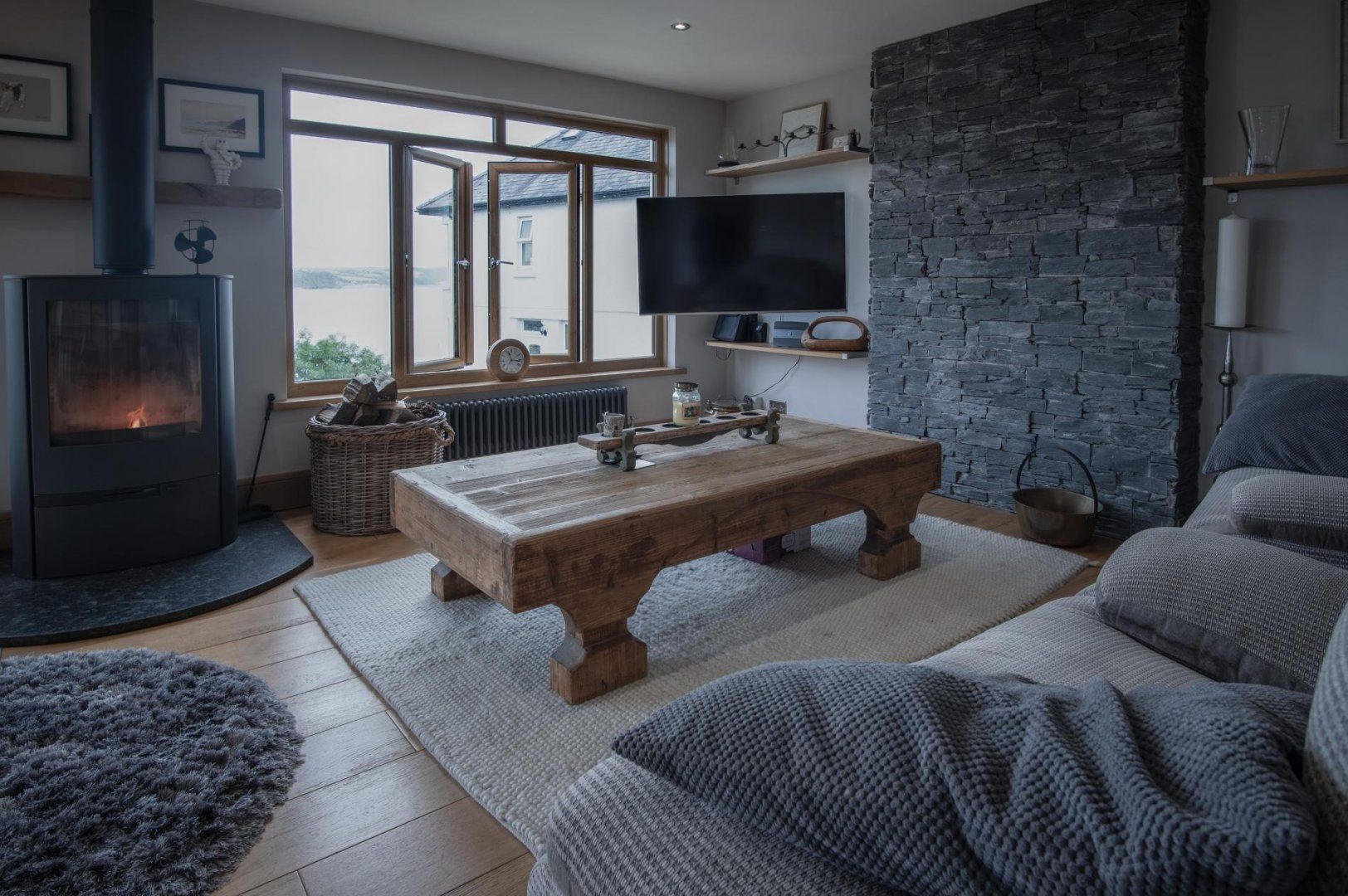 Enjoy cosy days by the fireplace with a gorgeous view of the surrounding landscape and sea. Snuggle up on the sofa to watch a movie with your loved ones as the toasty fire warms your feet up. If you find yourself staying here during the warmer months, crack open the living room window to allow the refreshing ocean breeze to flow through the home.