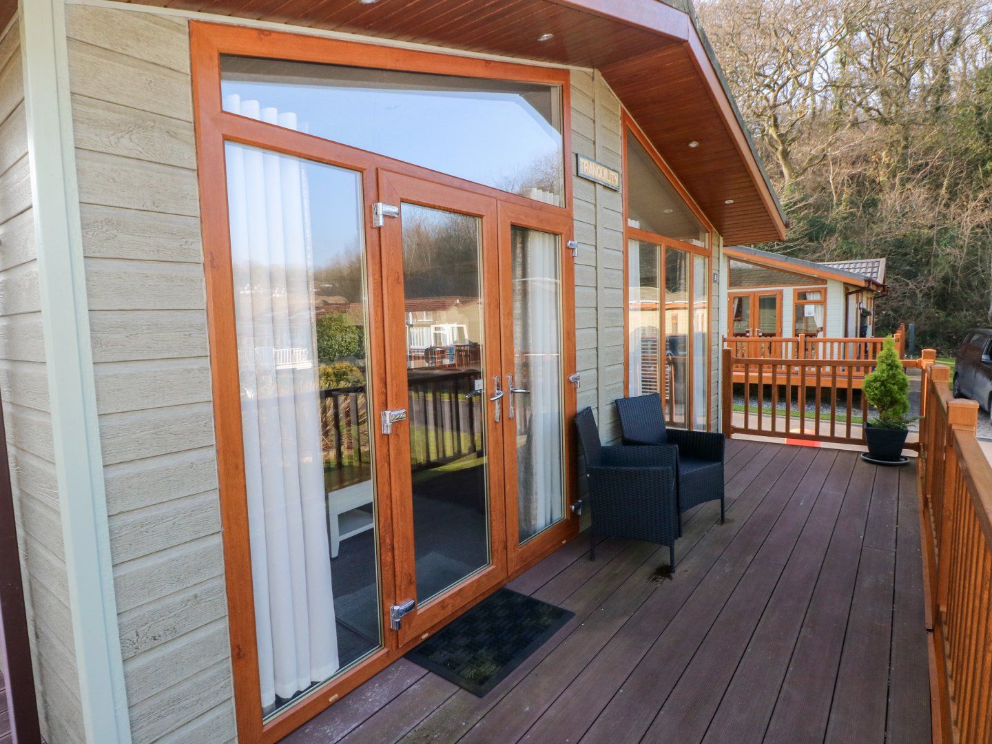 This lodge is in a private site known as Heritage Park in Stepaside, the park is landscaped and well planted, surrounded by trees and the ruins that is at the entrance to the park.