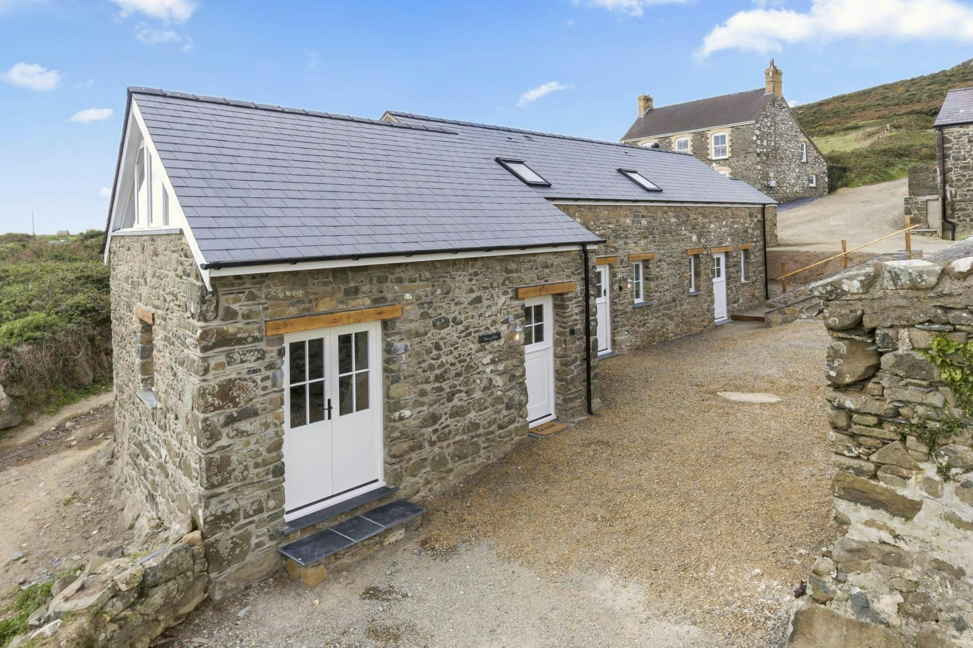 Set just moments from Whitesands Bay, this upside-down barn conversion blends coastal charm with effortless comfort. The open-plan living space, perched above a private garden, is bright and airy, with Velux windows framing glimpses of the Atlantic. Minimalist yet cosy interiors ensure the scenery remains the star of the show, with a focus on the outdoor space – whether you're unwinding in the hot tub or gathering around the firepit. With the Pembrokeshire Coast Path on your doorstep, days can be spent hiking dramatic clifftop trails, surfing, or wandering golden sands, while St Davids – Britain’s smallest city – is just a short drive away, alive with cafes, galleries and historic charm.