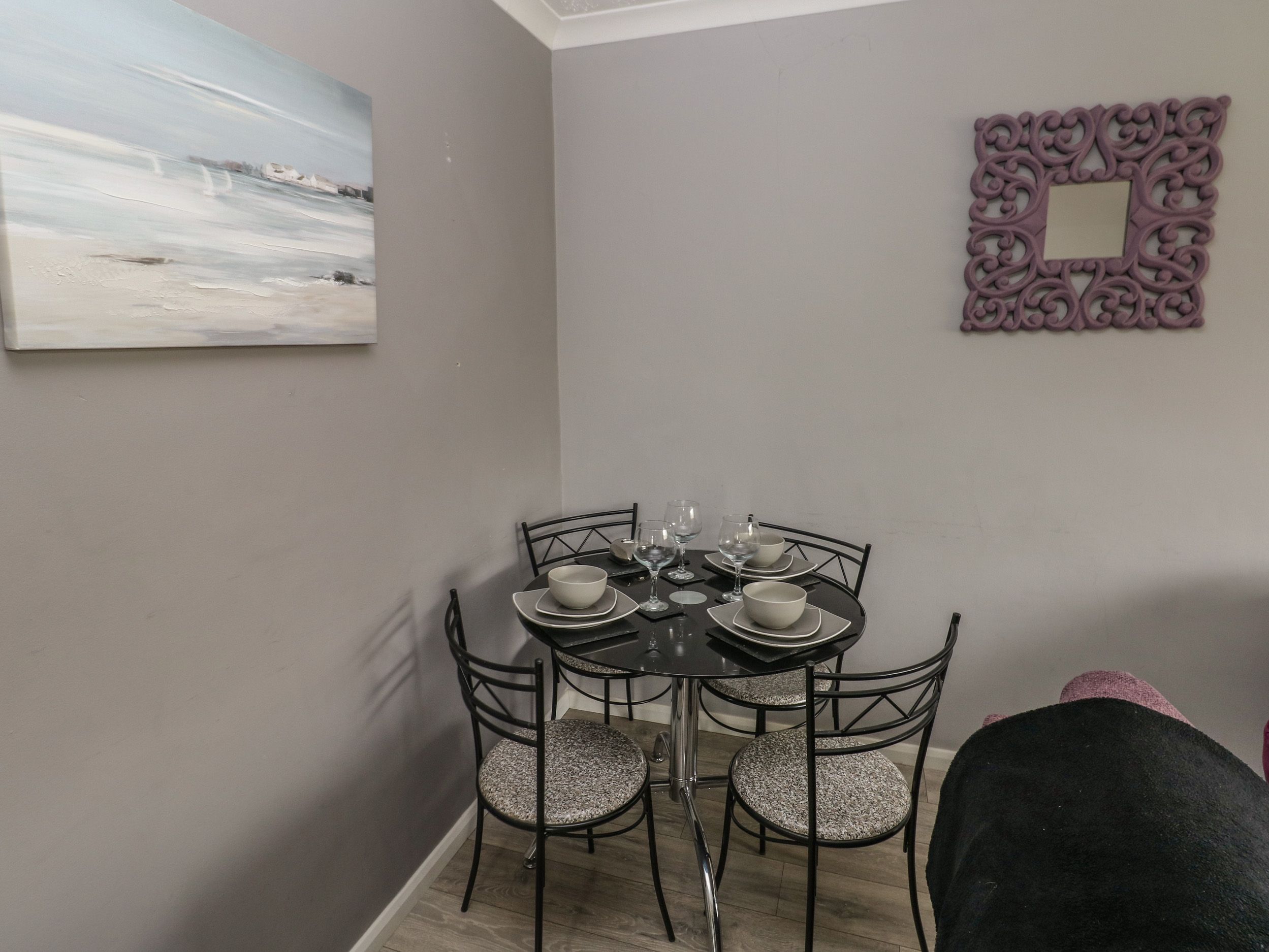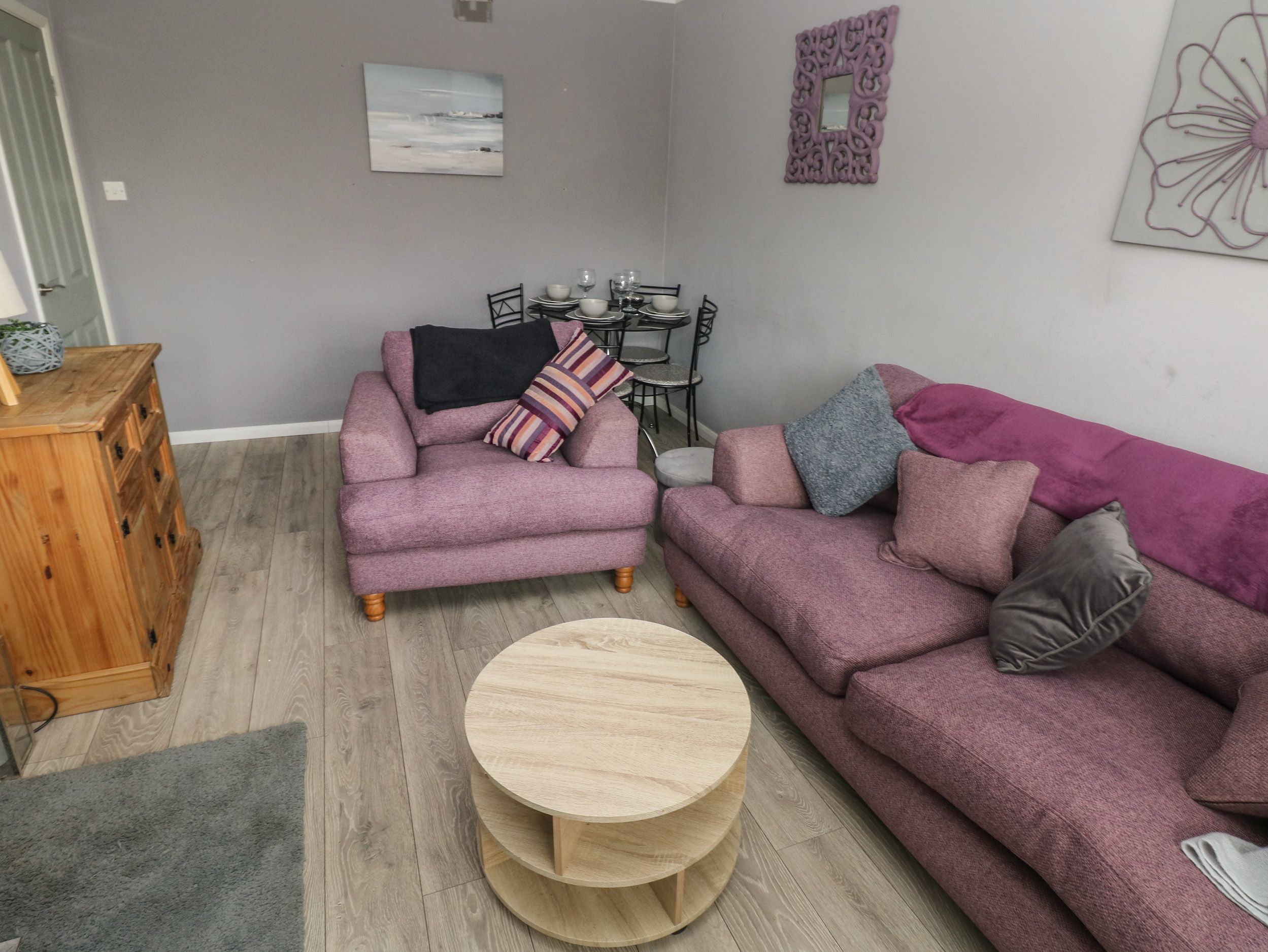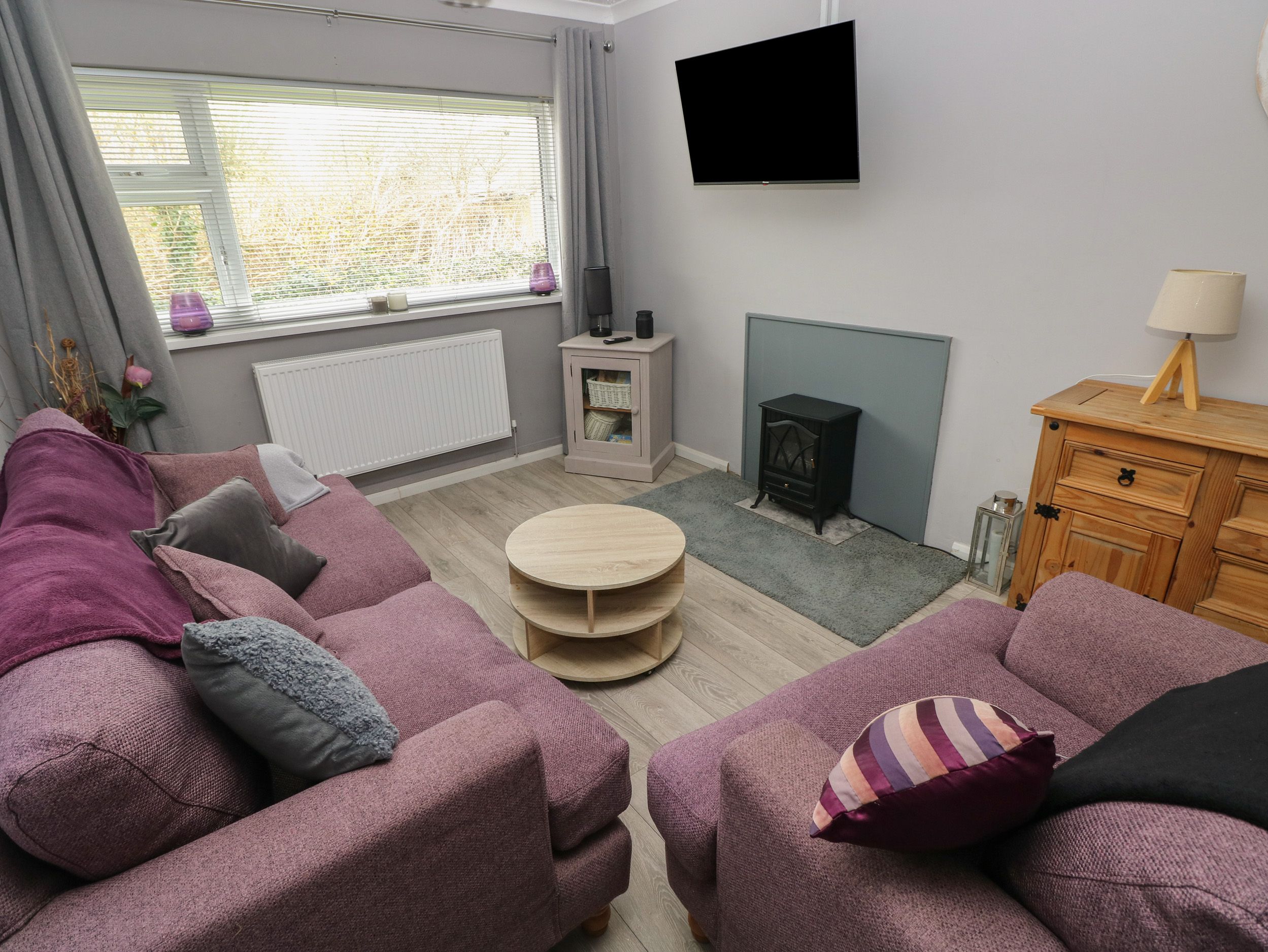 Amenities Gas central heating. Electric oven, gas hob, fridge, freezer, microwave, kettle, toaster. TV and WiFi. Fuel and power inc. in rent. Bed linen and towels inc. in rent. Off-road parking for 2 cars. Enclosed rear garden with lawn and patio. One well-behaved dog welcome. Sorry, no smoking. Shop 0.3 miles, pub 0.2 miles, beach 1 mile. Note: Freezer in garage.