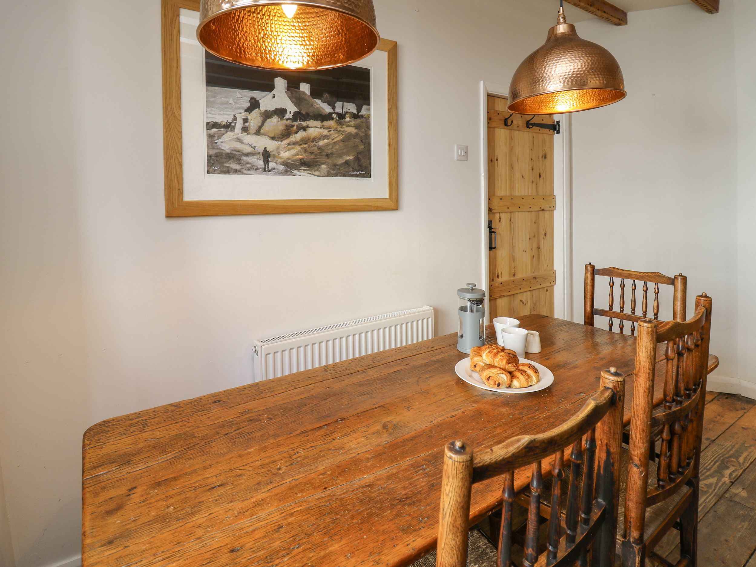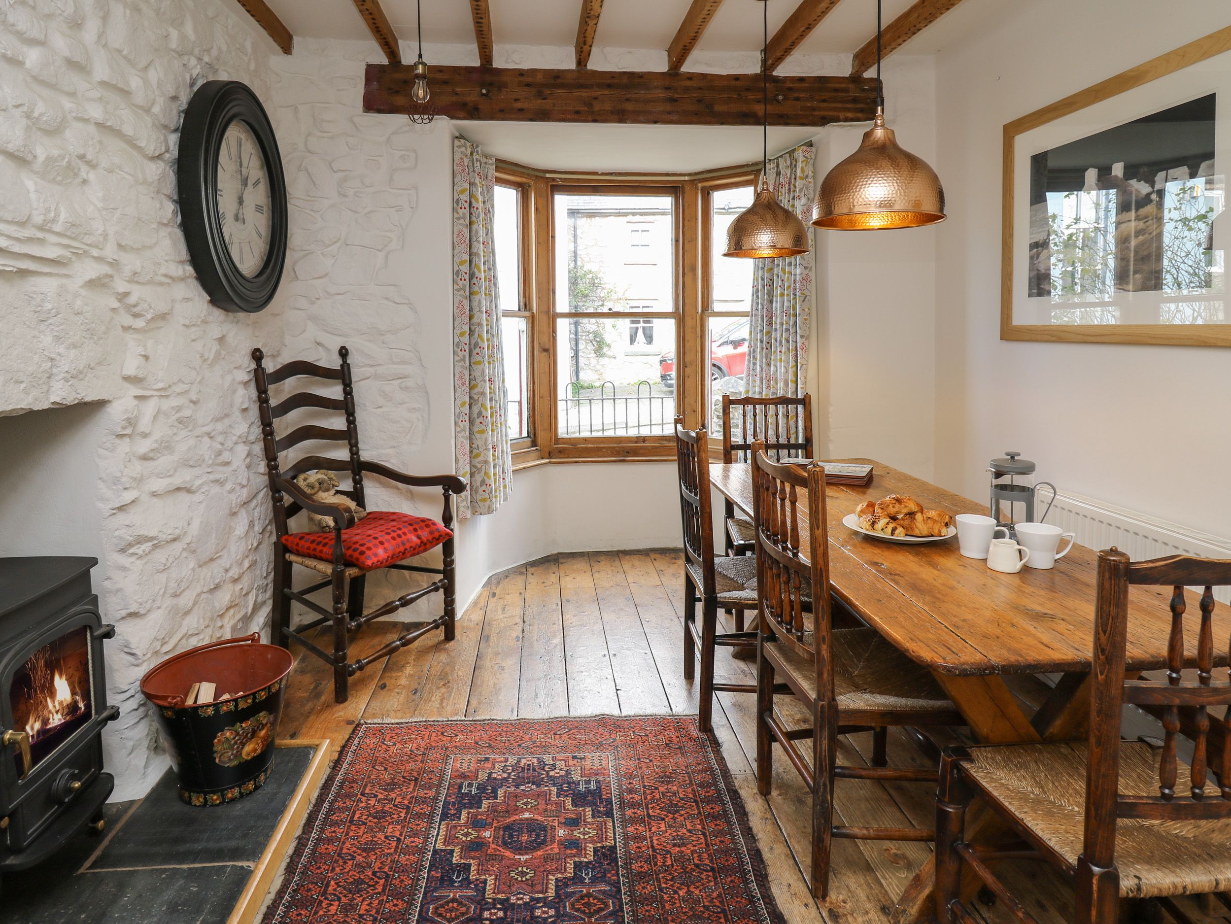Amenities Gas central heating. Electric oven, gas hob, microwave, fridge/freezer, washing machine, dishwasher. Smart TV, WiFi. Fuel, power, and starter pack for woodburning stove inc. in rent. Bed linen and towels inc. in rent. Highchair and travel cot available. Parking in a nearby public car park. Enclosed front gravelled garden, and enclosed rear patio with furniture. Two well-behaved dogs welcome. Sorry, no smoking. Shop 0.5 miles, pub 0.1 miles, beach 1 mile. Note: There are 16 steps up to the rear garden; please take care. Note: Check-in from 4pm, check-out by 10am