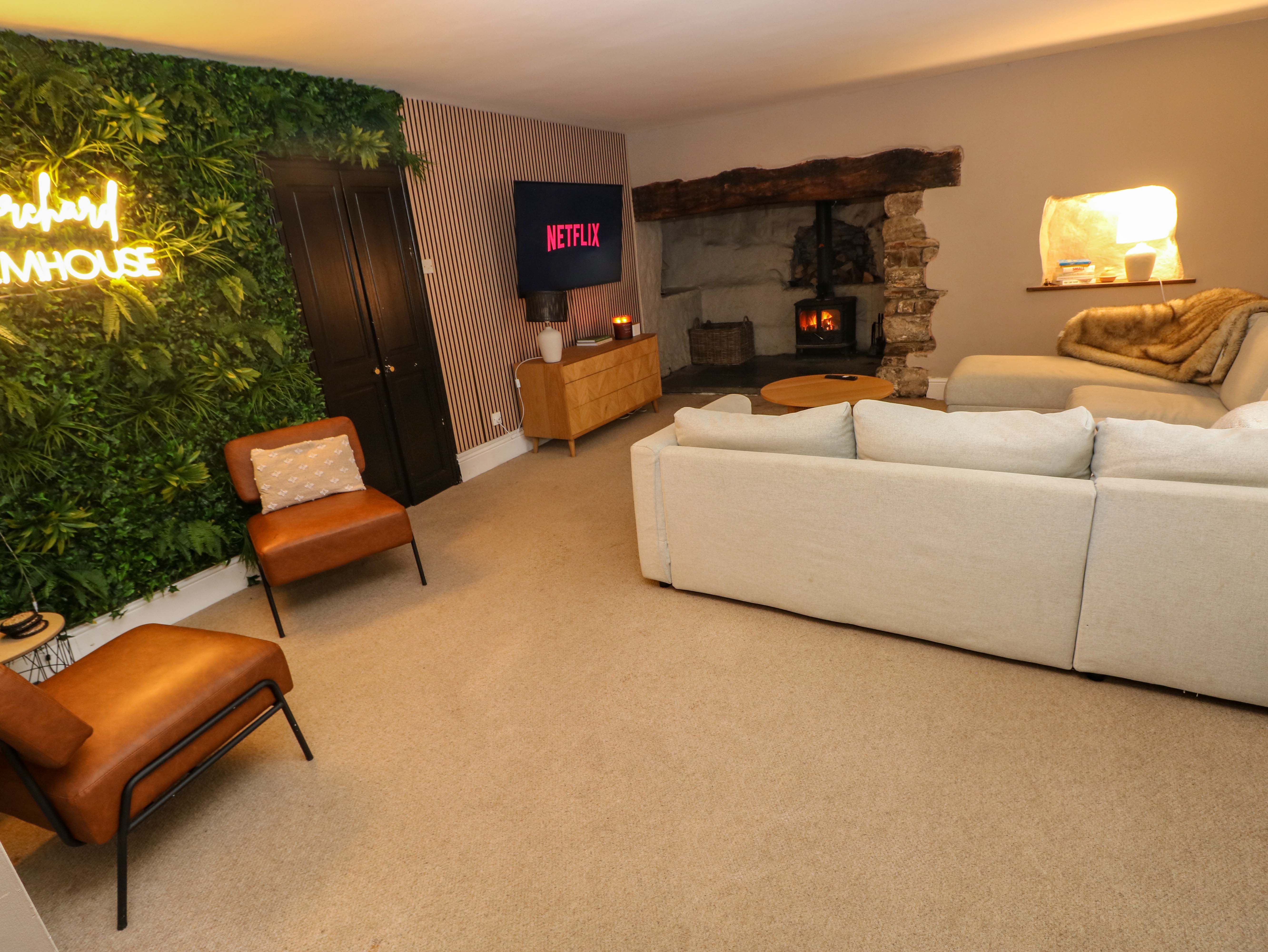Holiday home Norchard Farm House consists of a kitchen with oven, hob, freezer, fridge/freezer, washing machine, and tumble dryer, a kitchen/diner with dining seating, breakfast bar seating, gas hob, dishwasher, combi microwave/oven, kettle, and toaster, a utility with dog bath, a sitting room with Smart TV and woodburning stove, a games room with bar and pool table and a first-floor snug. The bedrooms consist of a twin, single, family room, and two second-floor family rooms. There is a bathroom with bath, shower over, and basin and WC, and a shower room with walk-in shower and basin and WC. WiFi, fuel, power, bed linen, and towels are included in the rent. Outside, there is a rear garden with hot tub and off-road parking for five cars. Pet-friendly. Sorry, no smoking at this property. Guests can find a shop within 2.5 miles and a pub within 1.7 miles. Enjoy your trip to the property Norchard Farm House. Note: There is no limit on the number of pets.