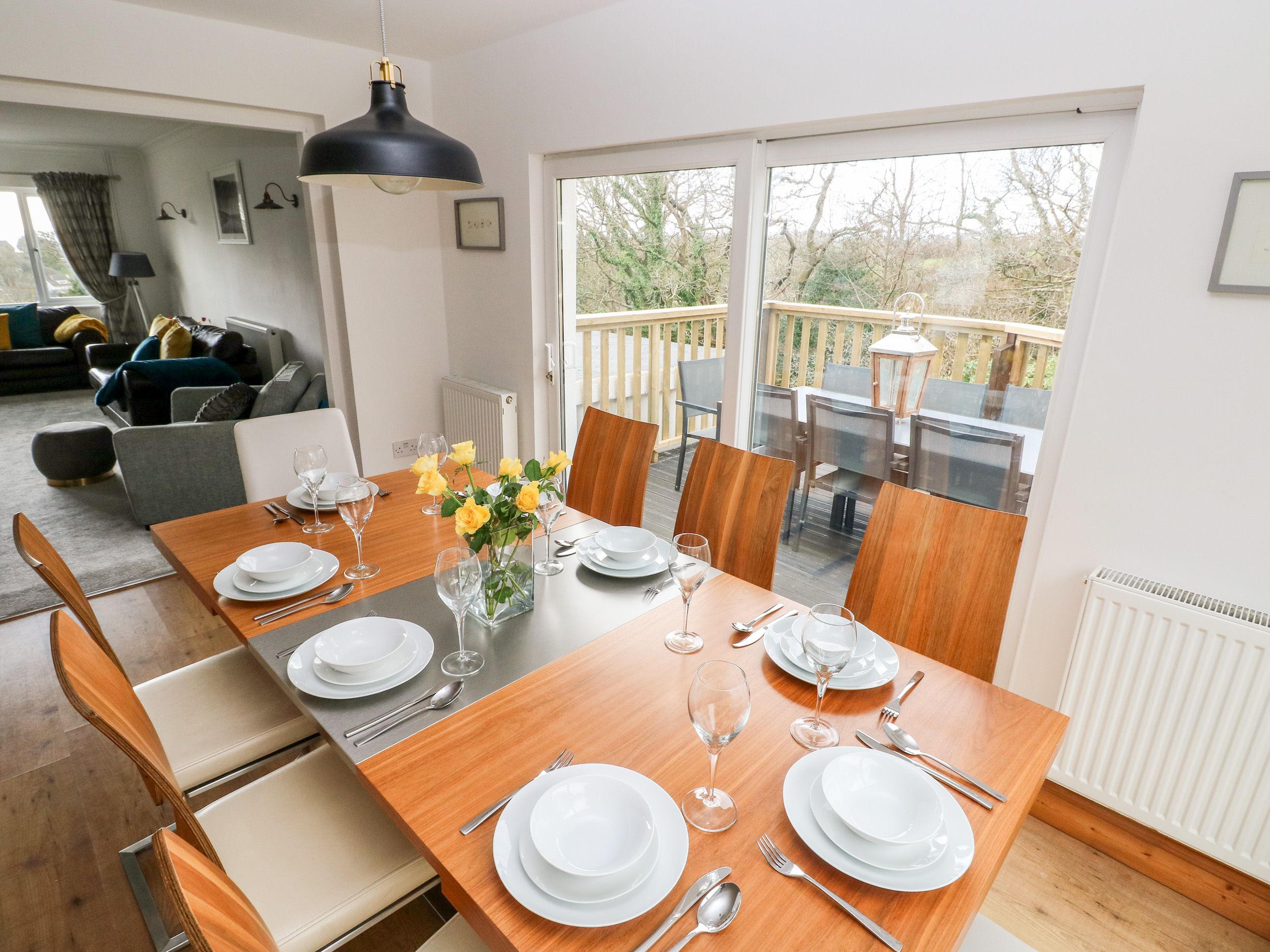 The living areas in the property consist of a kitchen/diner with an electric oven and hob, microwave, American-style fridge/freezer, dining seating for eight, a utility with washing machine and tumble dryer, and a living/dining room with dining seating, TV and woodburning stove. The bedrooms consist of a super-king-size with zip/link, king-size, double and a twin, along with a bathroom and a shower room. Outside there is an enclosed garden with decking, furniture and access to woodland and stream, and off-road parking for three cars. Within 2.2 miles, you will find a shop, and within 0.6 miles, and please note that this is a non-smoking property. WiFi, fuel, power, bed linen and towels are all included in the price. Two well-behaved pets are welcome. If you'd like to add a 3rd pet to your booking please contact Sykes directly to arrange this. For your next adventure to Wales, choose The Dingle.