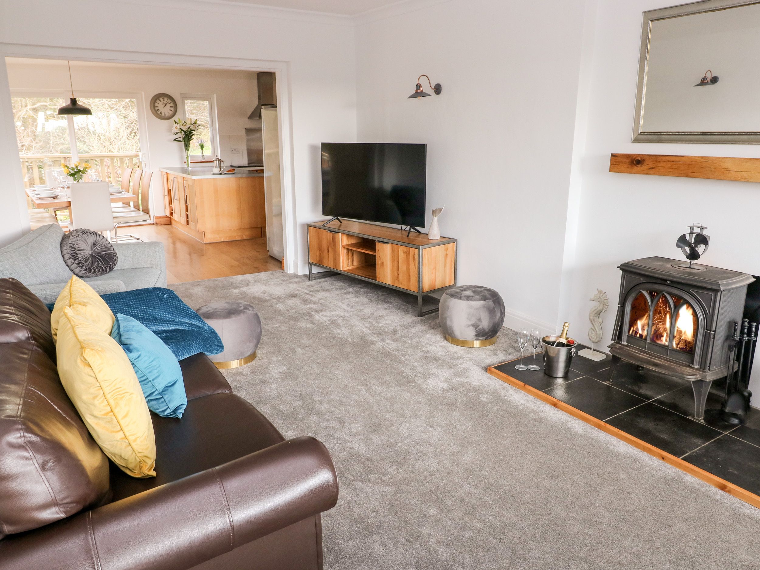 Accomodation Details Single-storey. Four bedrooms: 1 x super-king-size (zip/link, can be twin on request) with Smart TV, 1 x king-size (zip/link, can be twin on request, 2 x king size. Bathroom with bath, walk-in shower, basin, heated towel rail and WC. Shower room with walk-in shower, basin, heated towel rail and WC. Open-plan living space with kitchen, dining area and sitting area with Smart TV and woodburning stove. Utility