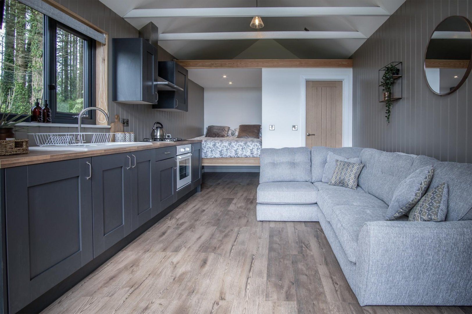 Nestled between the trees on private woodlands, this cabin lets you shed away the thoughts of the daily grind, while still providing home comforts. The well-equipped kitchen is surprisingly large, so dinners at home are a breeze, and the plush sofa is the perfect place for getting cosy after a day of exploring.