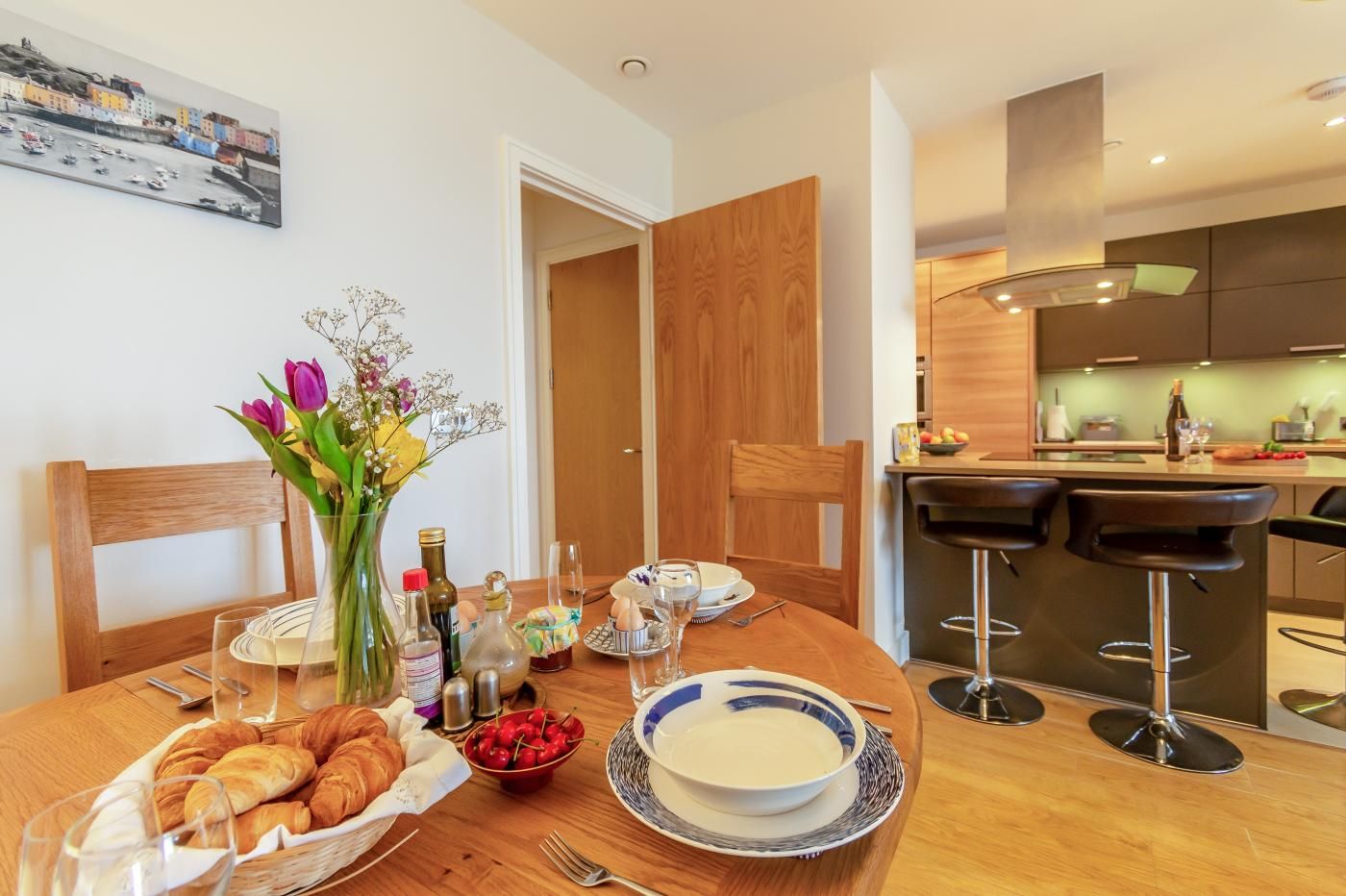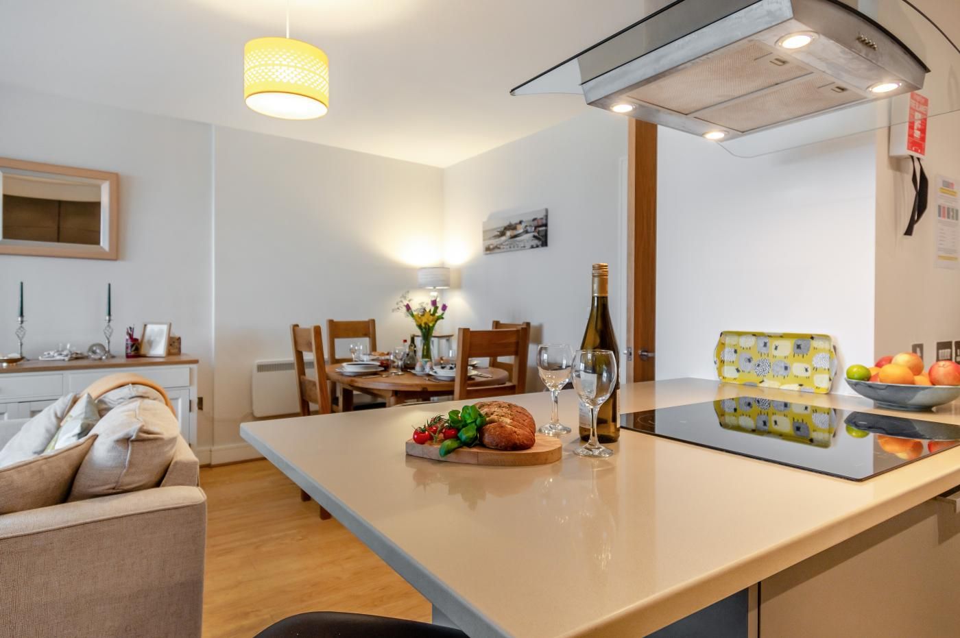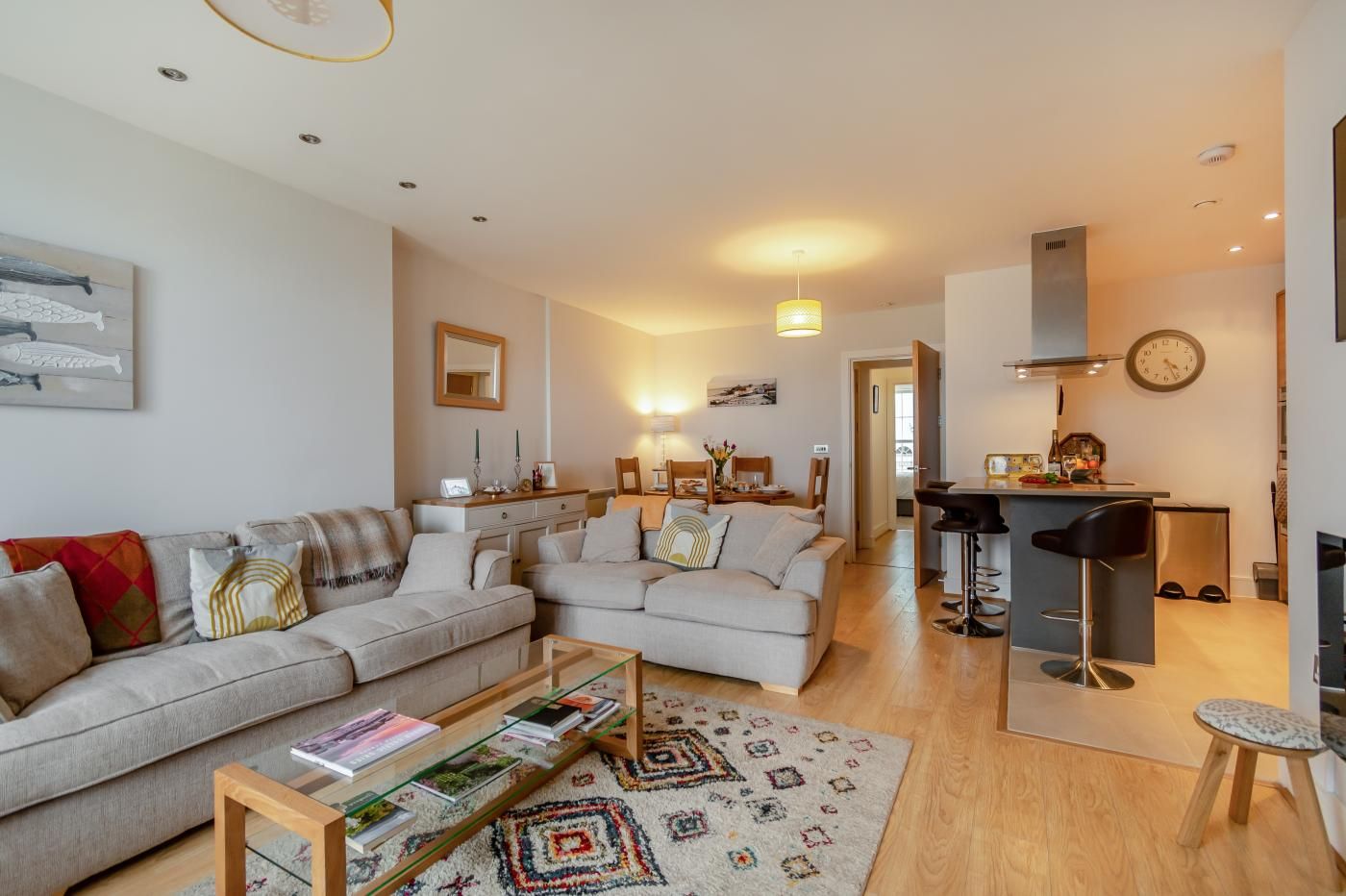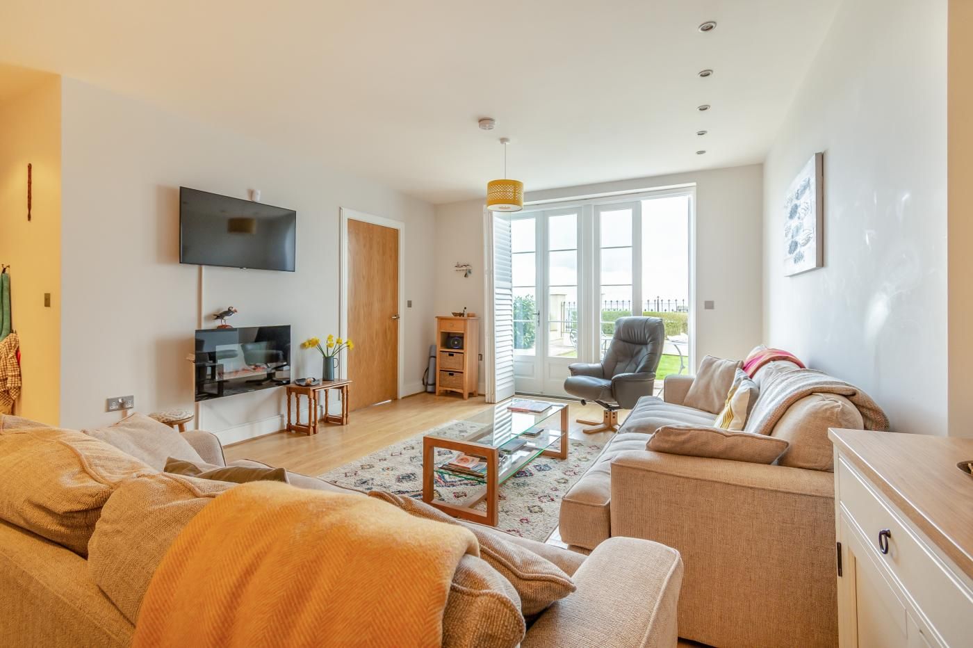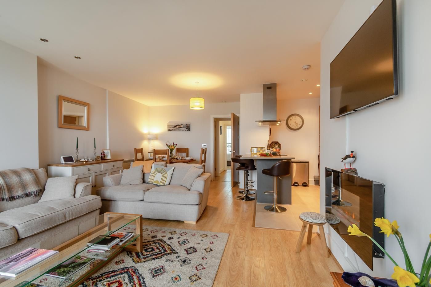 The large, golden sand beach is hot with visitors and locals, and a stroll along it will bring you out to the harbour. The town centre and high street can be reached in under 200m where you will find an excellent selection of shops, bars, cafes and restaurants to enjoy.