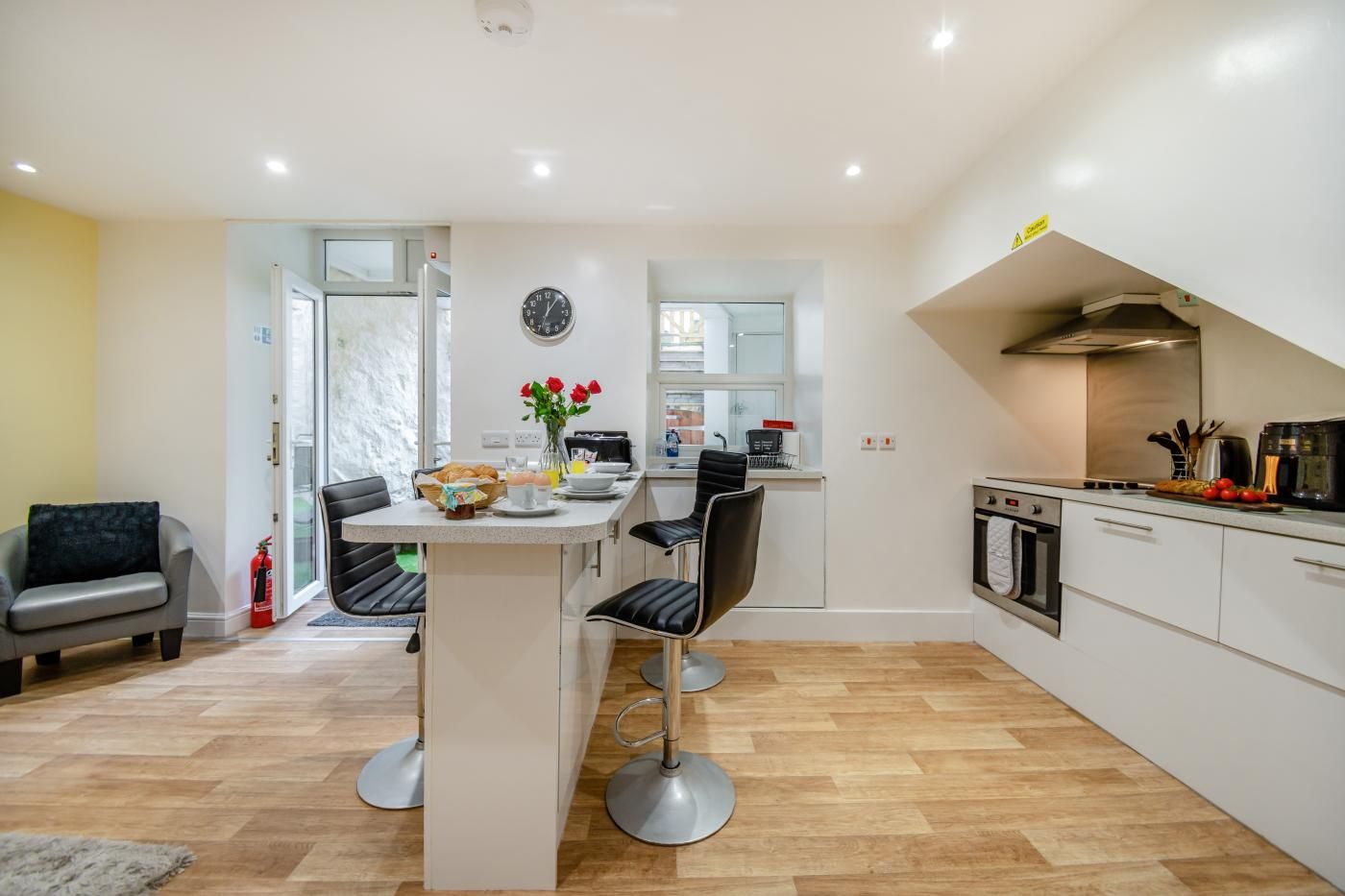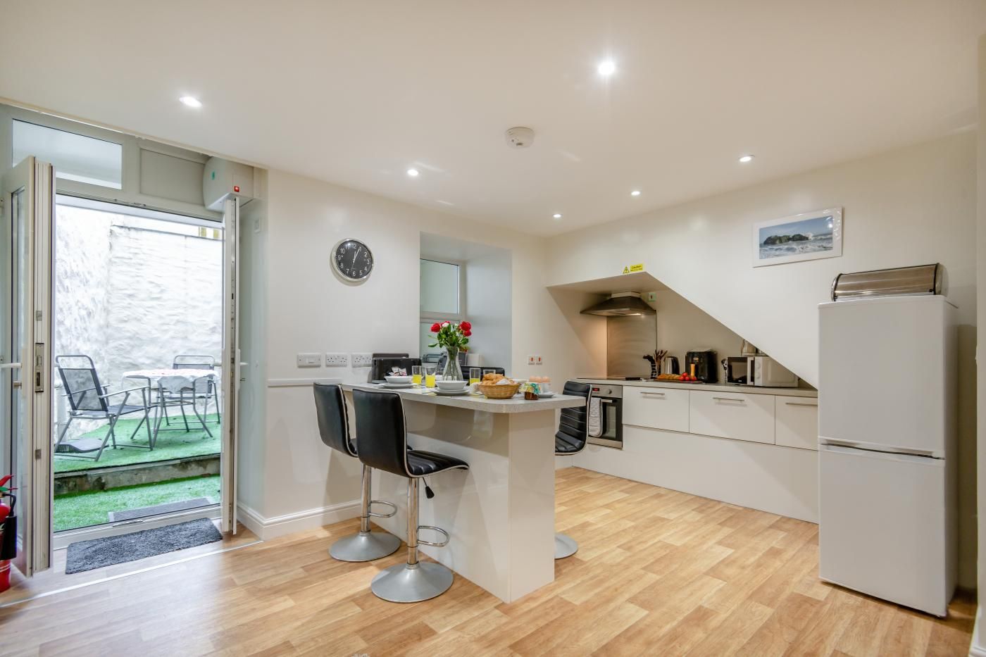 A short downhill walk will bring you out on the gorgeous golden sands, stretching down to the town's iconic harbour, offering plenty of space for a family day on the beach. The top of the High Street and walled town centre is less than 100 yards away and offers a superb selection of shops, bars, cafes and restaurants.