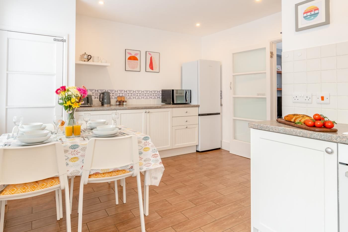 Sleeping up to 4 people, this delightful cottage is the idyllic base for a family or friends to enjoy all that Tenby and the surrounding areas have to offer. The ground floor features a comfortable, cosy living room with large Smart TV, and the kitchen/diner is well-equipped, family friendly includes an extendable dining table with chairs.