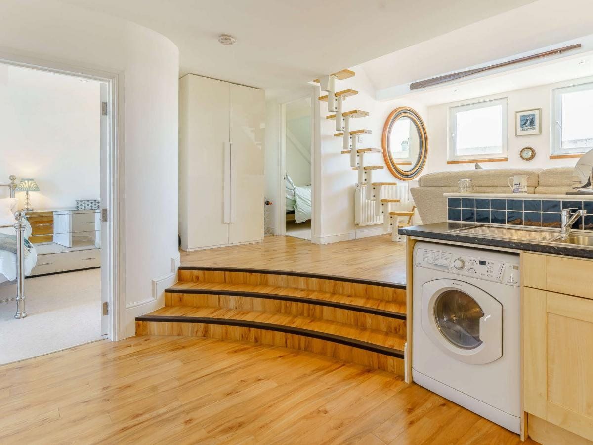 Sleeping four guests, the two-bedroom duplex is within 100 metres of the Welsh seaside town’s spectacular South Beach and captures views out across the rooftops towards the sea. Ideal for couples or a small family with older children, it sits on the third floor of the building.