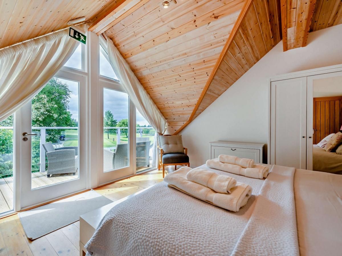 This lodge-style property has great character and features sloping ceilings throughout, some rather low, as well as beautiful exposed beams.