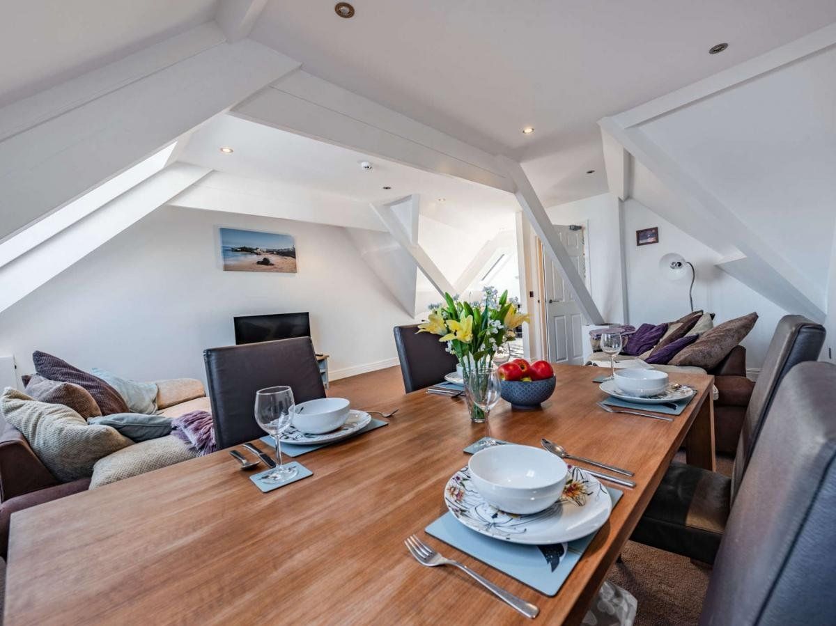 A 300-metre stroll will take you to Tenby’s iconic harbour where you’ll find fresh seafood, the lovely Castle Beach and the opportunity to board a boat to Caldey Island. The apartment, located in the eaves of the building, offers a king-size and a double bedroom – ideal for families or groups made up of two couples.