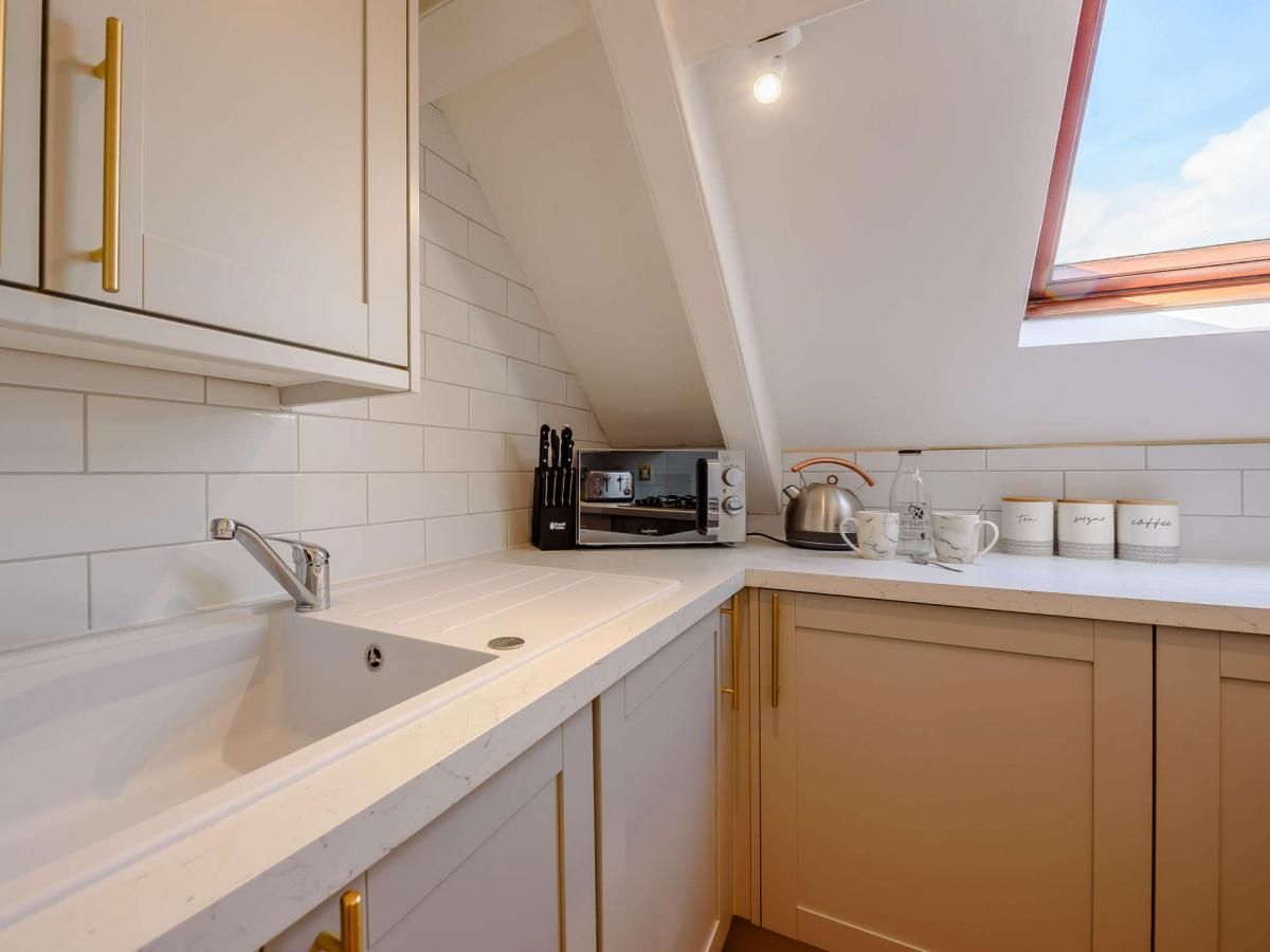 This quirky third-floor hideaway with rustic-chic decor, slanted ceilings and skylights is perfect for couples seeking a romantic coastal break.