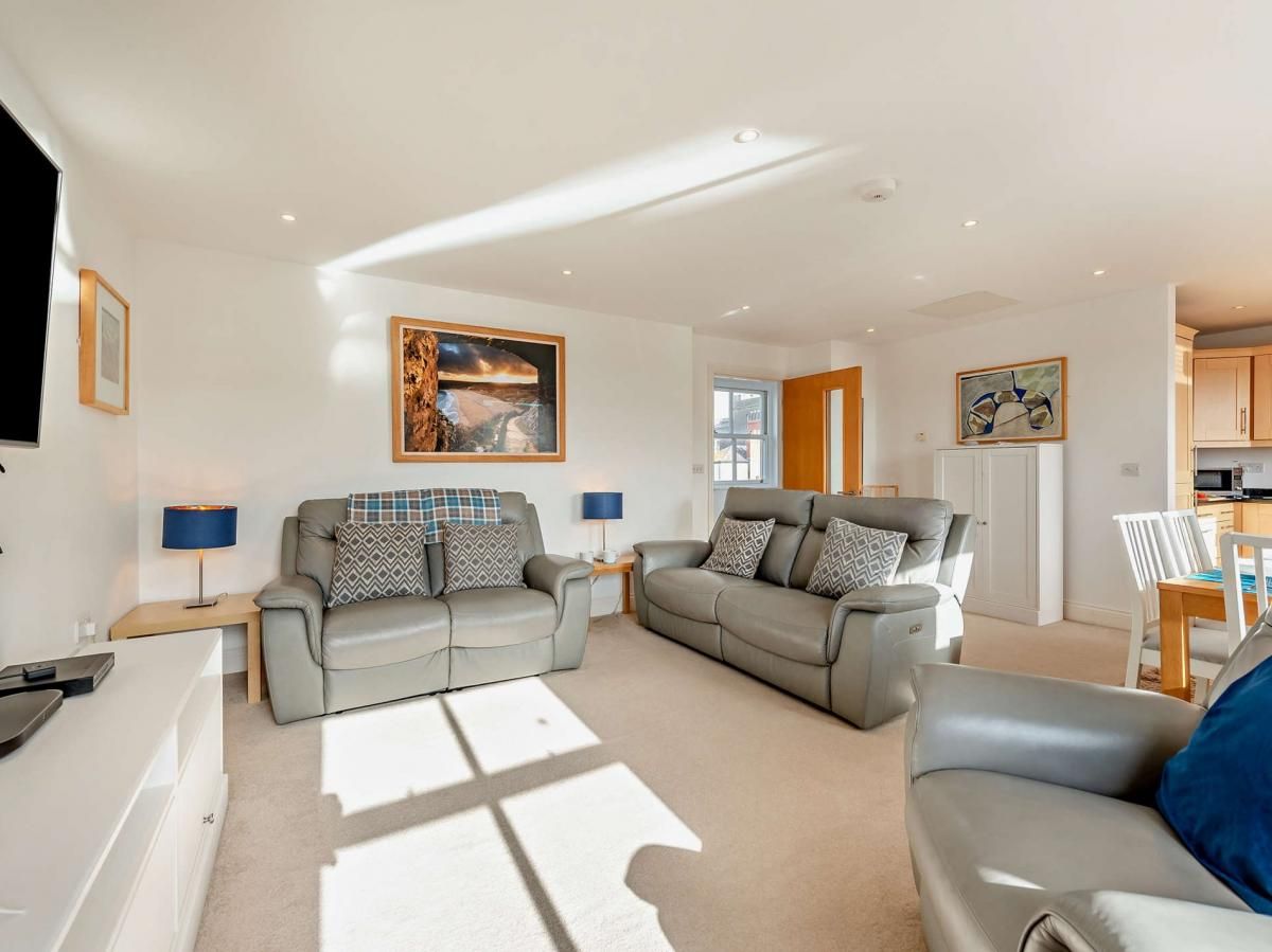 It’s next to the village cafe and has a patio area with access to a large, shared lawn at the rear, while two cosy wood burner-effect electric fires await inside for cooler evenings.