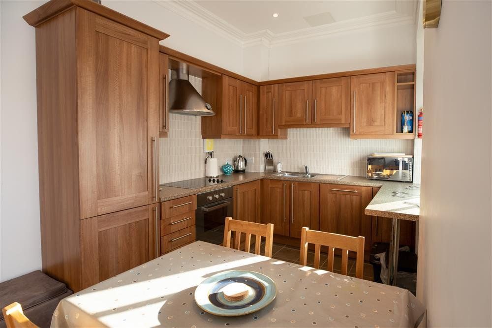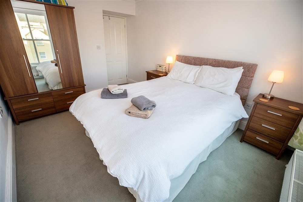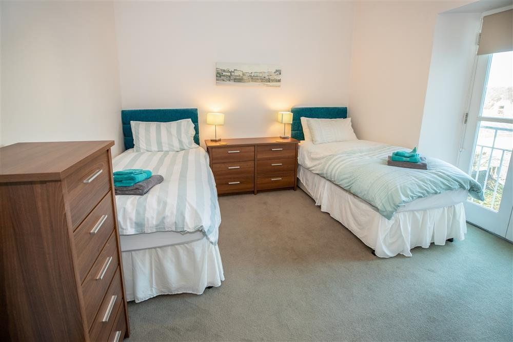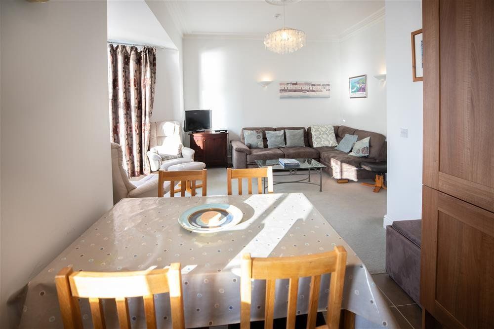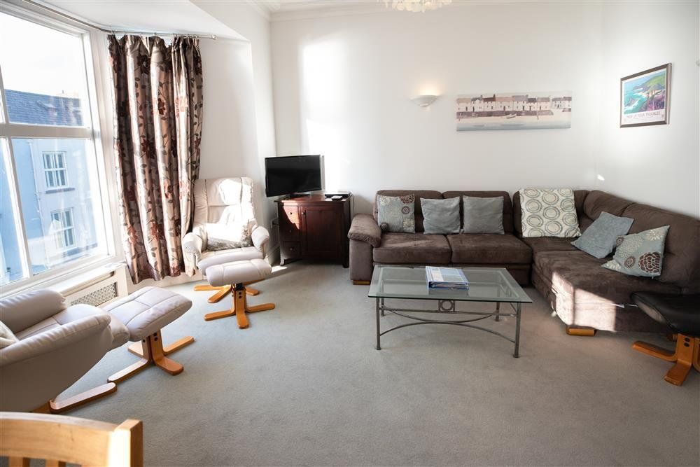 Located in a quiet area of Tenby, this second-floor apartment with sea views, a Juliet balcony and an open-plan layout is an excellent choice for a small family or couple seeking a classic coastal getaway.