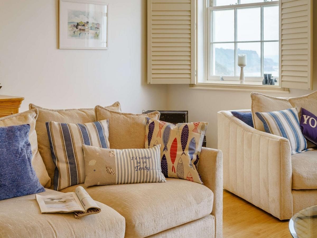Your pastel-coloured home is one of a row of period properties just 100 metres from the beach, and right opposite Goscar Rock, a highly-photographed landmark sitting in the sand. Within 300 metres, you'll find Tenby's town centre offering a great choice of shops, pubs, cafés and restaurants.