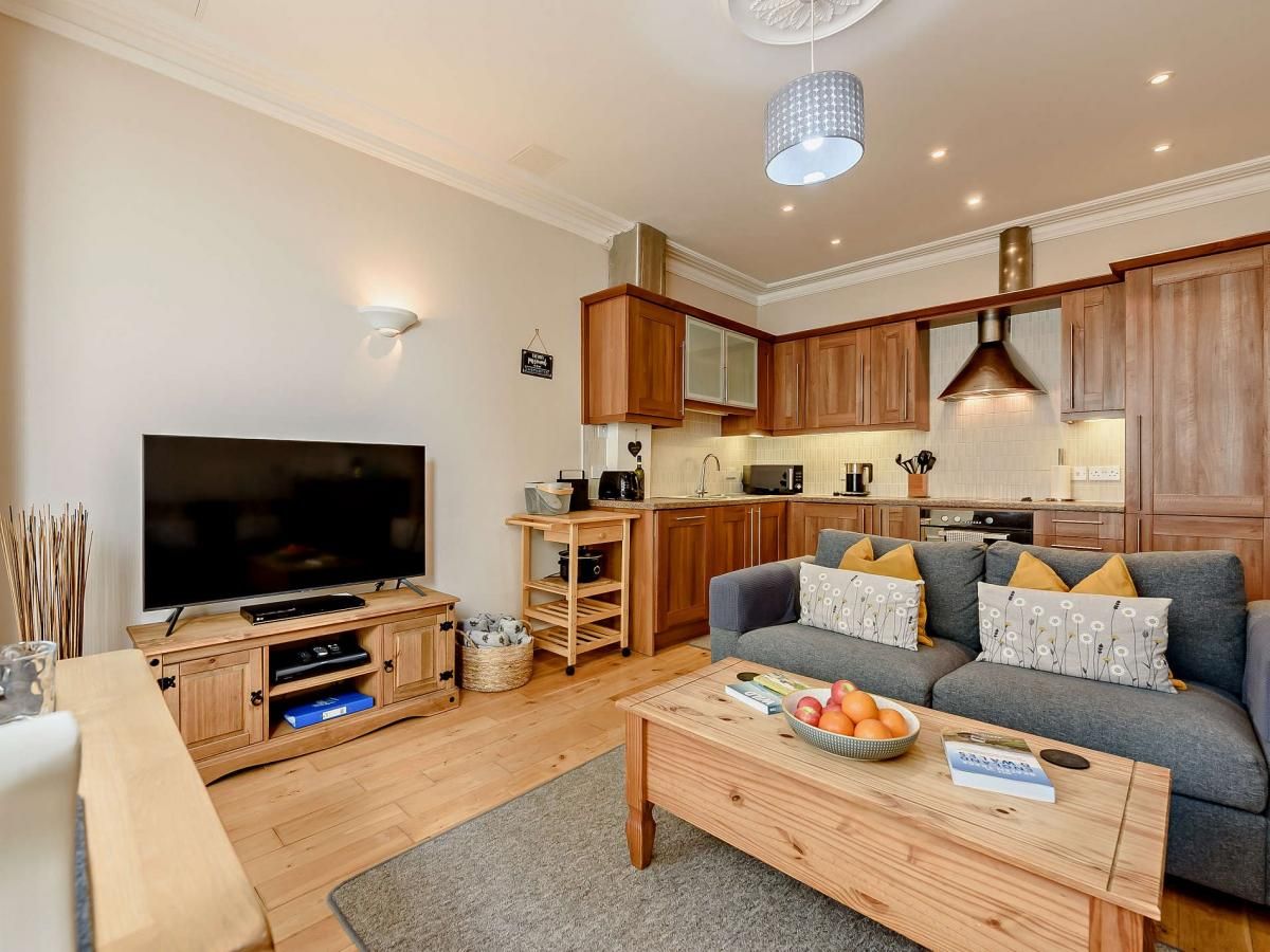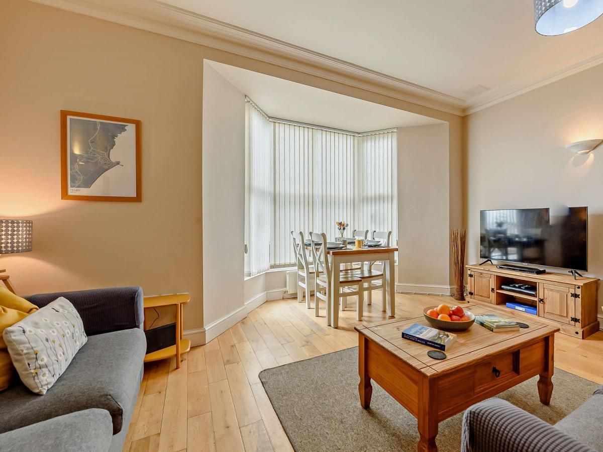 Everything you need for a traditional coastal getaway can be easily accessed from this first-floor apartment in the seaside town of Tenby – with restaurants, historical attractions and beaches nearby.