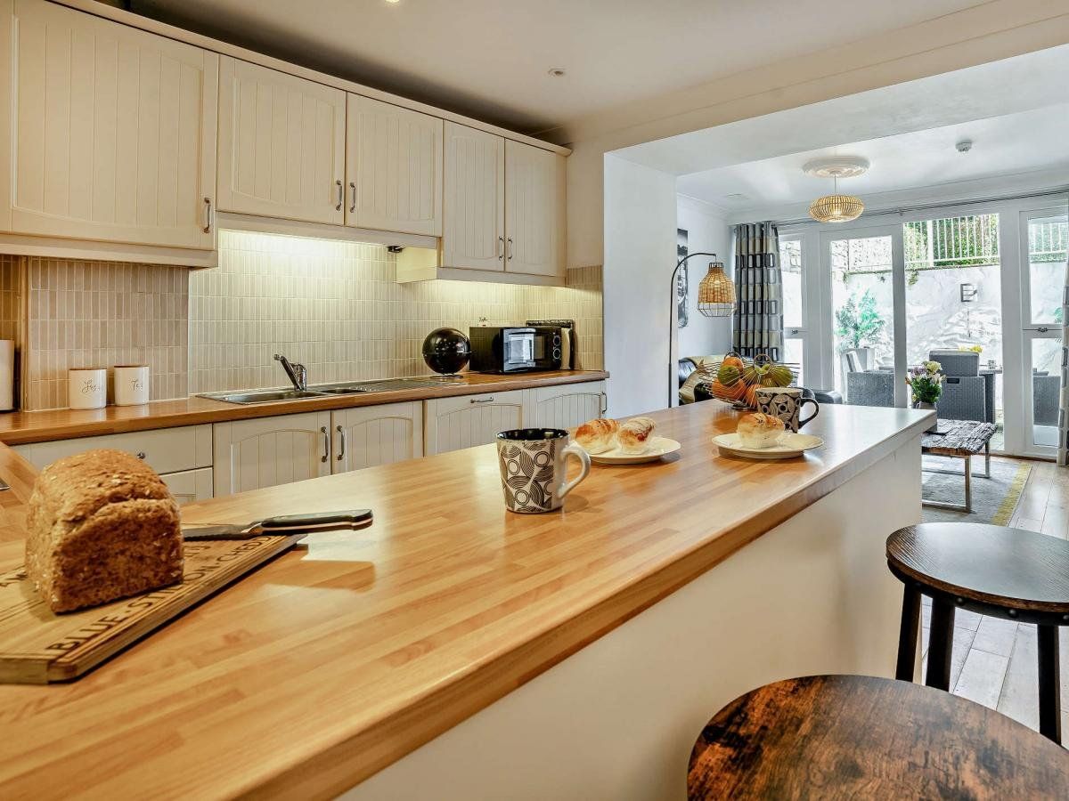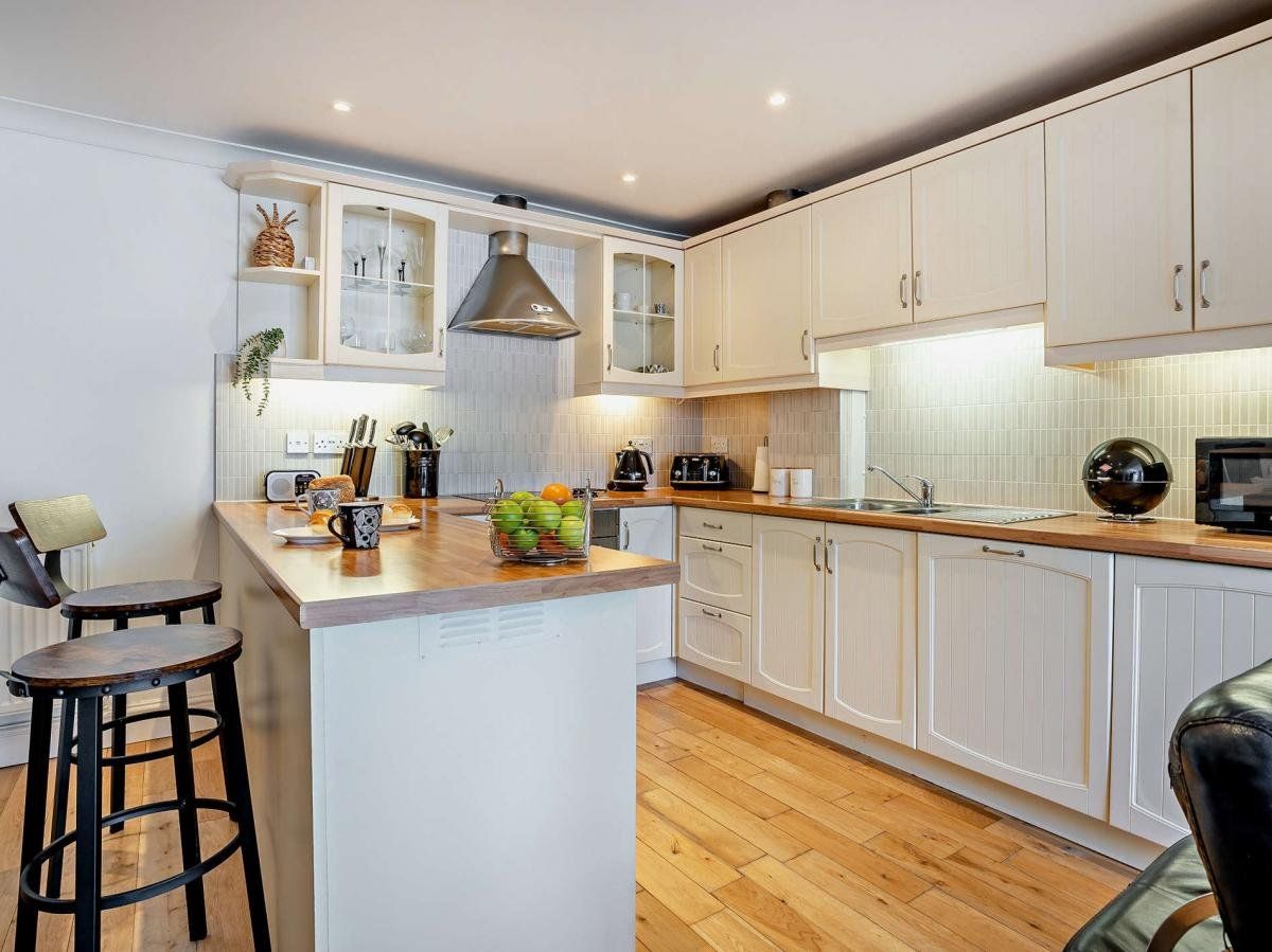 The bright and spacious open-plan living area extends into the garden when the patio doors are open, creating a relaxed and sociable space for spending quality time with your family or partner.