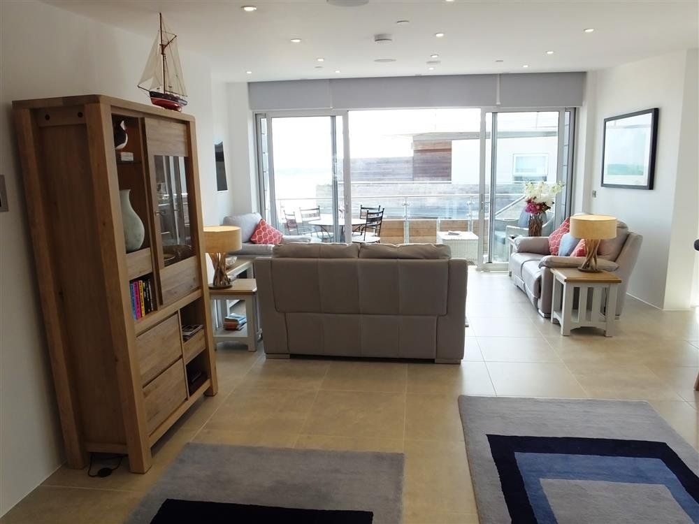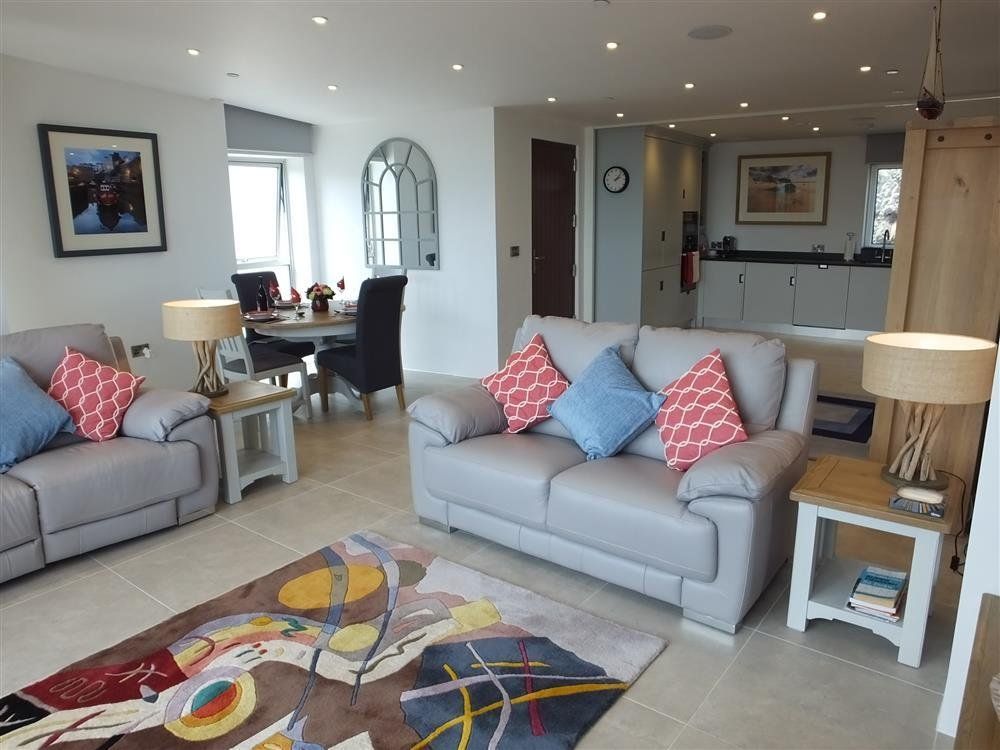The soothing neutral colour palette and delightfully homely touches create a truly warming ambience in the spacious yet cosy open-plan lounge/kitchen/diner. Floor-to-ceiling patio doors frame wonderful sea views that’ll transport you to pure relaxation whilst the sophisticated charm of the kitchen will capture your imagination, inspiring you to get creative with your delicious local produce.