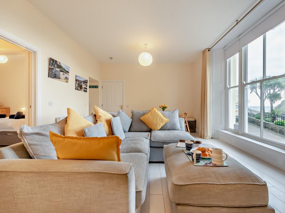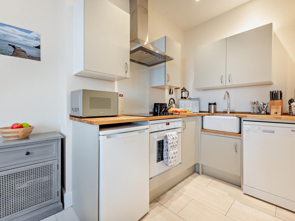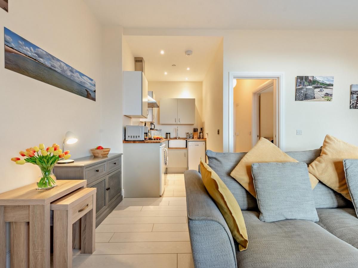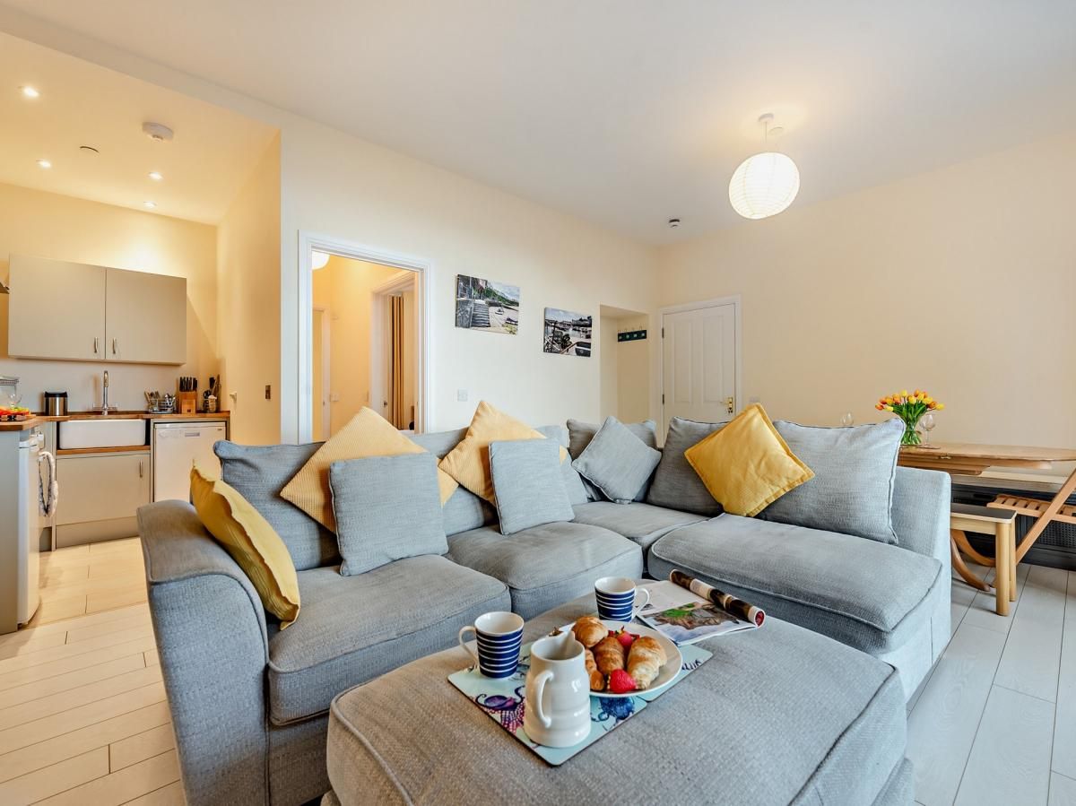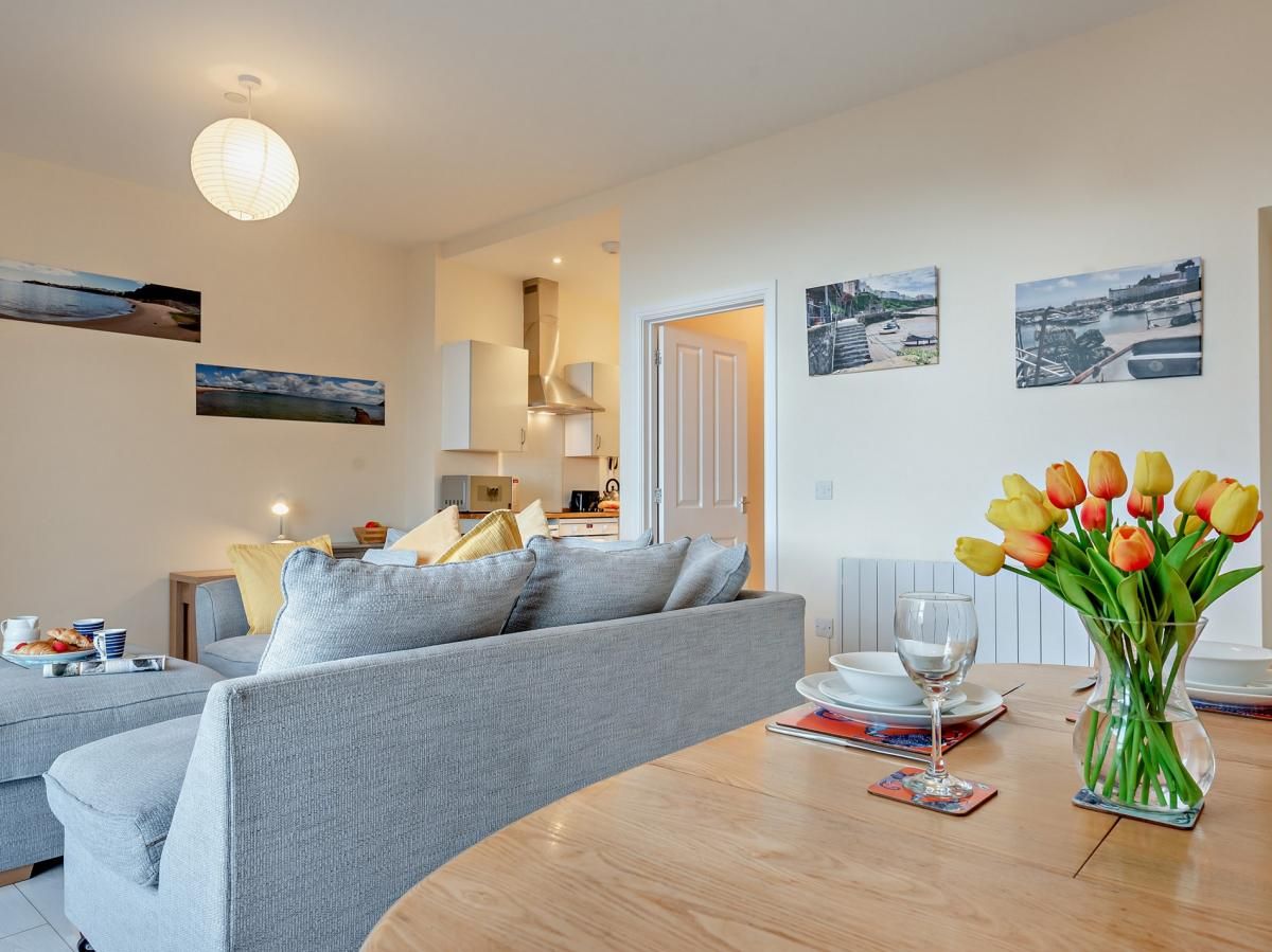 Sleek and bright interiors boasting sea views and a cosy wood burner create a tranquil atmosphere for couples seeking a traditional coastal town getaway.