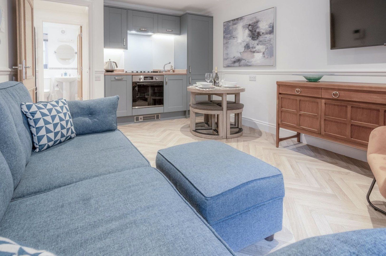 Sitting just a stone’s throw from Tenby’s South Beach, this basement-level apartment may not have much in the way of a view, but its position makes exploring the coast as easy as can be. Perfect for families given the second bedroom’s bunk bed, it’s a practical, fuss-free base that puts the shoreline and the town’s many sights on your doorstep. There’s a car park less than a minute’s walk away too should you wish to adventure further afield, but with the beach, Tenby Castle and plenty of shops to discover nearby, you’ve got everything you need here for a memorable coastal break.