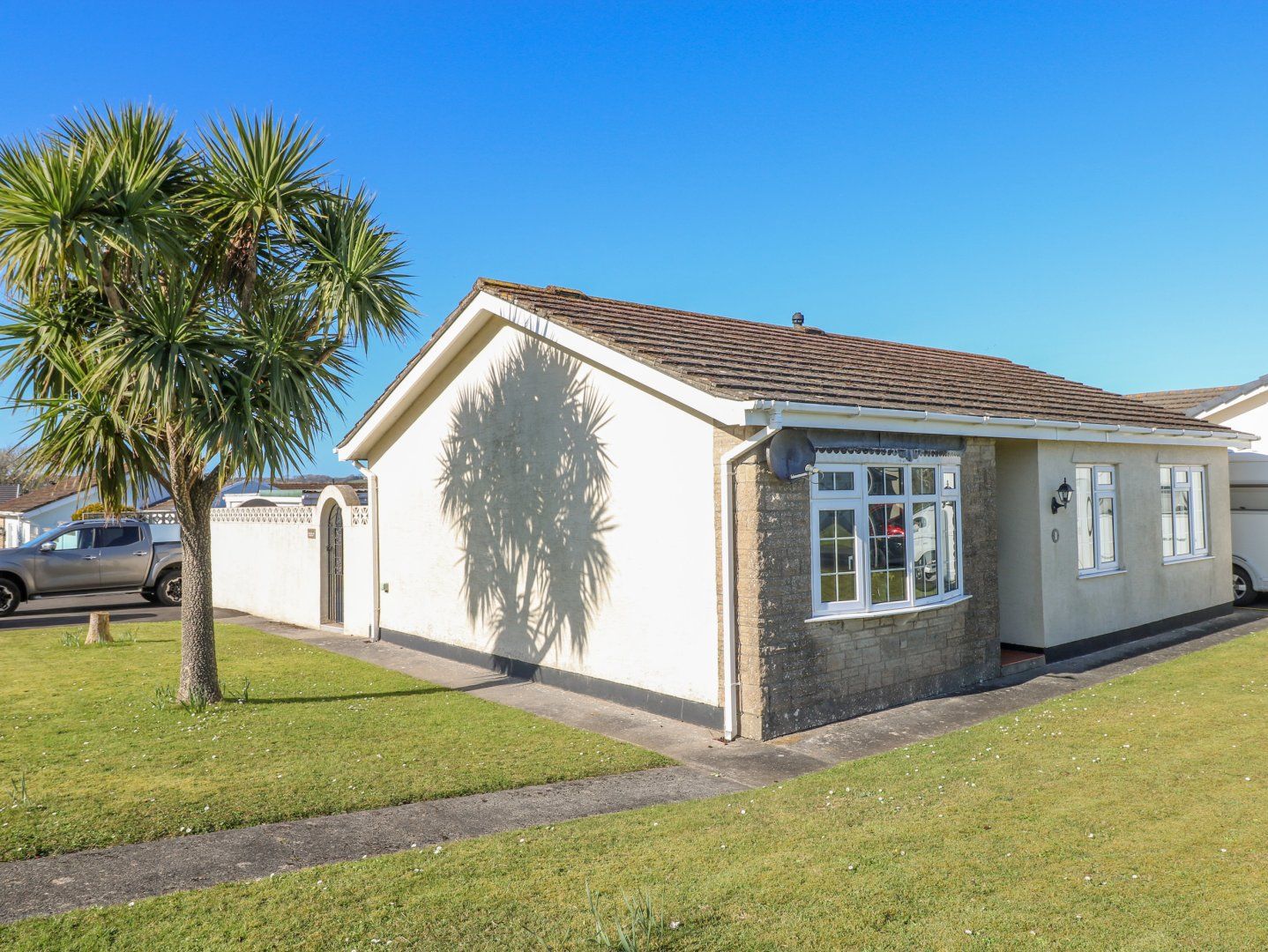The bungalow is fully fitted with everything you need for a relaxing holiday. Everything is very modern and clean inside and the garden is in a sun trap. It is situated within easy walking distance of Tenby, we walked up the path next to the golf course and didn't use the bus or taxis all week.