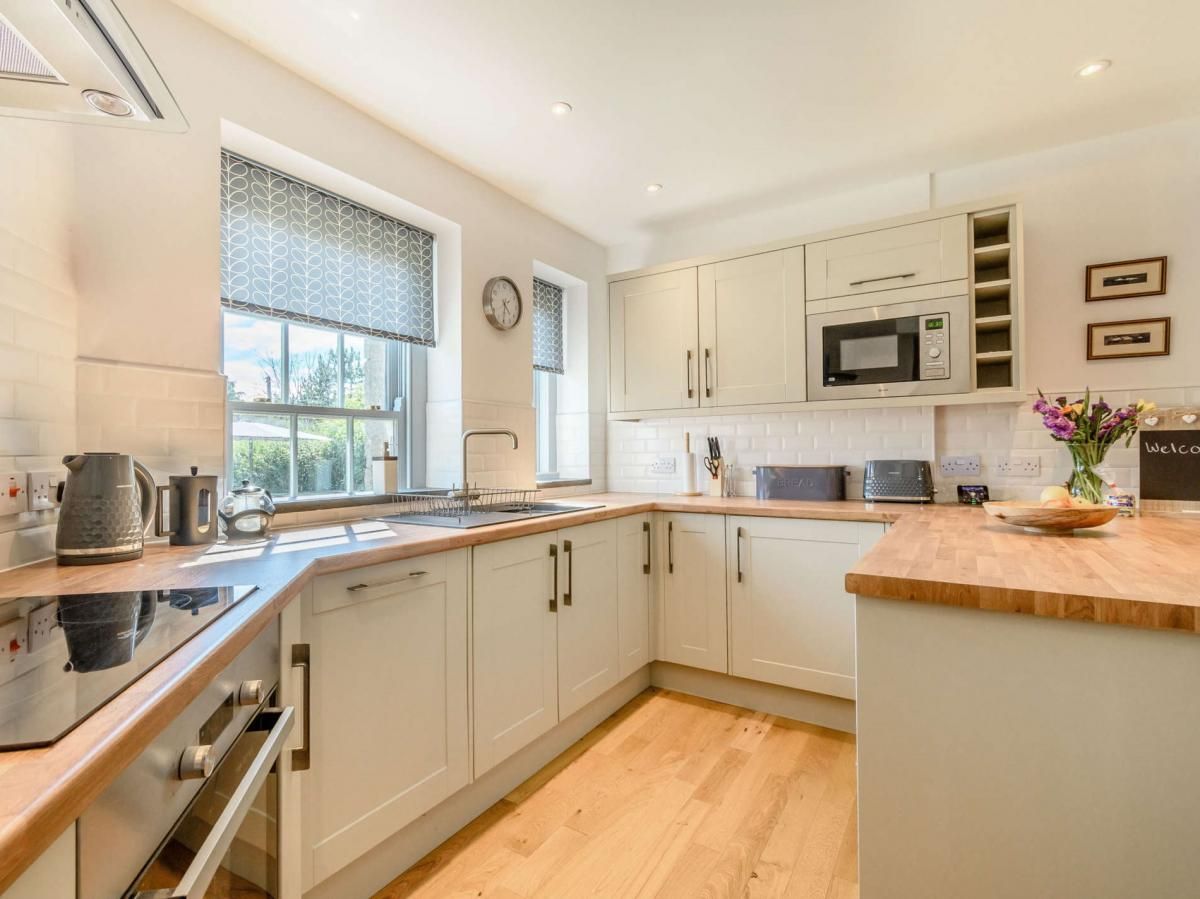 As you enter the property, you’ll find yourself in the bright and airy open-plan kitchen/diner with neutral-toned decor which is complemented by wooden worktops on the ‘U’-shaped fitted kitchen.