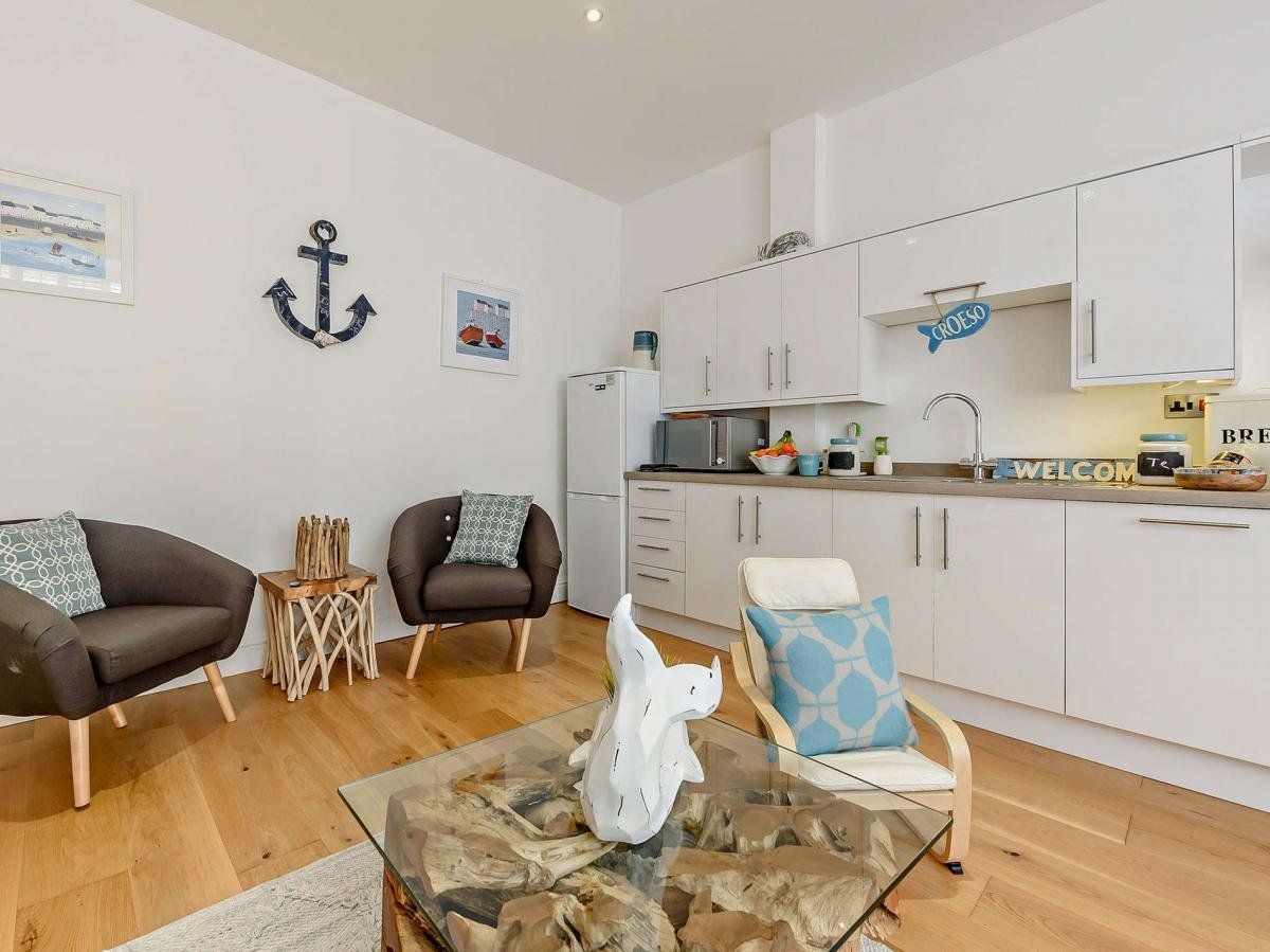 Set in the heart of Tenby, this contemporary ground-floor apartment is located just a few yards from Tenby's glorious South Beach and offers picturesque views, whatever the weather! At the end of the day, return home to this light and bright bolthole with your family of four and unwind with a tipple in the courtyard garden.