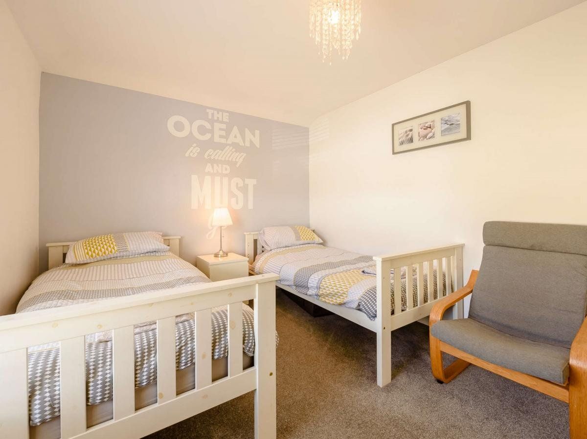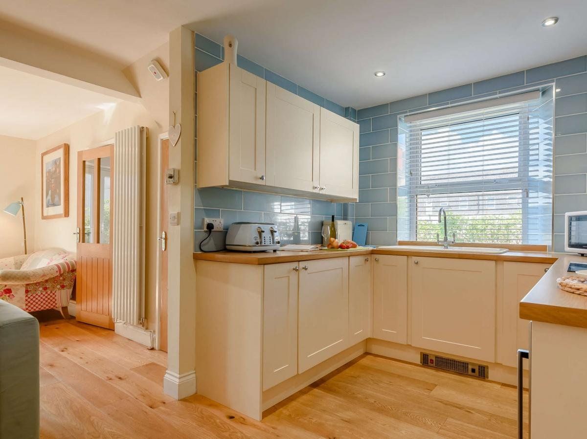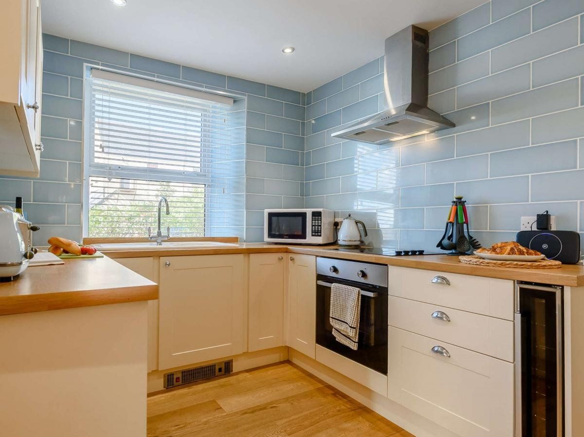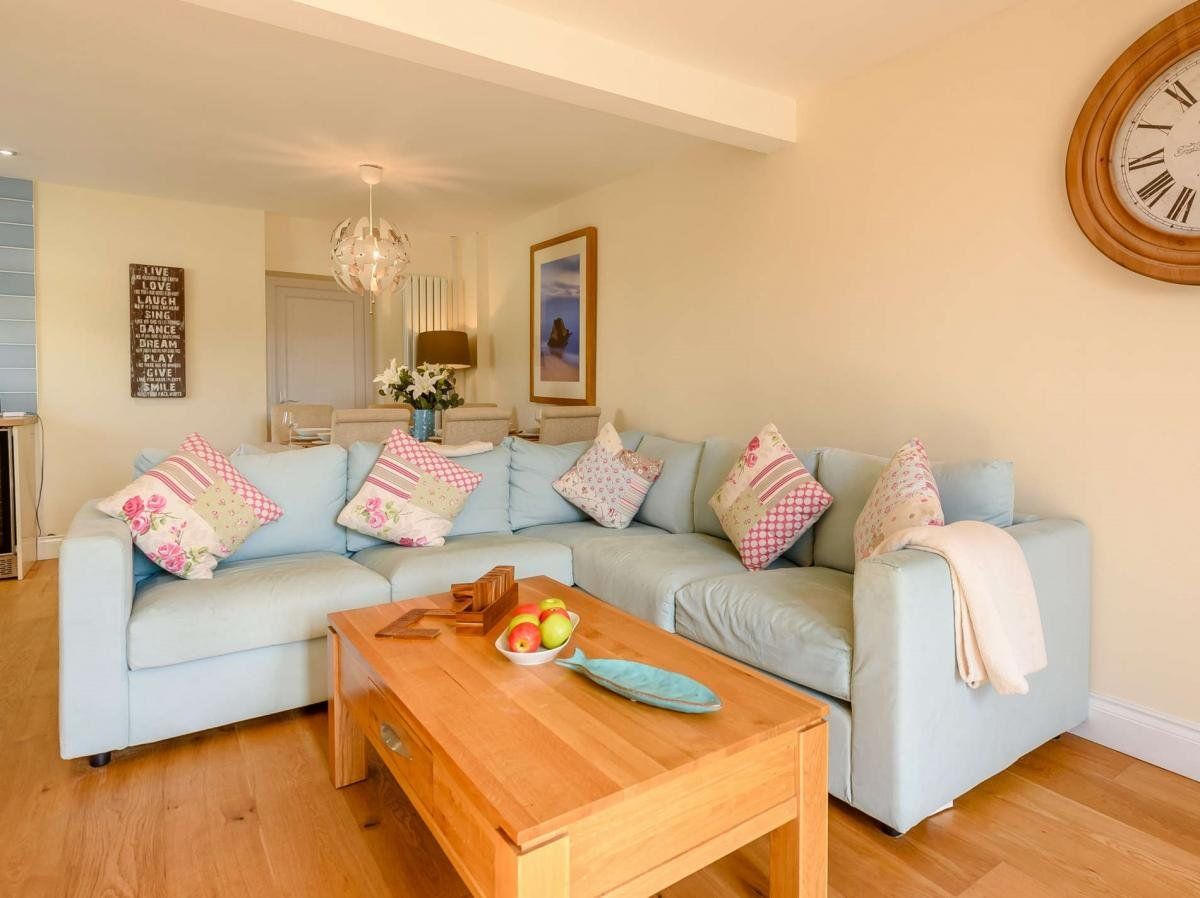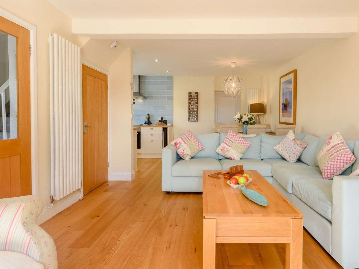 Inside the open-plan lounge/kitchen/diner, a relaxing atmosphere is created by the neutral tones, wooden furnishings and coastal colours throughout.