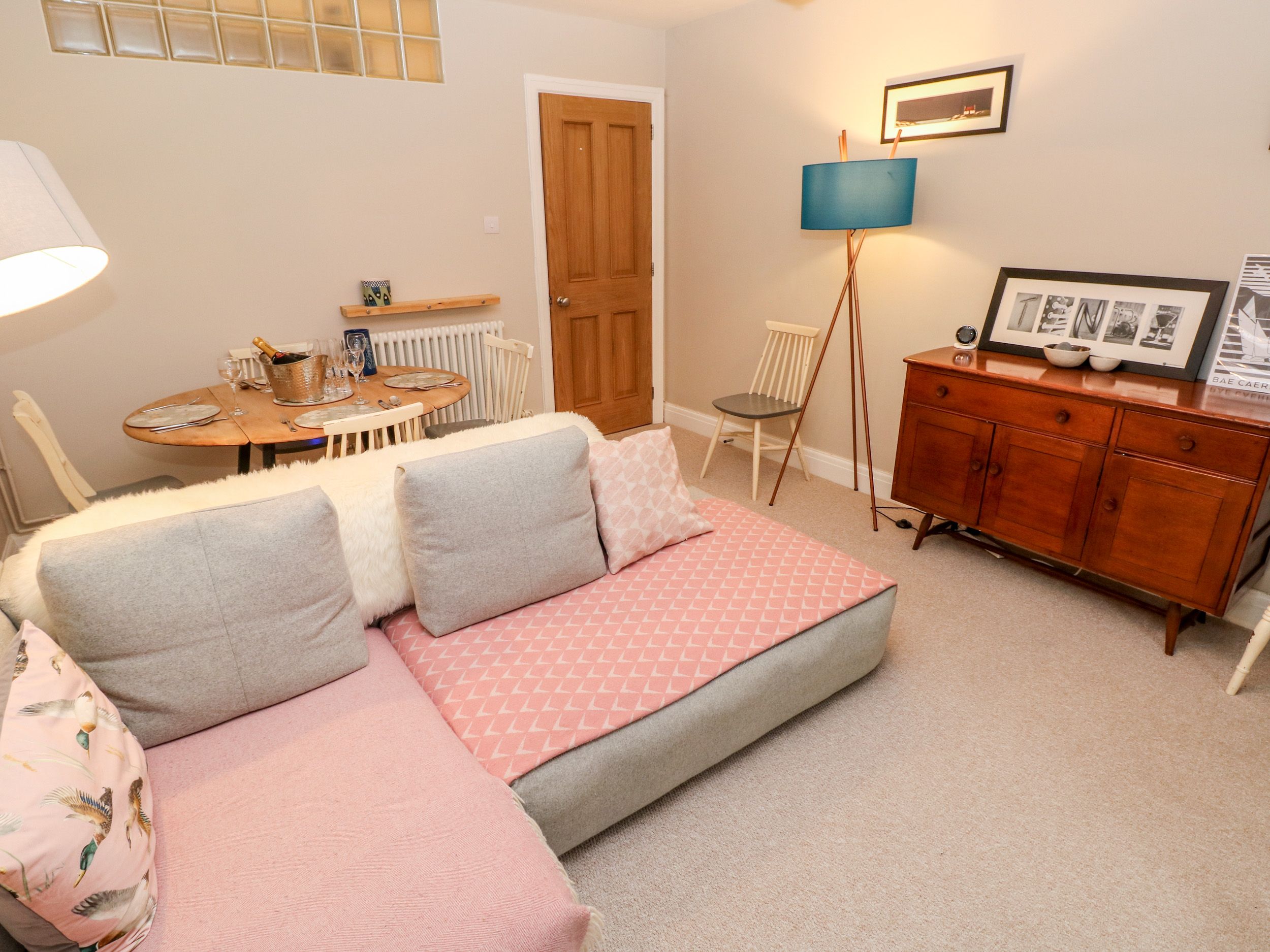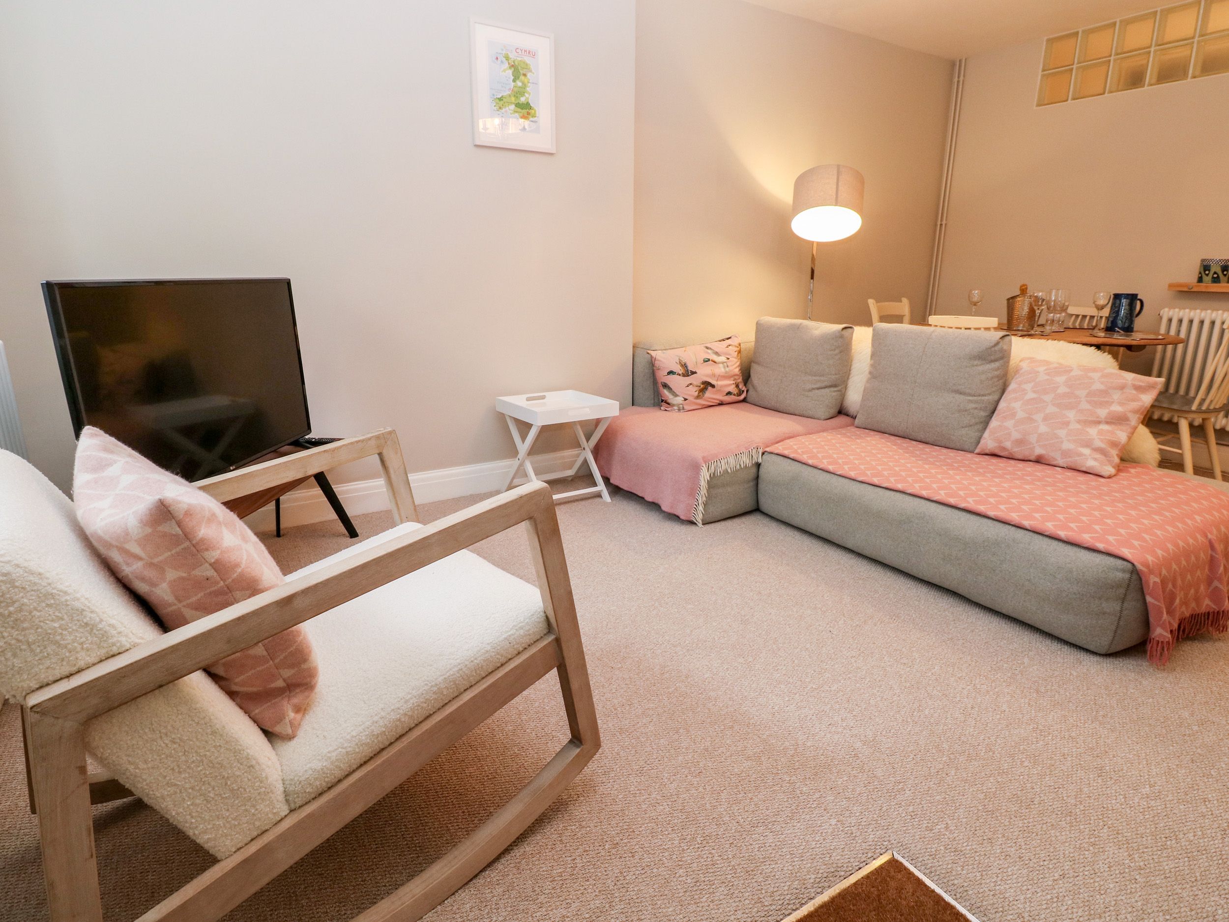 Flat 1, Belmont is a lower-ground-floor apartment consisting of a kitchen equipped with gas oven and hob, microwave, fridge/freezer, washing machine and dishwasher, and a living/dining room with seating for four guests and a Smart TV. The bedrooms consist of two king-size beds , along with a bathroom. Parking is available in the nearby car park. Within 0.1 miles, you will find a shop and pub, and within 0.3 miles, a beach and please note that one well-behaved dog is welcome but sorry, no smoking. WiFi, fuel, power, bed linen and towels are all included in the price. A highchair is available. Flat 1 is a superb base for your next Welsh adventure. Note: The property is accessed down a flight of stairs and may not be suitable for guests with lower mobility.