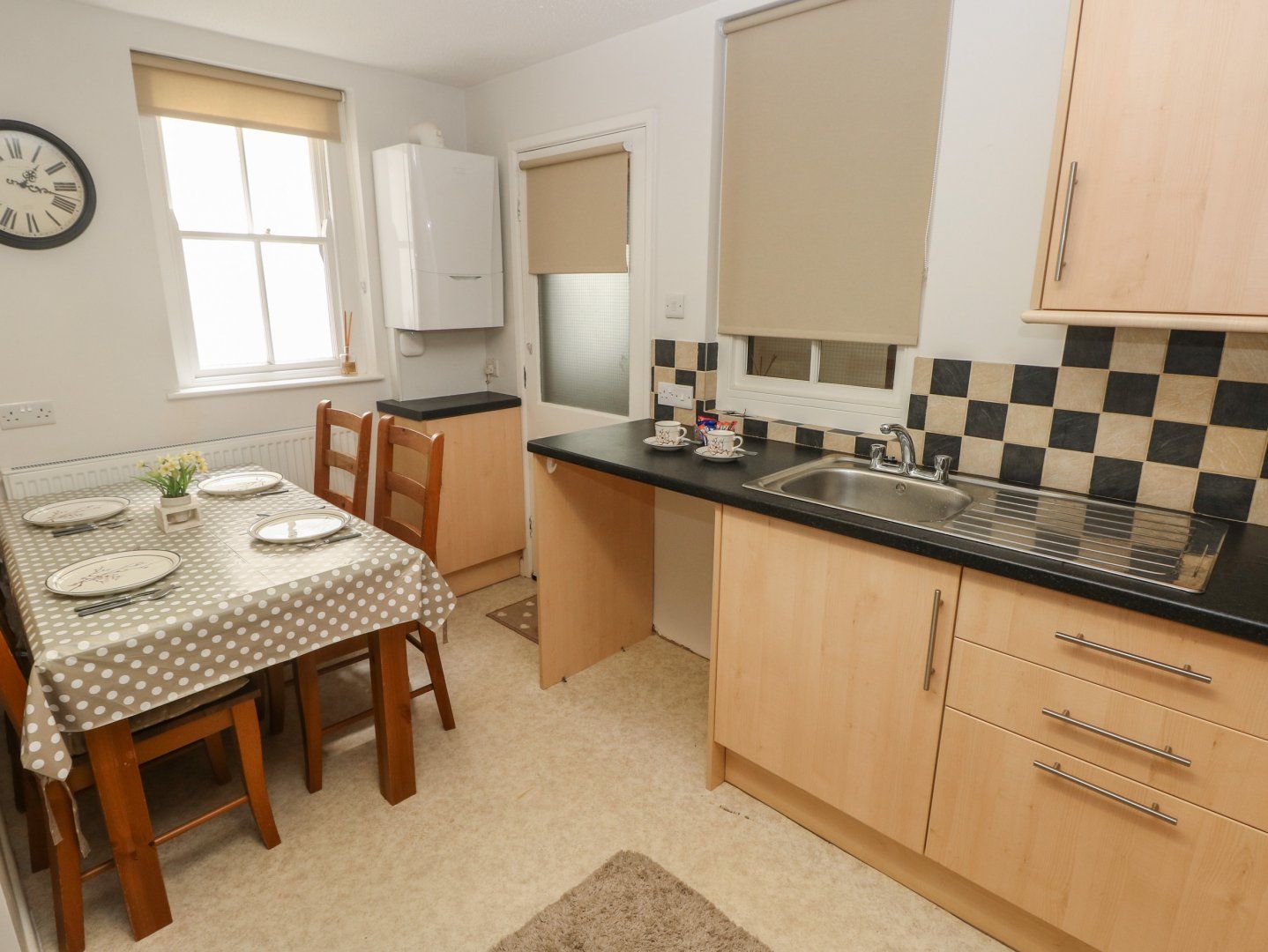 Amenities Gas heating. Electric oven, gas hob, microwave, fridge/freezer, kettle, toaster. TV, WiFi. Fuel and power inc. in rent. Bed linen and towels inc. in rent. Highchair and travel cot available. Parking in public car parks a short walk from property. Enclosed rear courtyard with furniture. One small, well-behaved dog allowed (additional charge of £25). Sorry, no smoking. Note: Pet not to be left unattended in property at any time. Shop and beach 0.2 miles, pub 0.1 miles. Note: Steep steps to access property