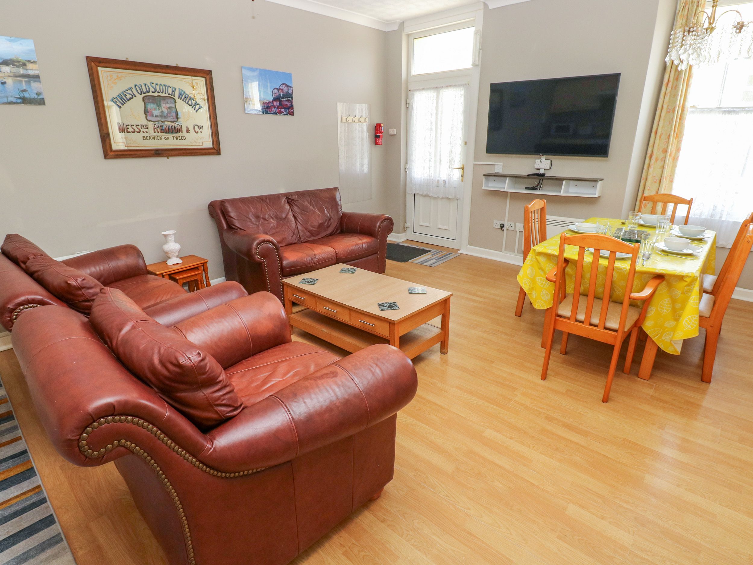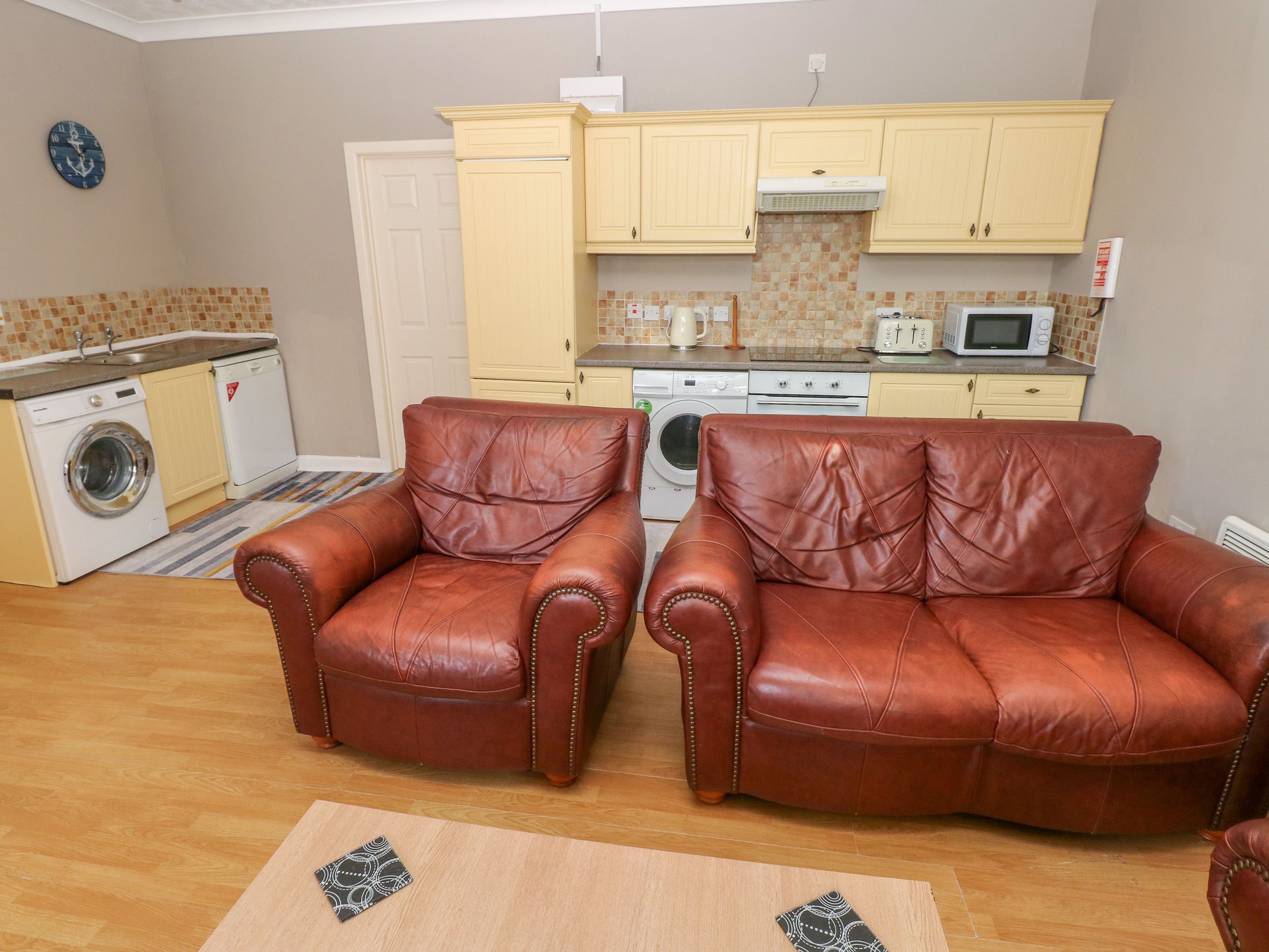 Holiday home Hilton Snug, a ground-floor apartment, consists of an open-plan living space including a kitchen with electric oven and hob, microwave, fridge, washing machine, tumble dryer, and dishwasher, a dining room with dining table for six, and a sitting room with TV. The bedrooms consist of a double and family room with bunk and single, along with a shower room with walk-in shower. WiFi, fuel, power, bed linen, and towels are included in the rent. Highchair and travel cot available. Outside, there is parking available in a nearby car park. Pet-friendly. Sorry, no smoking. Shop 0.2 miles, pub 0.3 miles, beach 0.4 miles. Enjoy a refreshing break with your loved ones at Hilton Snug. Note: There is a neighbouring restaurant located partially underneath property. Note: This property can be booked with Ref. 1162522, sleeping together up to 10 guests