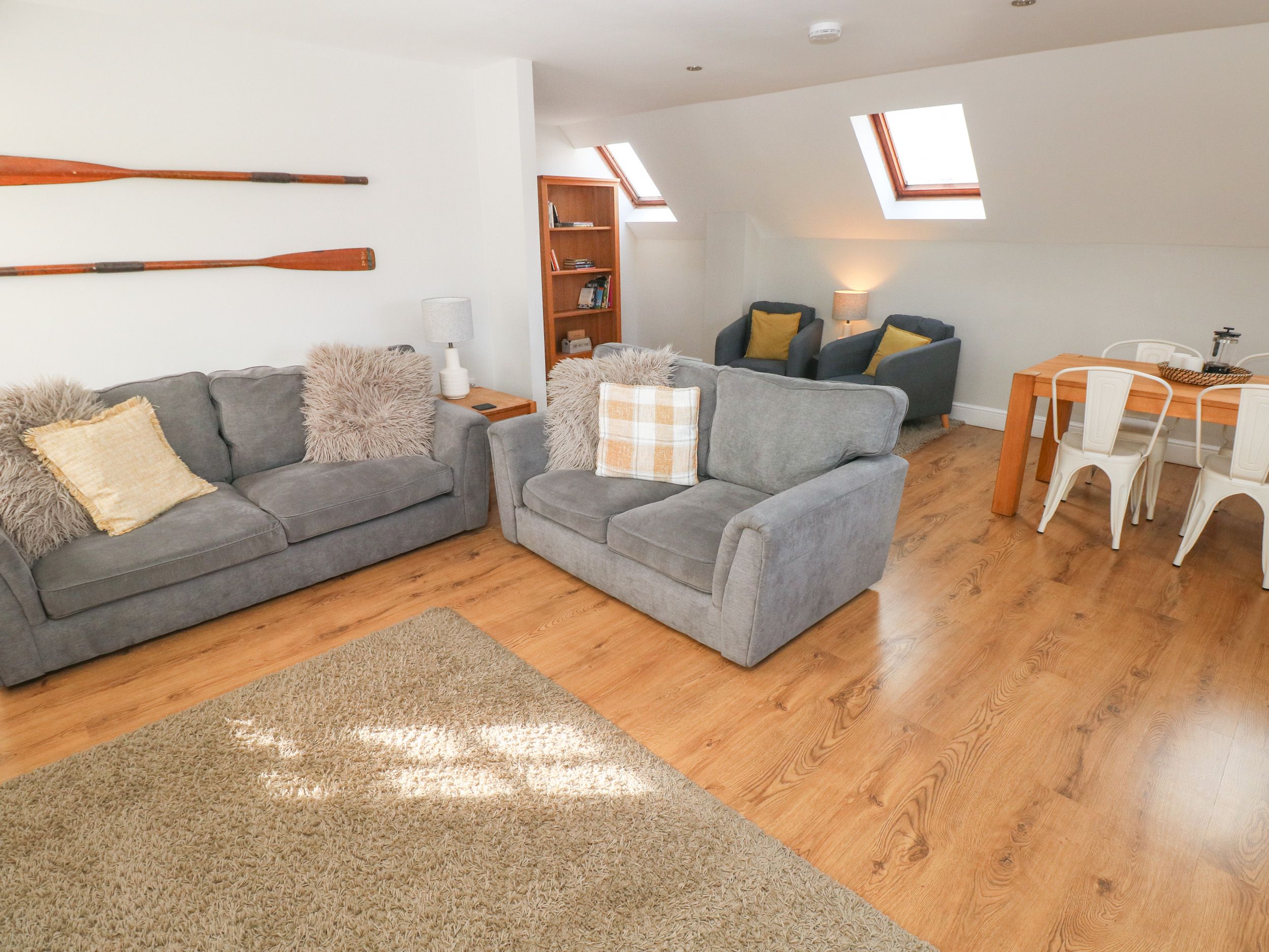 Accomodation Details Over two floors. Two ground floor bedrooms: 1 x king-size double with walk-in wardrobe and en-suite with freestanding bath, separate shower, basin and WC, 1 x twin with en-suite shower room with shower, basin and WC. First floor kitchen. First floor sitting room with dining area.