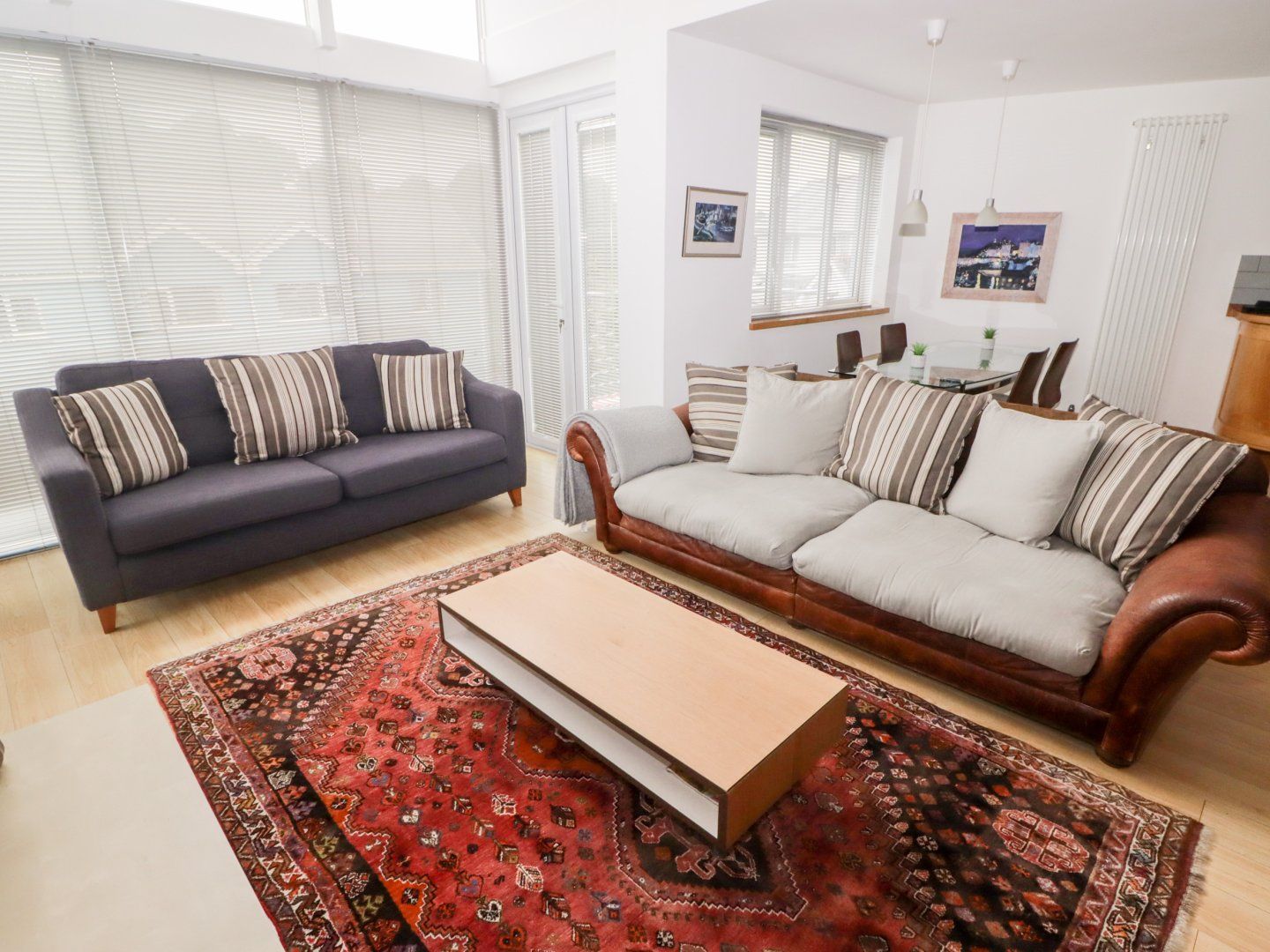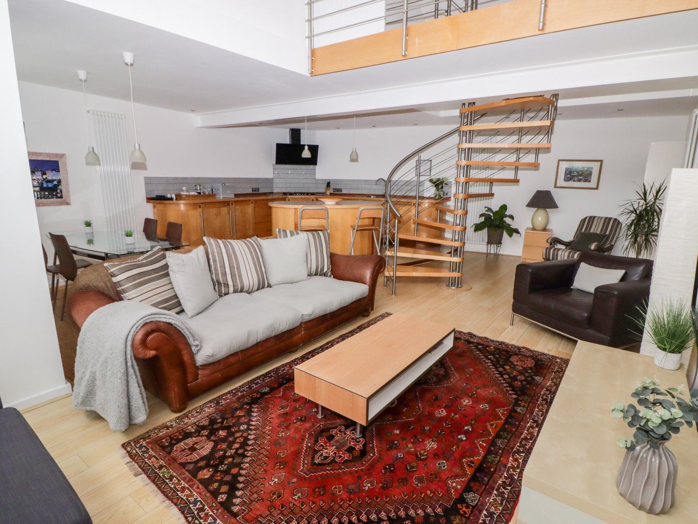 Well what can I say, firstly the apartment is wonderful, located in a little cul d sac with a few other houses it has a very attractive, modern look to the outside which continues inside, the entrance is to the right of the property up some steps and in through the front door which leads into the hallway off which is the first double bedroom and bathroom, passing through the hallway leads into the open plan living room, dining area and kitchen with the feature spiral staircase, there are two large sofas which were very comfortable and a large TV with freeview, the kitchen is very well equipped with everything you could need during your stay.