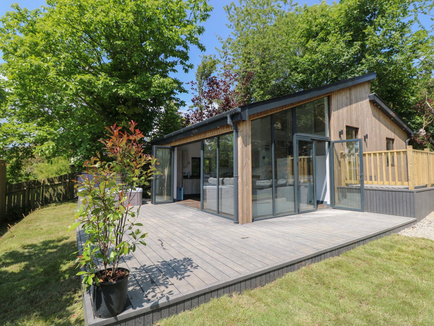 Holiday home This single-storey/split level cabin has two bedrooms, a double with a TV and en-suite shower room, and a twin (zip/link, can be super-king-size, on request), along with a shower room and an open-plan living space with kitchen, dining area and sitting area. Appliances include an electric oven and hob, microwave, fridge/freezer, washer/dryer, dishwasher and waste disposal sink, and for entertainment there is a Smart TV and WiFi. Outside, there is off-road parking for one car and a garden with a lawn, decking and hot tub. Two well-behaved dogs are welcome and a travel cot and highchair are available. Sorry, smoke-free property. Fuel, power, bed linen and towels are all included in the rent. You can find a shop, pub, and beach within 0.6 miles. Note: The cleaners are not responsible for cleaning up after pets; extra cleaning required on account of pets will be charged Note: Electric car charger available on request. Note: There are steps and a steep sloping path from the car park down to the cabin. Travel cot will only fit in the twin/super king bedroom. Please note: Check‑ins on Saturdays and Sundays are not permitted.