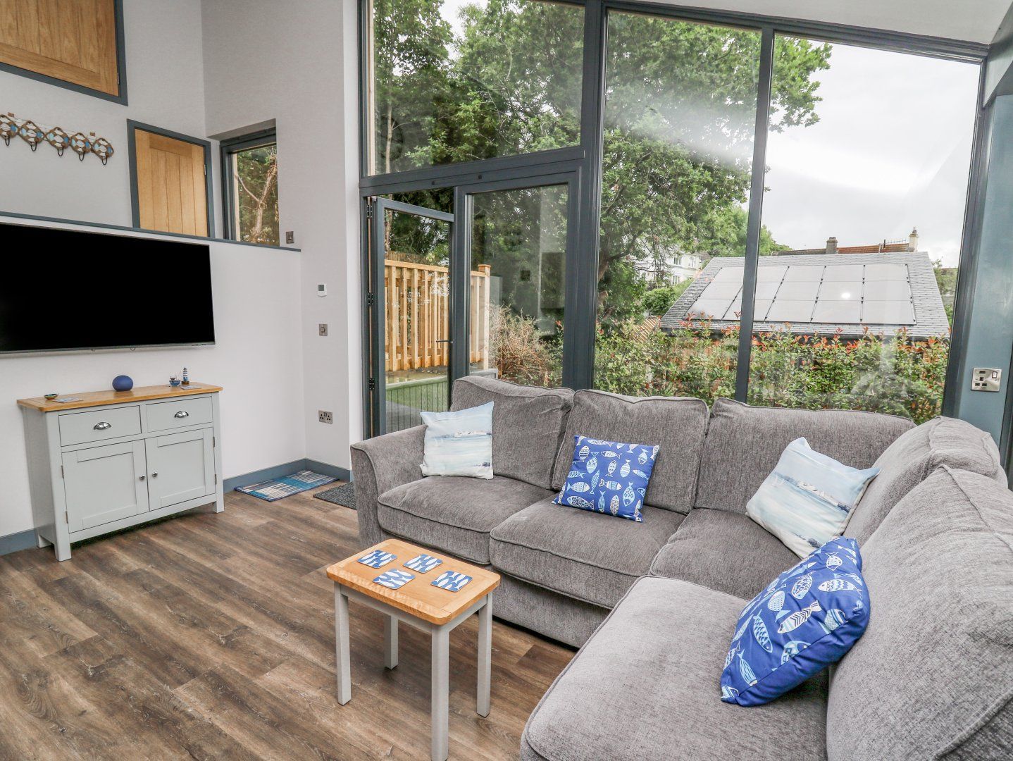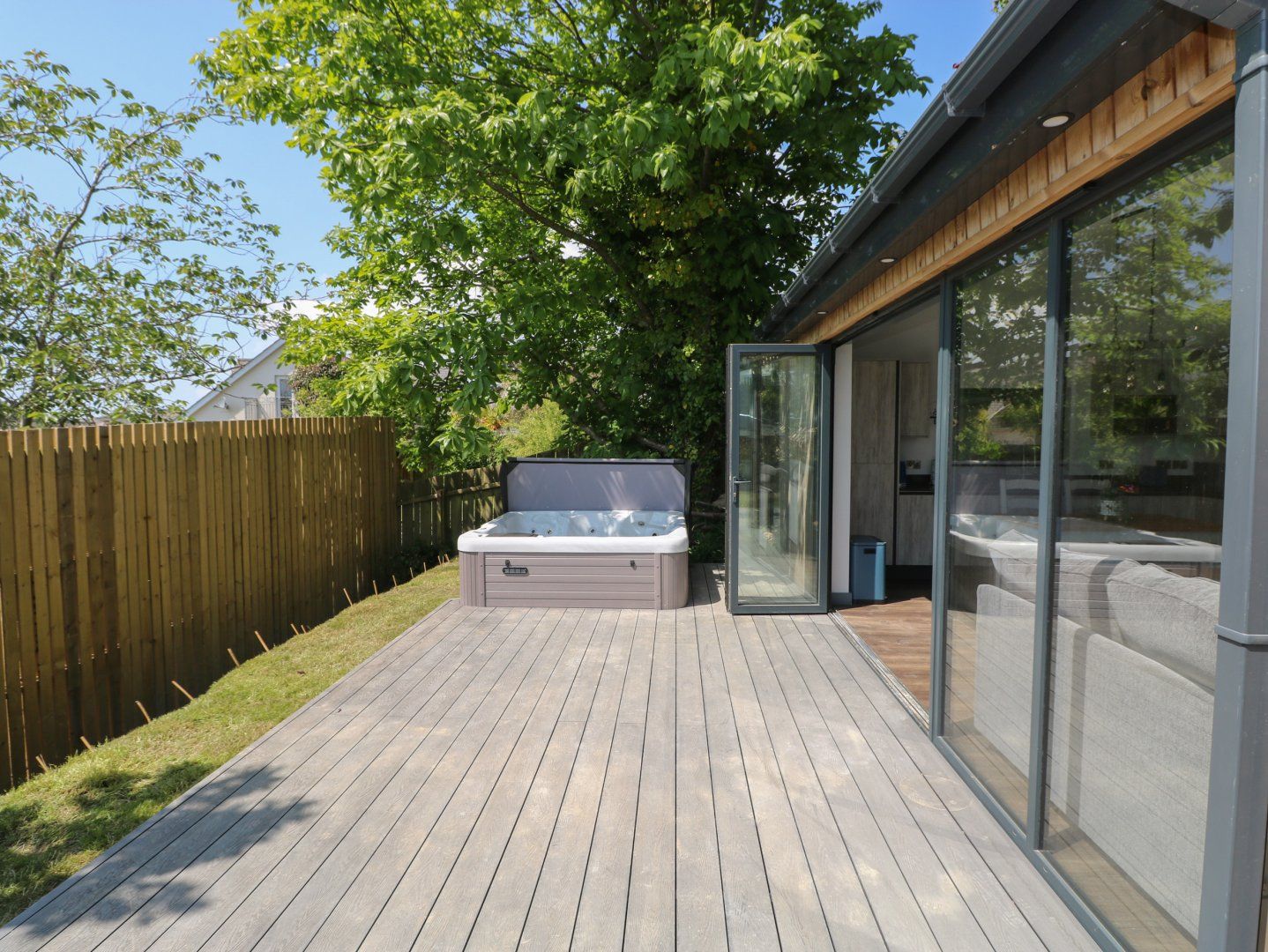 Amenities Gas underfloor heating. Air-conditioning. Electric oven and induction hob, microwave, fridge/freezer, washer/dryer, dishwasher and waste disposal sink. Smart TV and WiFi. Fuel and power inc. in rent. Bed linen and towels inc. in rent. Travel cot and highchair available on request only, cot bedding not provided. Travel cot will only fit in the twin/super king bedroom. Off-road parking for 1 car. Garden with lawn, decking and hot tub. Two small well-behaved dogs welcome (Please note: Garden is not enclosed). Sorry, no smoking. Beach, shops, pubs and restaurants within 0.5 miles. Note: The cleaners are not responsible for cleaning up after pets; extra cleaning required on account of pets will be charged. Note: Electric car charger available on request. Note: There are steps and a steep sloping path from the car park down to the cabin. Note: There are building works on a neighbouring property. Please note: Check‑ins on Saturdays and Sundays are not permitted.