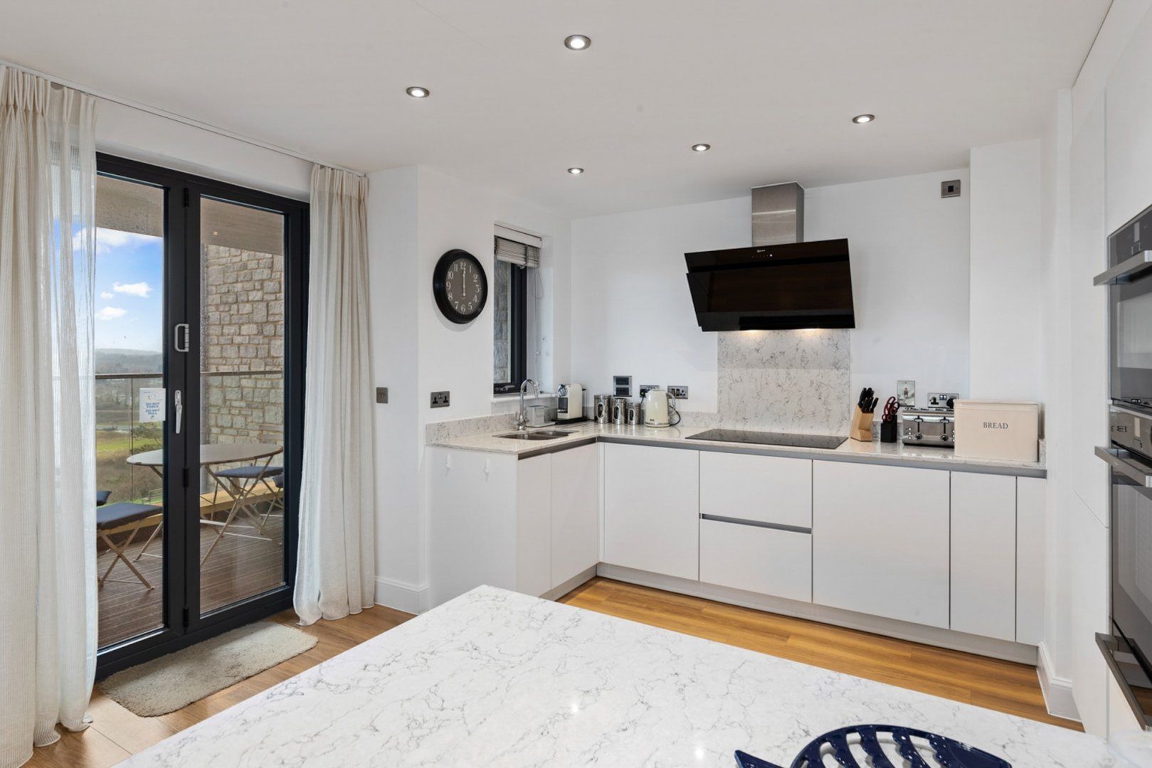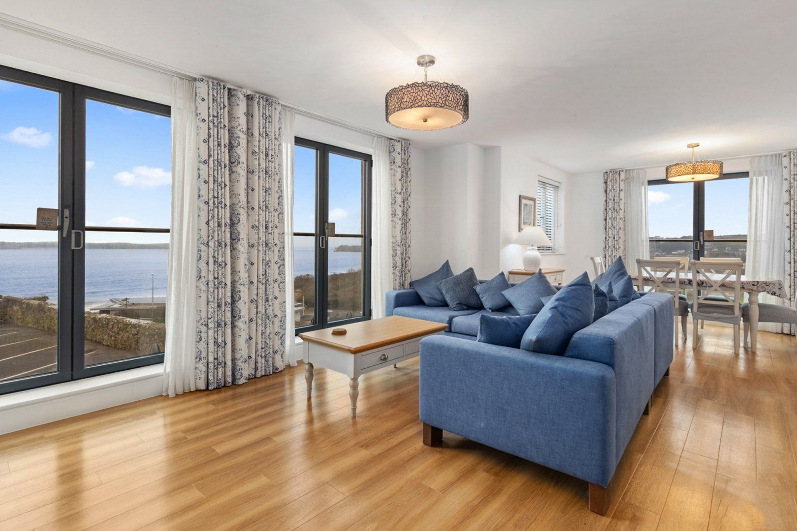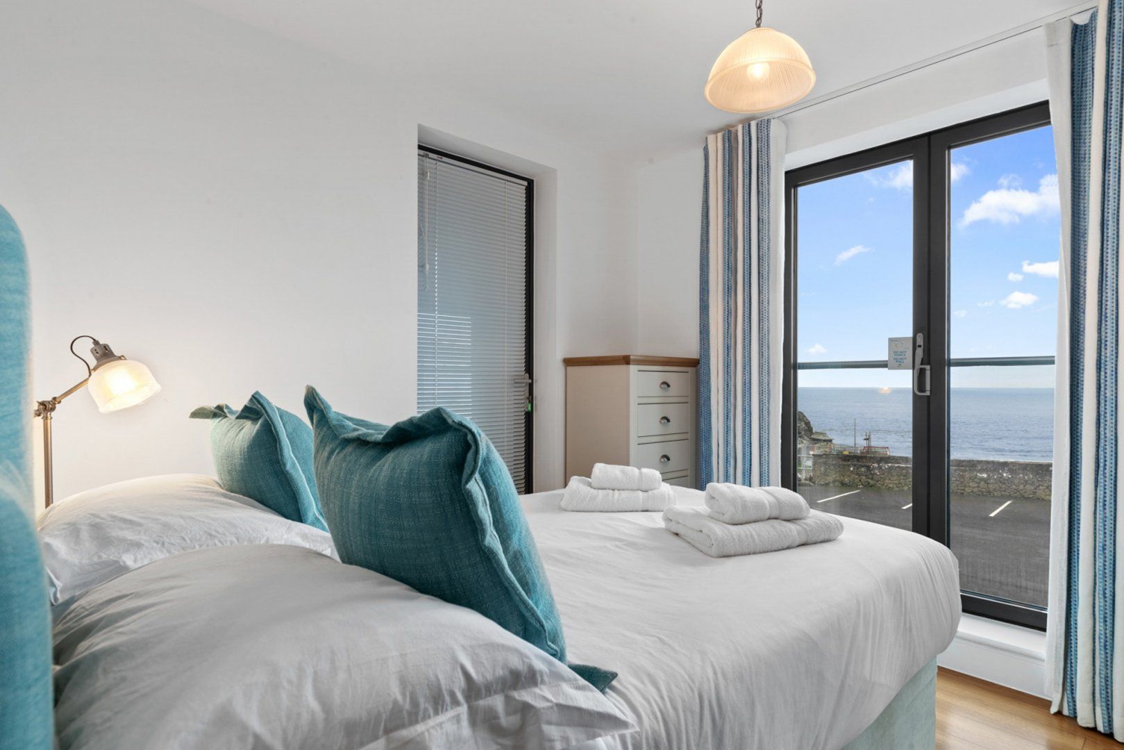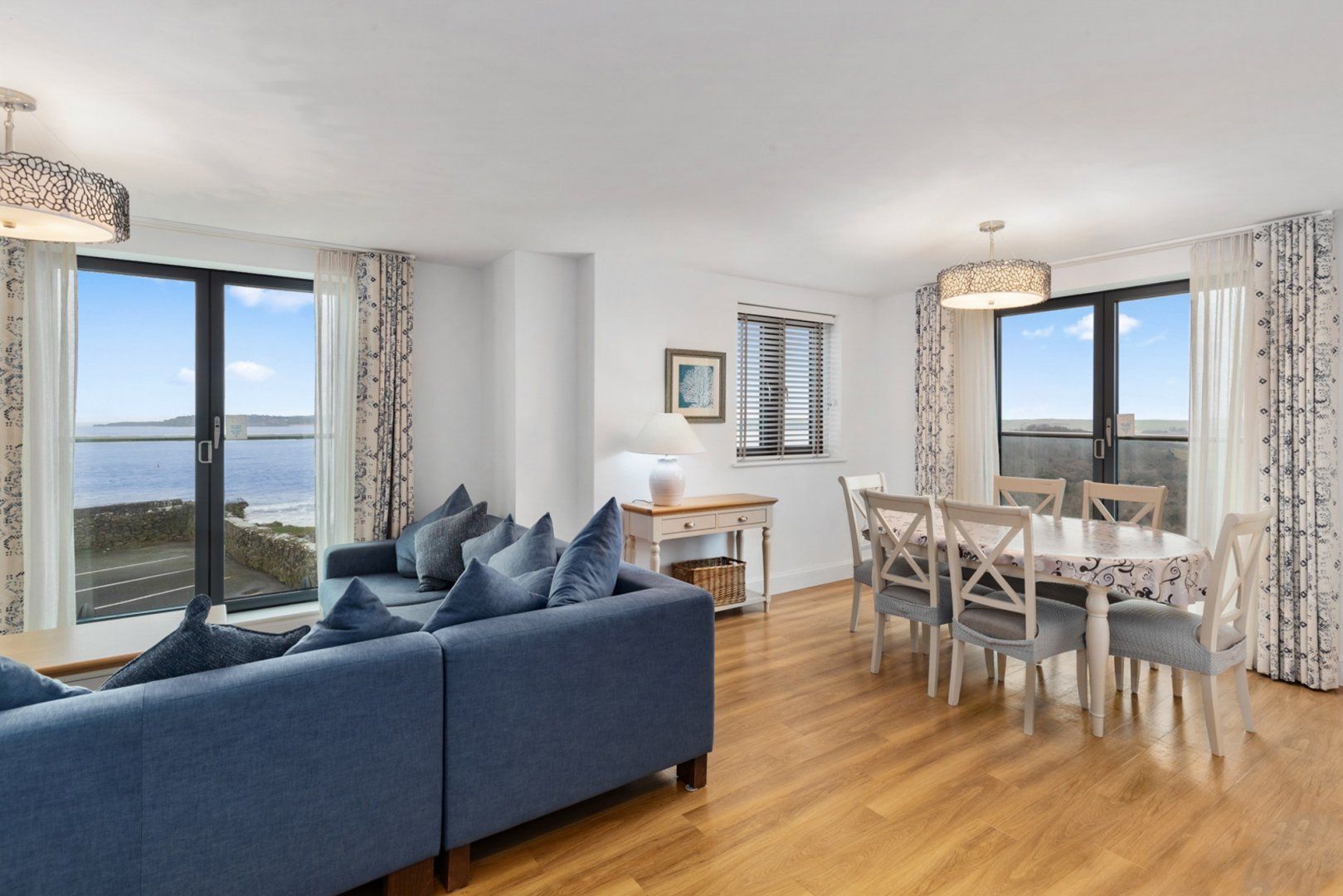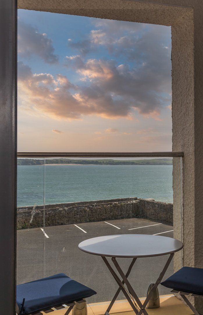 As you look around this home, it becomes clear very quickly that it has been designed to make the most of the beautiful coastal scenery in which this part of south Wales really specialises. In the living room, huge bi-fold doors open up to Juliet balconies that gaze out over Tenby's South Beach, while in the bedrooms there are further balconies, only this time with a view of Caldy Island. With such glorious panoramas, you could be forgiven for not really paying the interior much attention, but when you do get around to it, you'll find a modern space that's simple but effective — we're fans of the minimalist white kitchen, in particular. As you can probably imagine when looking out the window, the beach isn't too far away — just five minutes' walk, in fact. Tenby Castle can be reached in under a quarter of an hour on foot, too.