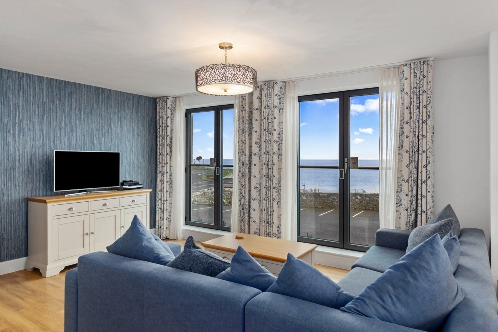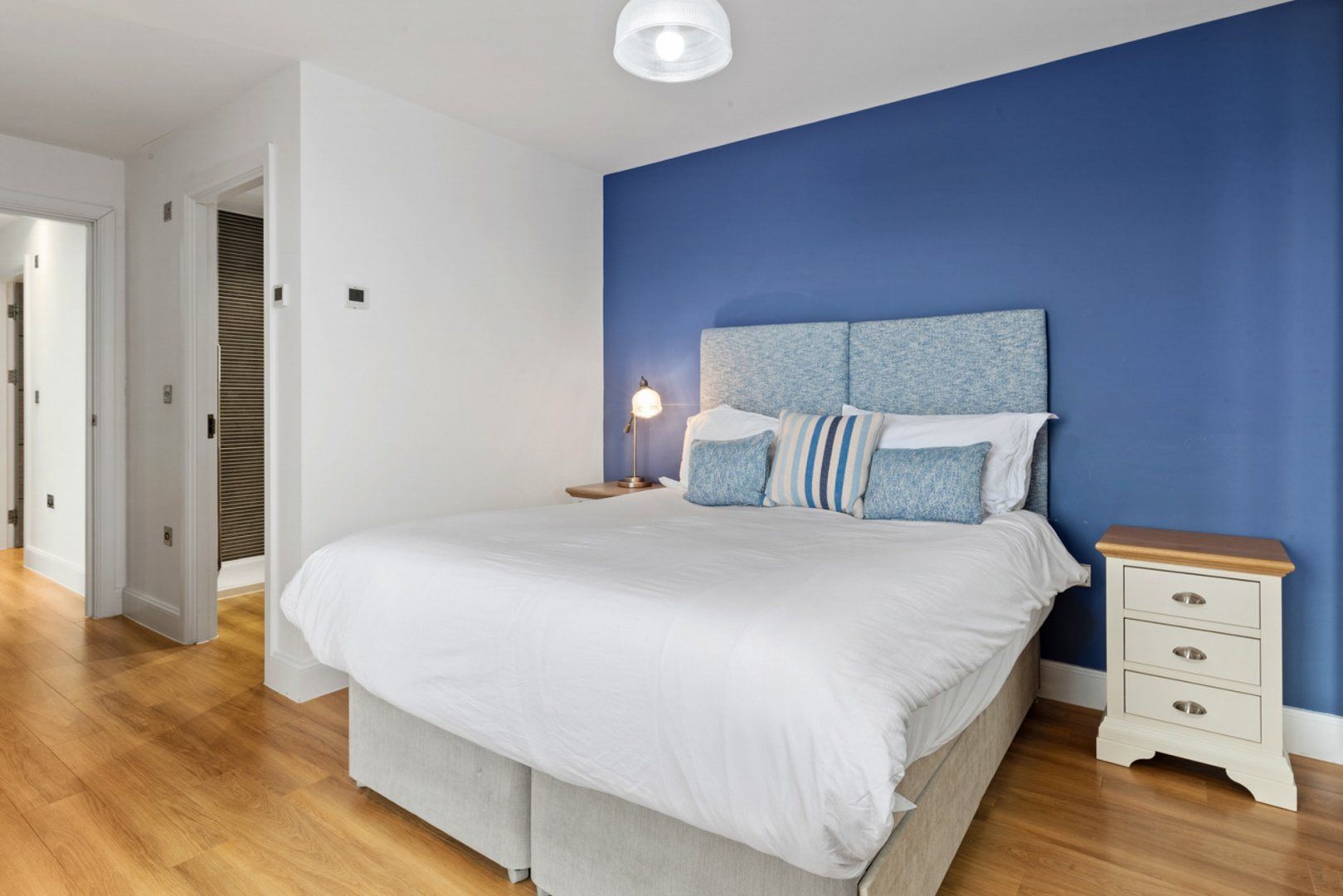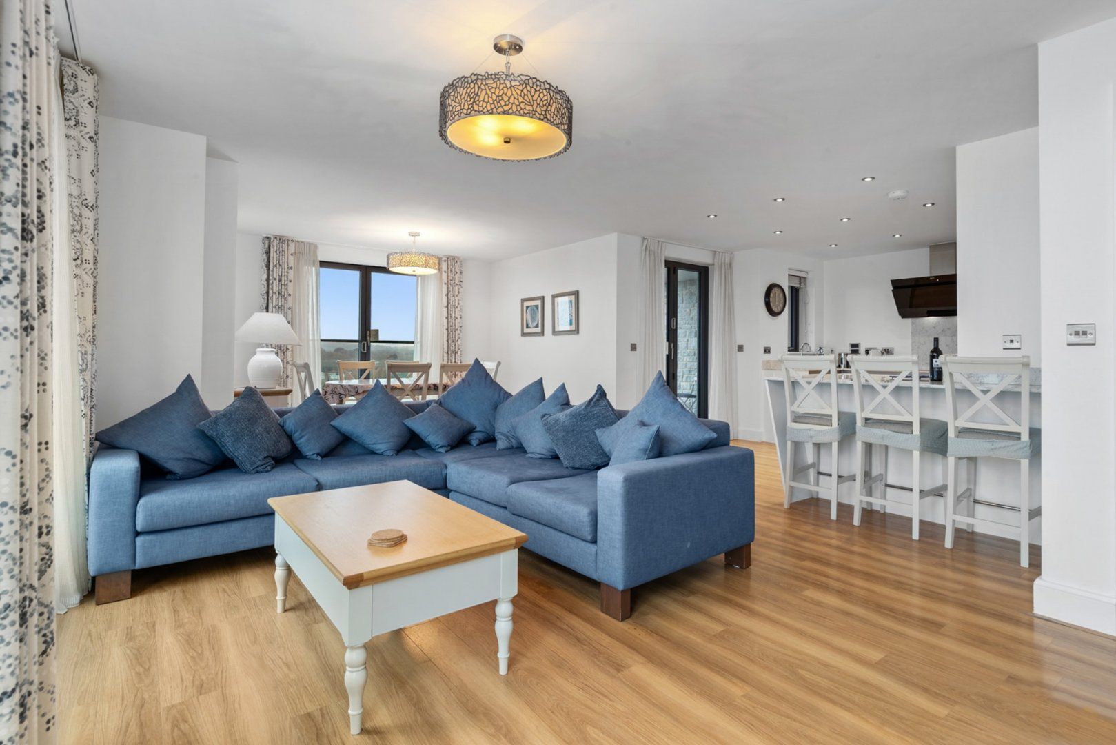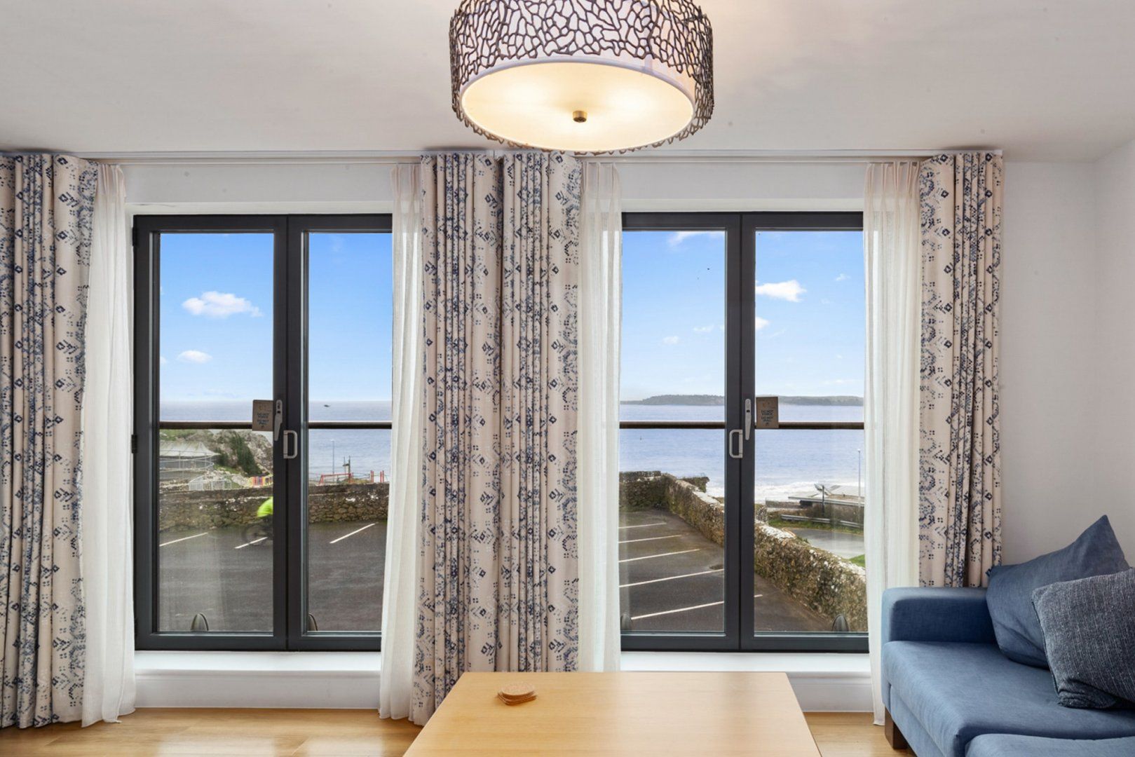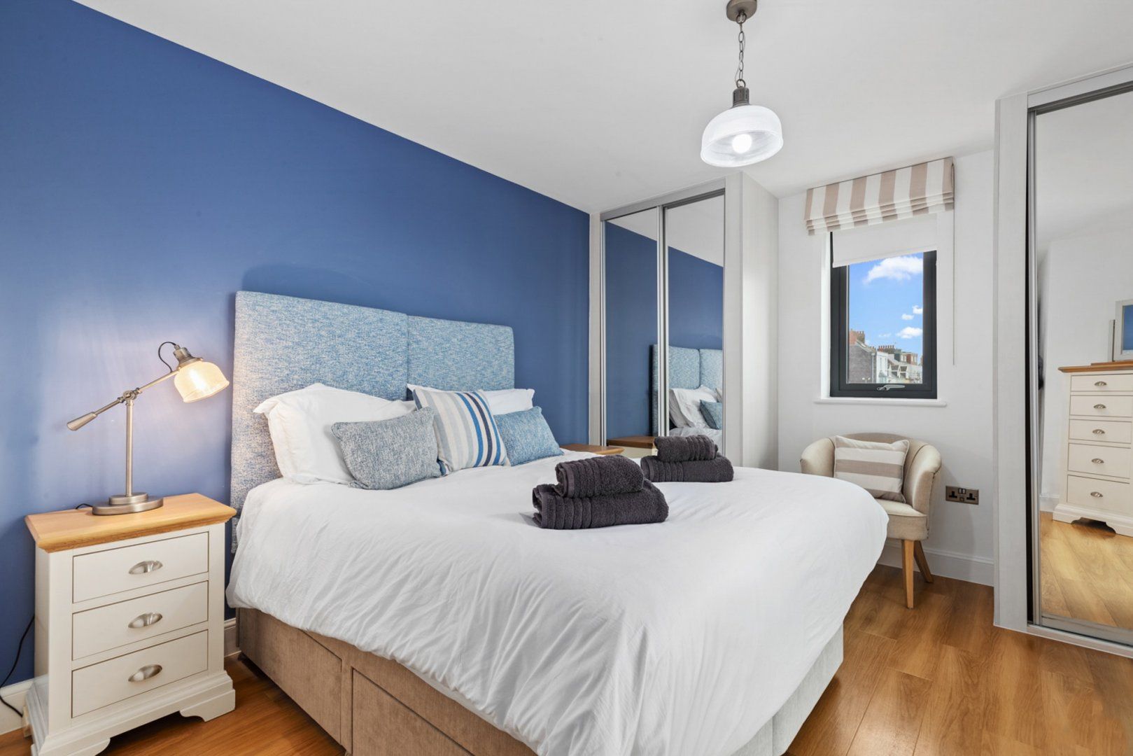 As you look around this home, it becomes clear very quickly that it has been designed to make the most of the beautiful coastal scenery in which this part of south Wales really specialises. In the living room, huge bi-fold doors open up to Juliet balconies that gaze out over Tenby's South Beach, while in the bedrooms there are further balconies, only this time with a view of Caldy Island. With such glorious panoramas, you could be forgiven for not really paying the interior much attention, but when you do get around to it, you'll find a modern space that's simple but effective — we're fans of the minimalist white kitchen, in particular. As you can probably imagine when looking out the window, the beach isn't too far away — just five minutes' walk, in fact. Tenby Castle can be reached in under a quarter of an hour on foot, too.