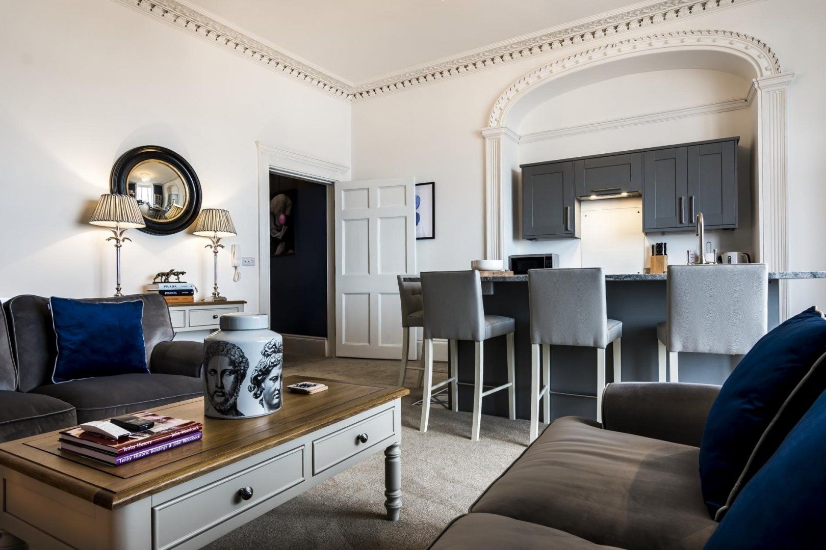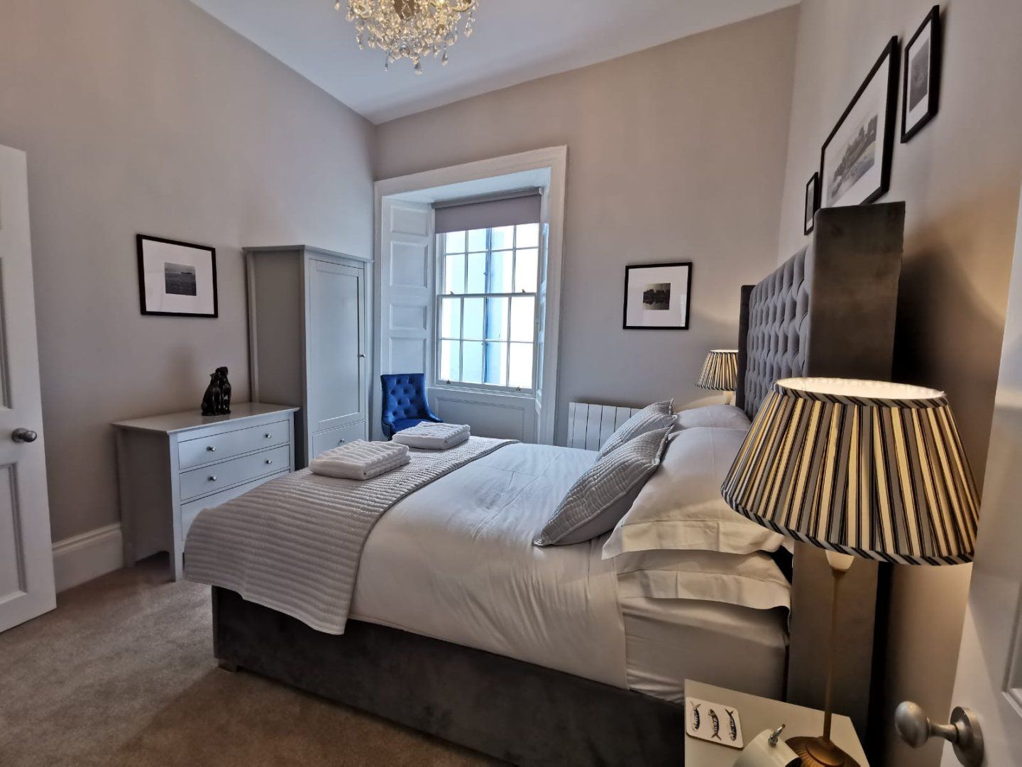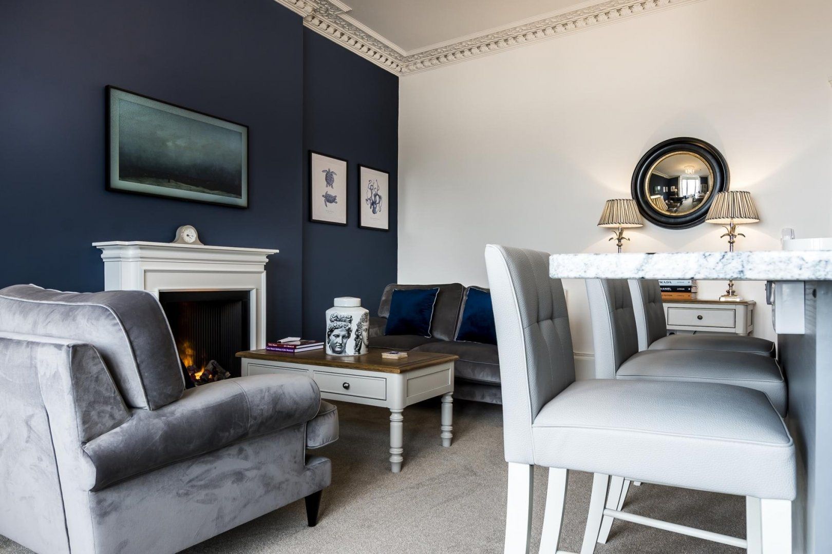 Set above the sea, a three-minute walk to North Beach, this stylish home is perfectly positioned for exploring the heart of Tenby and the Pembrokeshire Coast. Inside, there’s an open-plan living space with a moody blue and grey colour scheme, creating a sophisticated yet cosy feel. We particularly loved the subtle nautical nods and funky artwork. On chilly days, warm your toes by the fire or sip a mug of hot tea by the enormous bay windows, watching as the waves break on the shore. Cook up your favourite dinners in the flash kitchenette – but not before you’ve sampled fish and chips from D.Fecci and Sons on lower Frog Street, some of the best in town. When the sun shines, make a beeline for the placid waters of Castle Beach and explore Tenby Museum and Art Gallery, the oldest of its kind in Wales. If you’d prefer to expend a little more energy, it’s an hour’s amble to Saundersfoot.