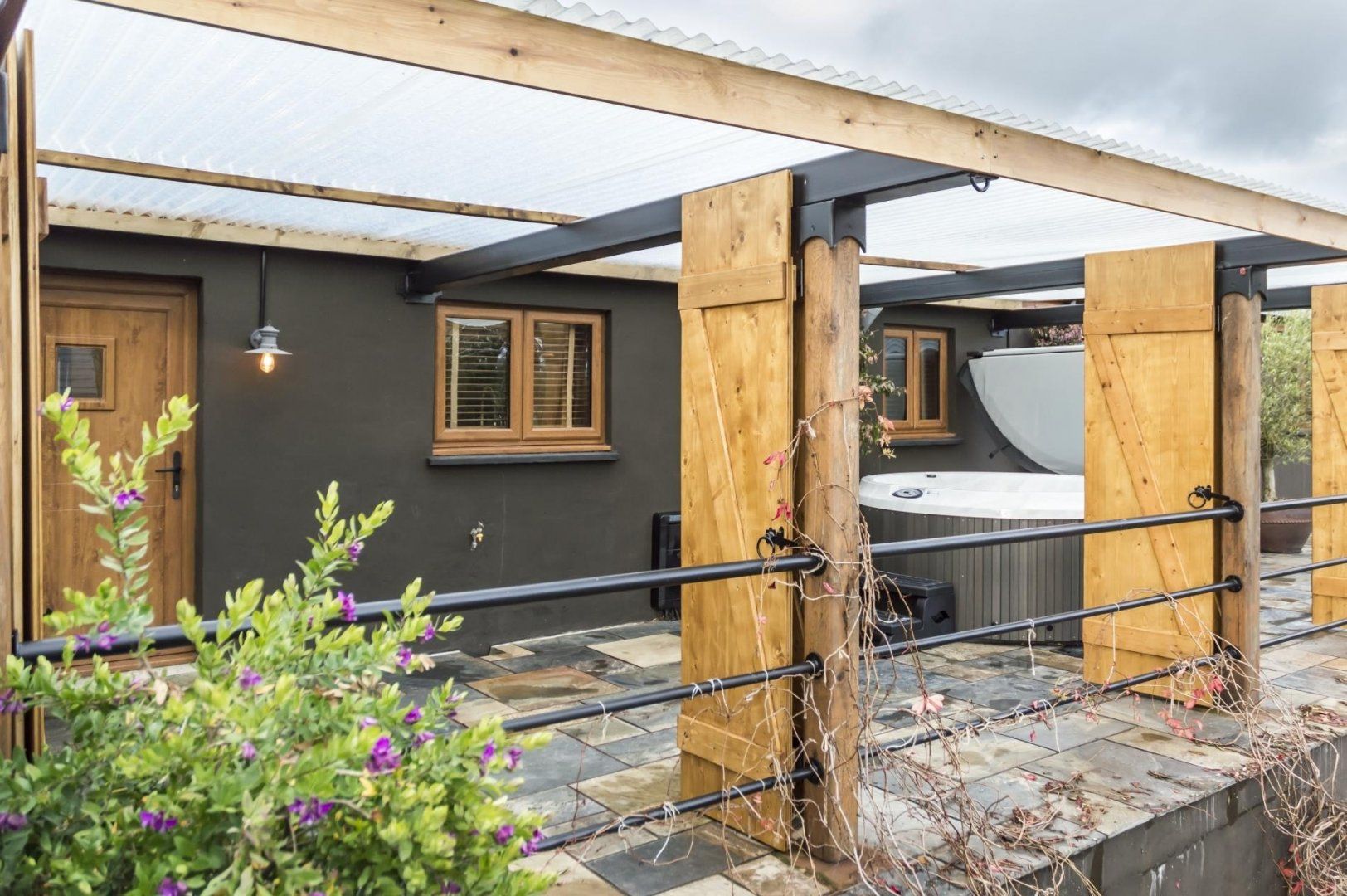 Bookended by unspoilt beaches, this cosy barn conversion is perfectly positioned for exploring the Pembrokeshire Coast. A twenty-minute drive is Newgale Beach, but just a little further in the opposite direction is Marloes Sands, next to the charming village of Dale. The National Park is also only a sixteen-minute drive away, offering scenic walking trails with breathtaking views. Back home, the farm's landscaped gardens and lush meadows make for a welcomed return, while inside, there’s an open-plan living space with oak beams overhead and slate flooring underfoot, creating a warm and homely feel. Cook for your guests while socialising over a glass of wine in the country-style kitchen and dining area. When you're not strolling through the farm, sitting beside the lake or lounging on the sofa, drop yourself into the hot tub for an evening of relaxation – the covered area means you can get your bubbles on each and every night.