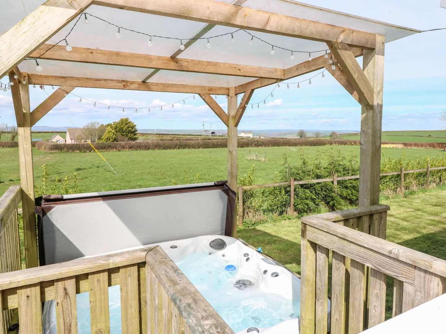 Amenities Calor gas central heating. Electric double oven, gas hob, microwave, fridge/freezer, dishwasher. Smart TV, selection of books and games, WiFi. Fuel and power inc. in rent. Bed linen and towels inc. in rent. Travel cot and highchair available on request. Off-road parking for 2 cars. Enclosed rear garden with lawn, front decking with furniture and hot tub, shared grounds and dog walking field. One small well-behaved dog welcome. Sorry, no smoking. Shop 2.3 miles, pub 0.6 miles. Note: There is a washing machine and tumble dryer available in the shared utility for guests to use at an additional fee. Note: Check-in from 4pm, check-out at 9:30. Please note during the winter months Nov to March, there is a supplement of £50.00 to use the hot tub, please call Sykes to arrange payment. Please note - No worker bookings at the property.