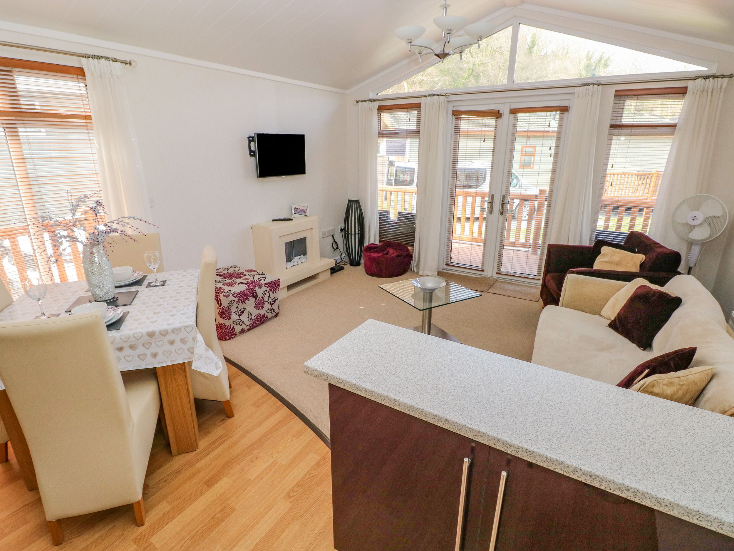 Amenities Gas central heating with gas fire. Electric oven, gas hob, microwave, fridge, freezer, washing machine, TV with Freeview, DVD, CD/radio, WiFi, selection of books, games and DVDs. Fuel and power inc. in rent. Bed linen and towels inc. in rent, please bring own beach towels. Designated parking space for 1 car, plus unrestricted parking in site car park 100 yards from lodge. Front decked patio with furniture, rear lawned garden. Sorry, no pets and no smoking. Shop, pub and beach 1 mile. Note: Although all ground floor, there are 3 steps up to the property.