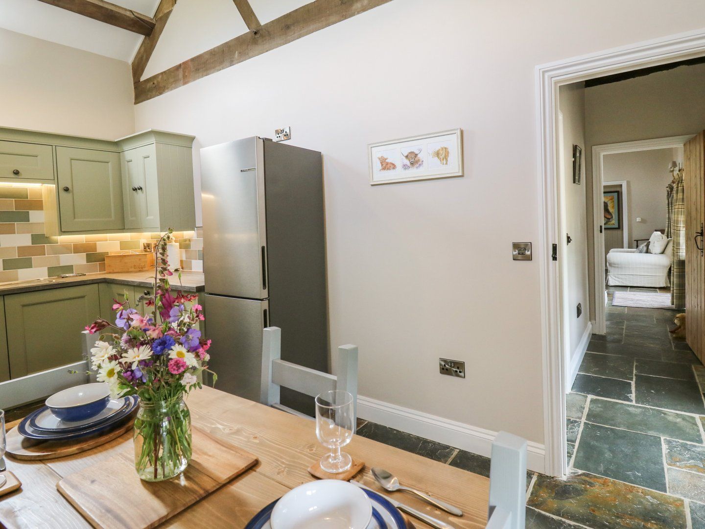 Amenities Oil central heating and underfloor heating. Electric oven and hob, microwave, fridge/freezer, washer/dryer, dishwasher. Smart TV, WiFi, selection of books. Fuel and power inc. in rent. Bed linen and towels inc. in rent. Off-road parking for 2 cars. Non-enclosed rear garden with furniture, barbecue, plus 40 acres of private land. Wildflower meadows with stream and pond. Wildlife: Red Kites, Buzzards, Foxes and Hares. Donkeys on site. Adjoining common land with walks to forestry. Sorry, no smoking. Shop and pub 3.7 miles. 2 well behaved pets welcome. Dog exercise field.