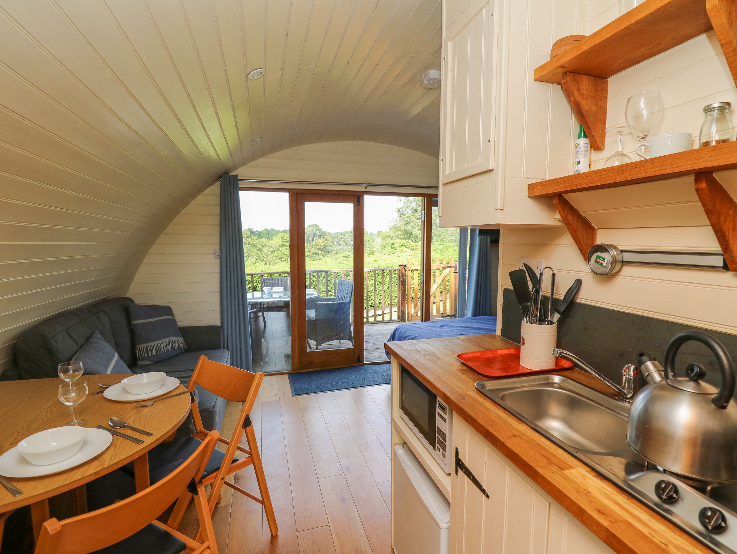 Holiday home Heron consists of a studio-style living with double bed and open-plan living space with kitchen, dining area, and sitting area. Amenities include a gas oven and hob, microwave, fridge, dining space. There is a shower room with walk-in shower, basin, and WC. Outside there is an enclosed rear veranda with furniture, plus off-road parking for two cars. Within 3.2 miles you will find a shop and a pub, and please note this is a smoke-free and pet-free property. WiFi, fuel, power, bed linen, and towels included in the rent. Explore Powys with a stay at Heron.