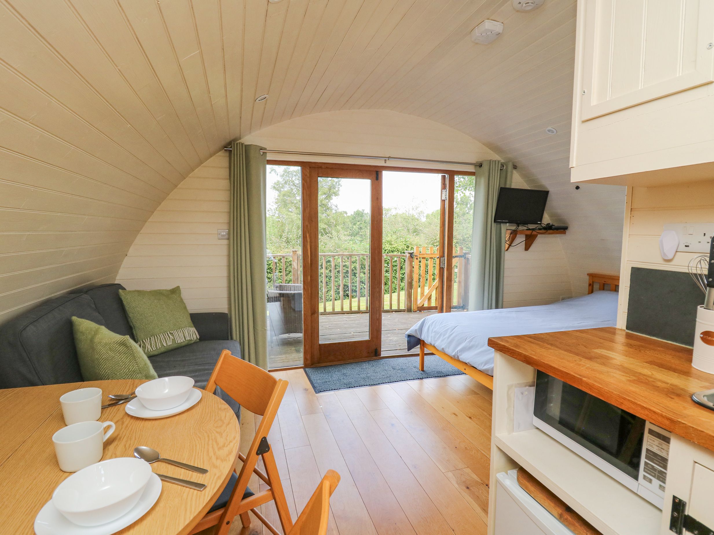 Accomodation Details Single-storey. Studio-style living with double sofa bed and open-plan living space with kitchen, dining area, and sitting area. Shower room with walk-in shower, basin, and WC