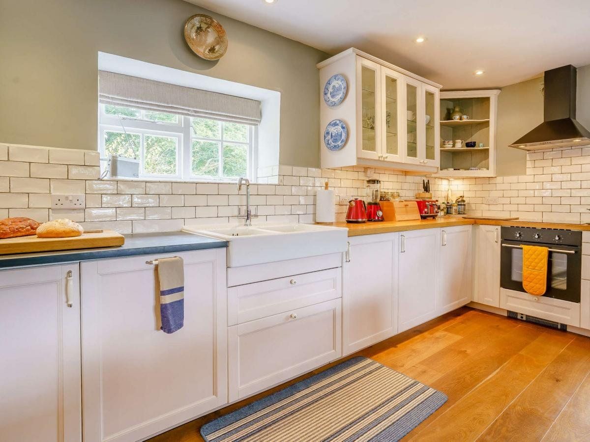 As you enter the cottage, you’ll find yourself in the inviting open-plan lounge/kitchen/diner with a stylish mix of neutral, blue and red tones throughout.