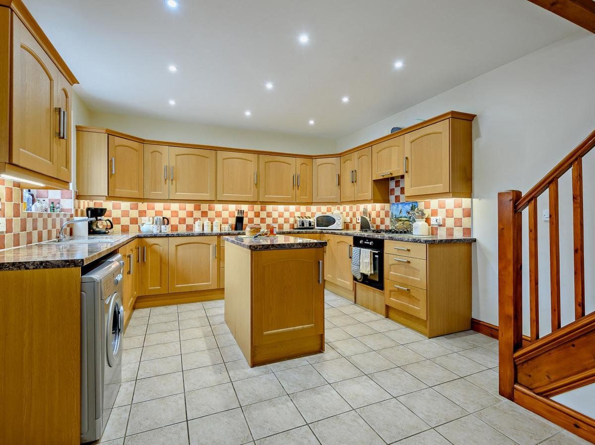 Enter the property and make yourself at home in the neutral-toned lounge with a wooden beamed ceiling, antique-style furnishings and comfortable leather sofas.