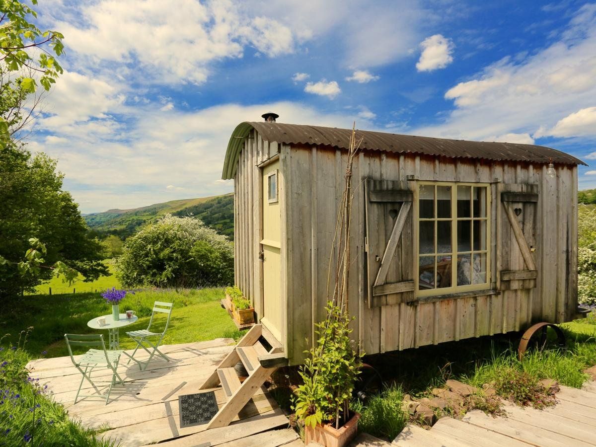 Set amidst 30 acres of idyllic Powys countryside, this pair of hand-crafted, award-recognised shepherds' huts offers a perfect getaway for couples seeking romance and seclusion.