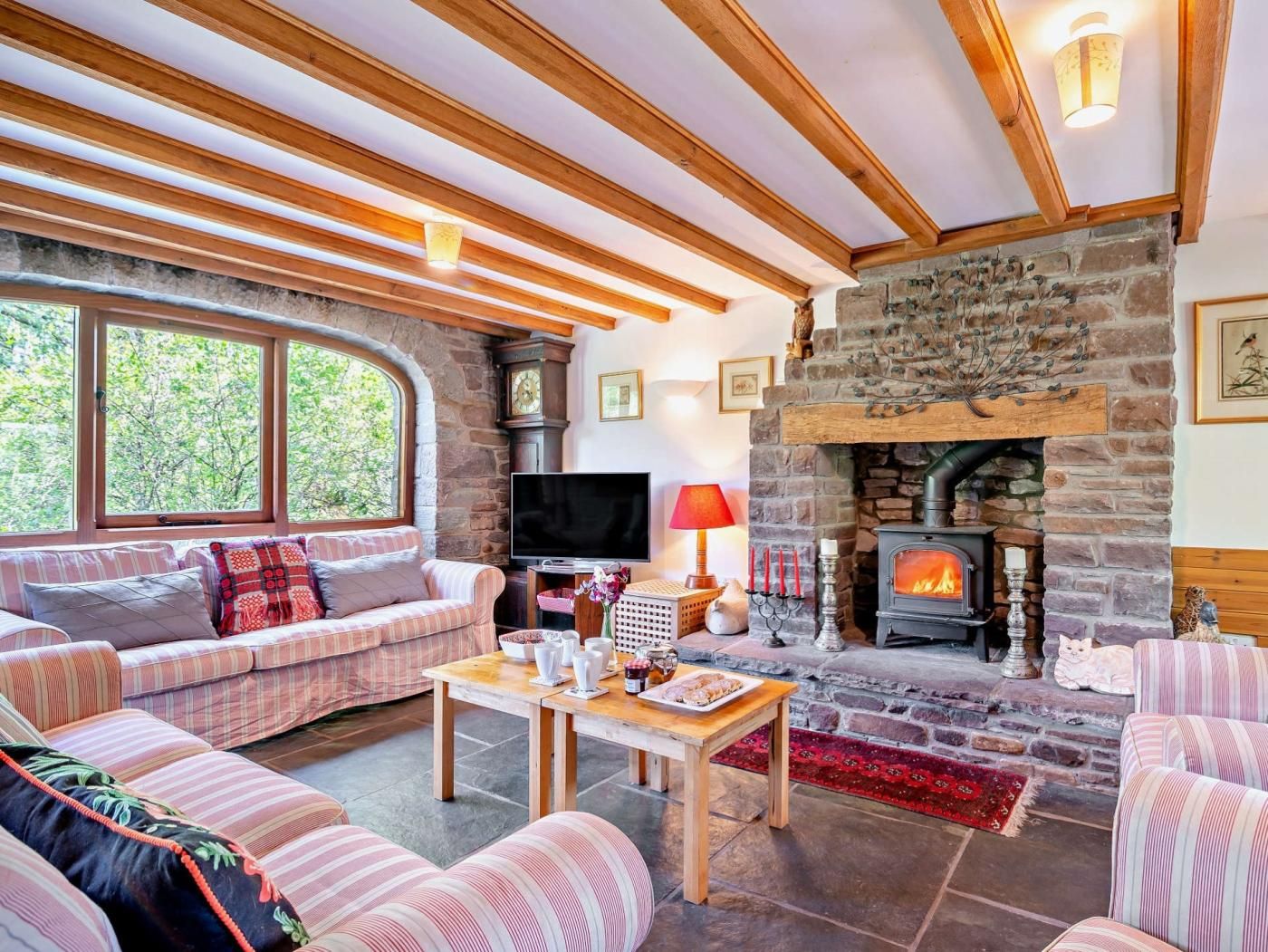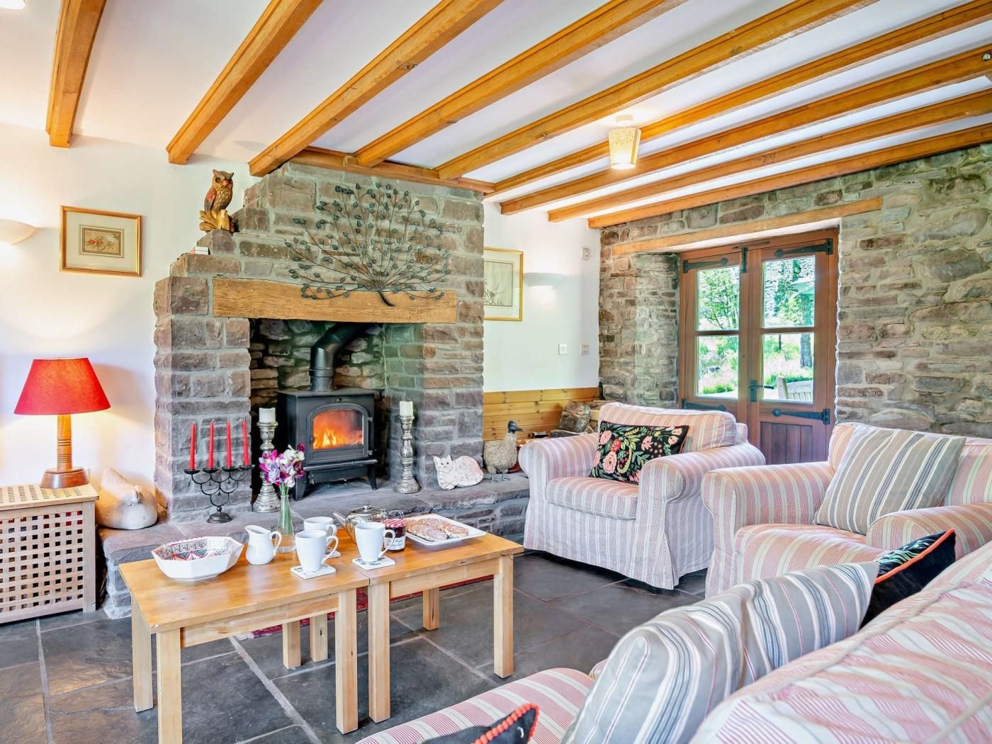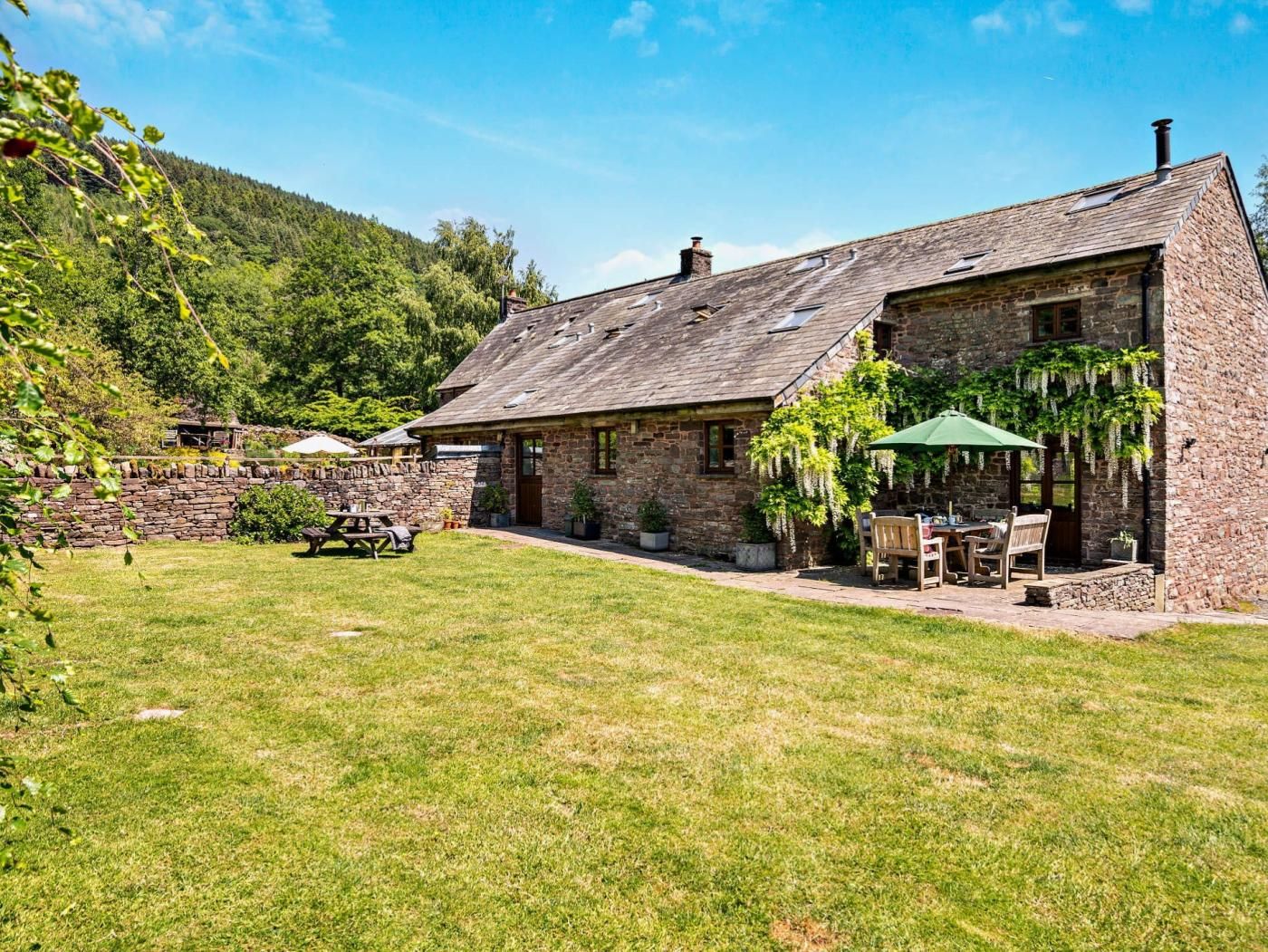 Surrounded by spectacular countryside, step out of the front door to spend your days discovering the natural beauty of the Brecon Beacons. Less than a half mile walk to the Talybont Reservoir where your dog may enjoy a swim and only a mile from your holiday home are the stunning cascades of the Blaen-y-Glyn waterfalls for a peaceful picnic beside the tumbling waters.